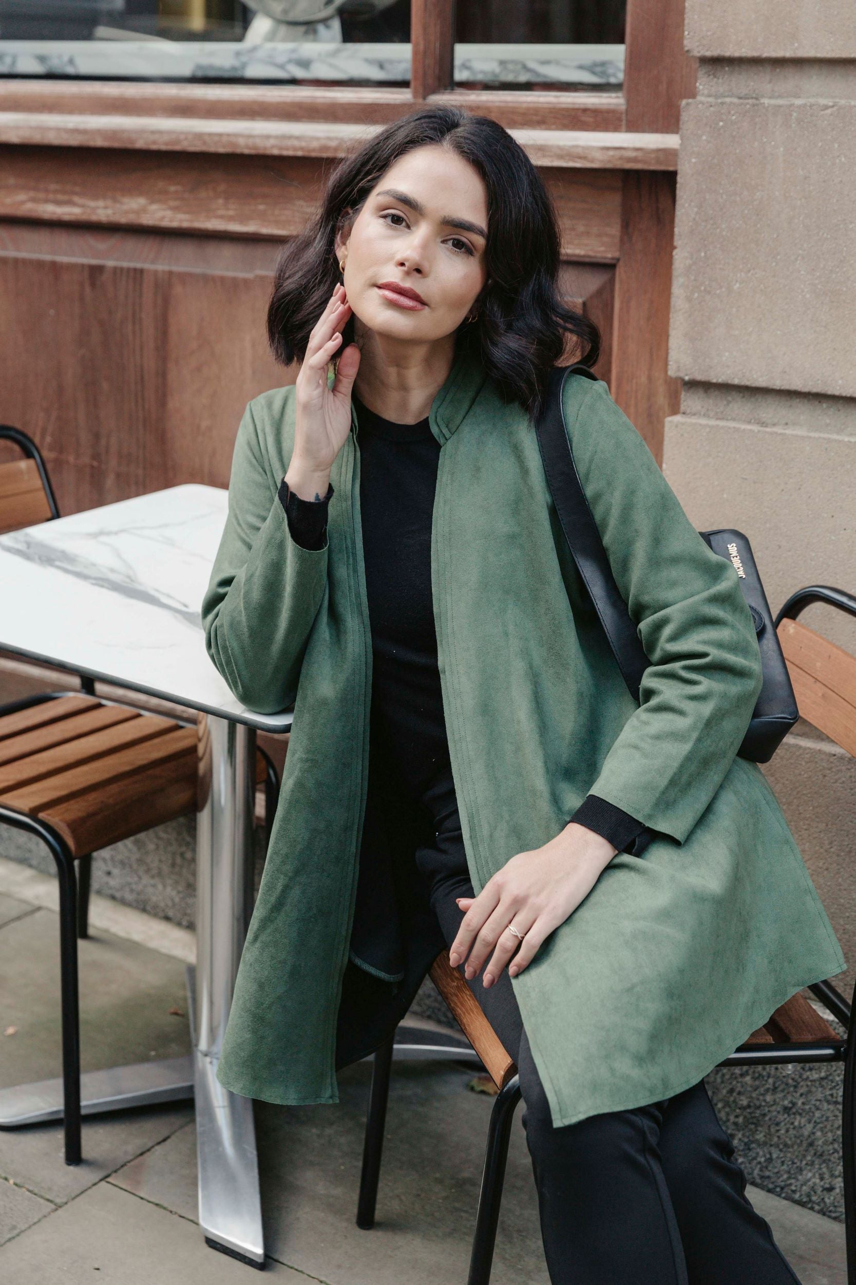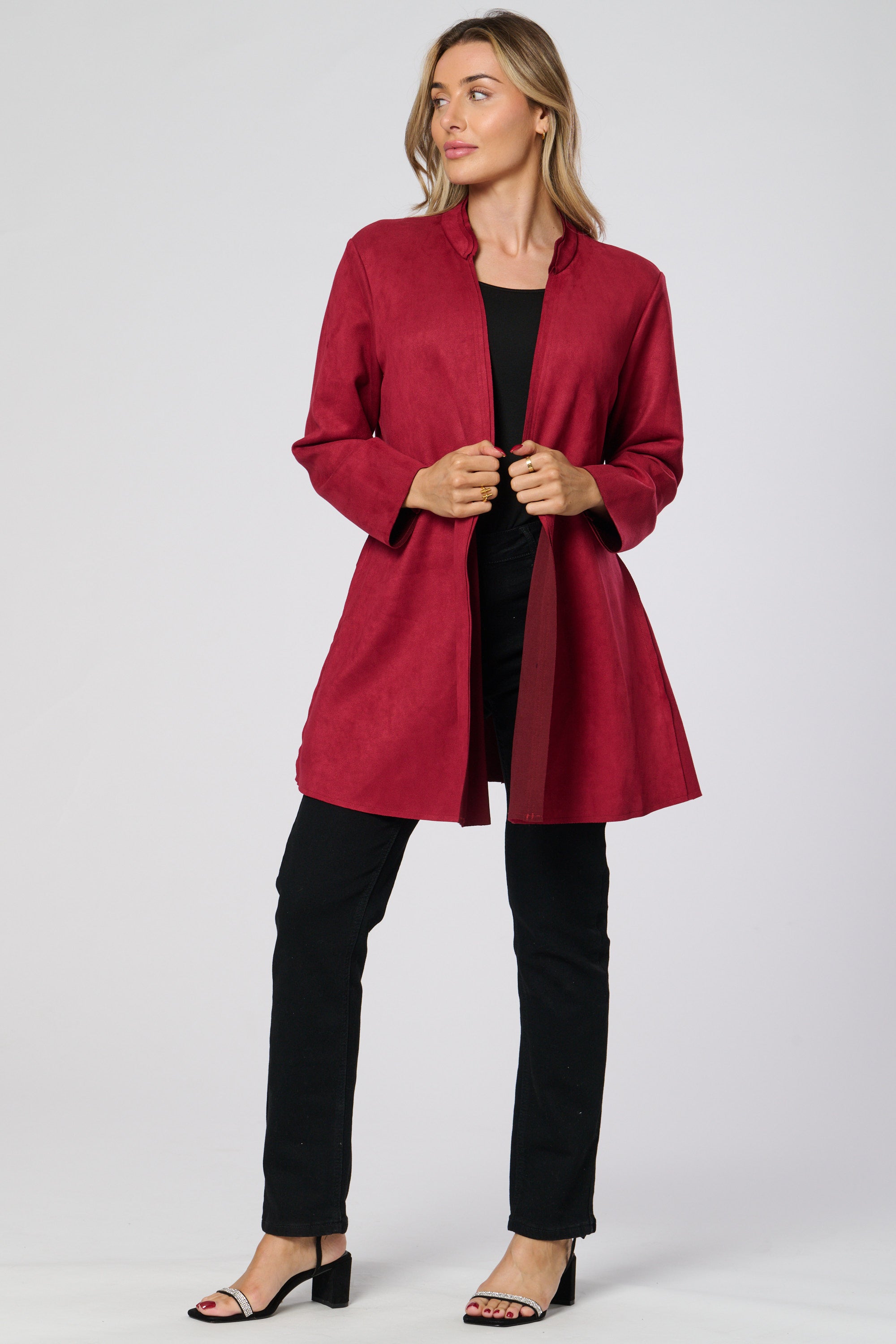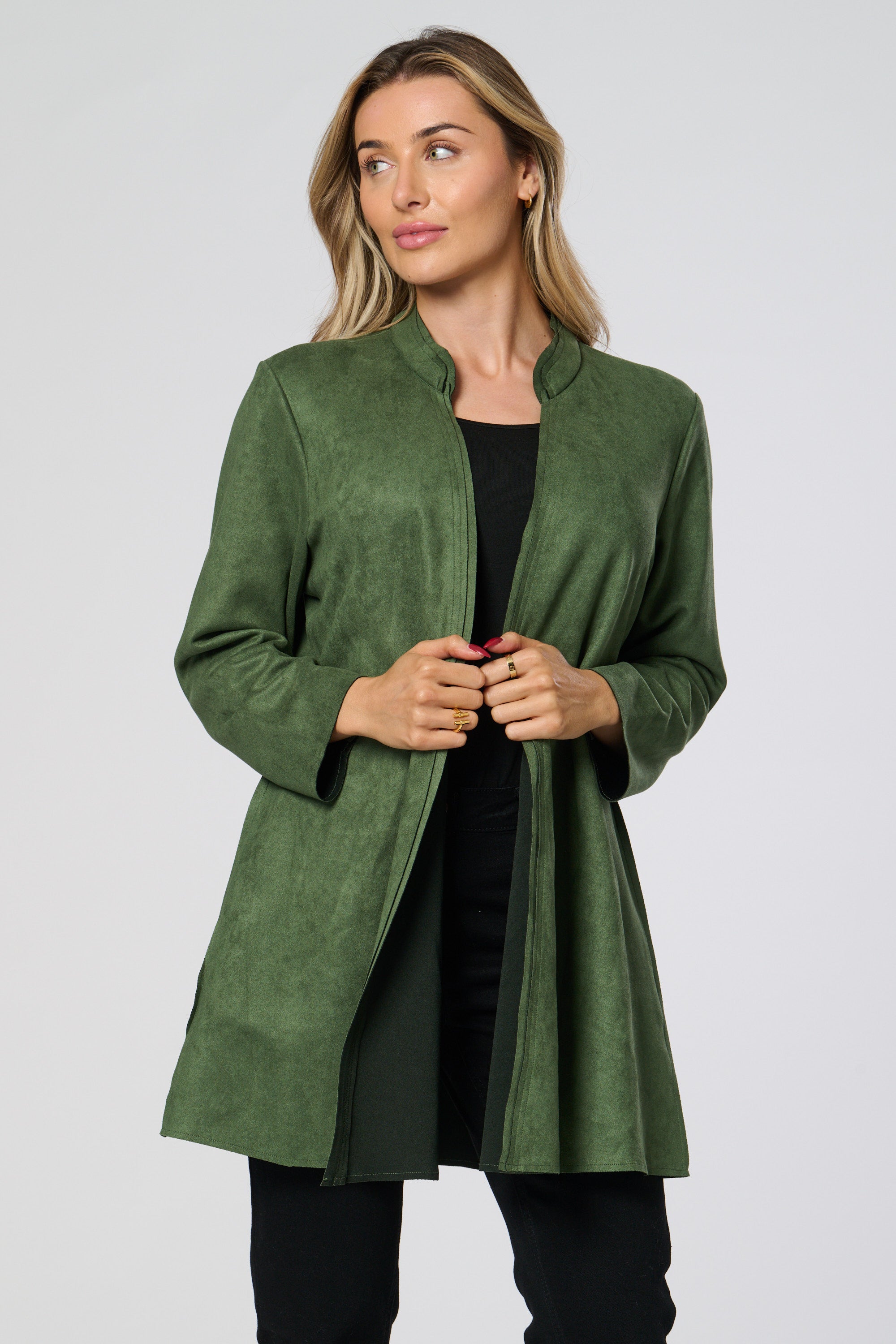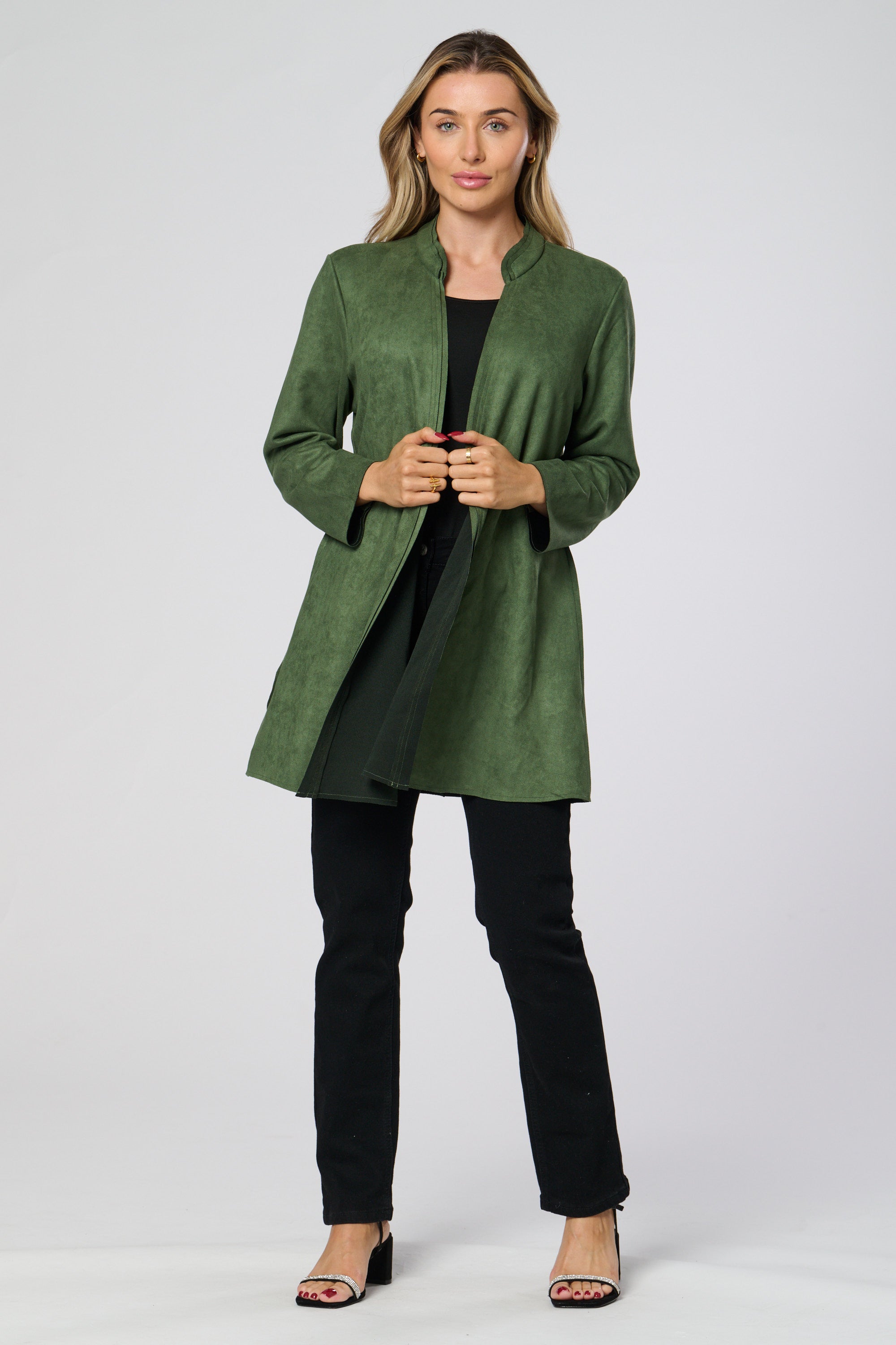 This suede jacket features a long sleeve, swing shape, and side pockets, providing comfort and style. The high-quality suede material gives a luxurious feel. Its versatile design makes it suitable for any occasion.