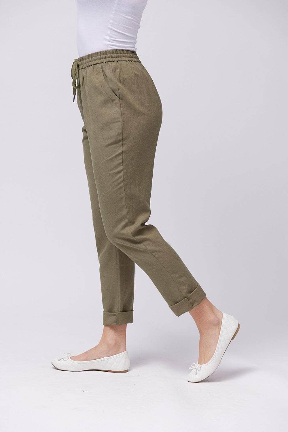 Stay comfortable and stylish with these slim leg trousers. Crafted from a blend of linen, viscose and cotton, their elasticated waist with drawstring ensures a great fit, while side pockets and a roll up leg provide convenience and versatility. Perfect for any occasion.