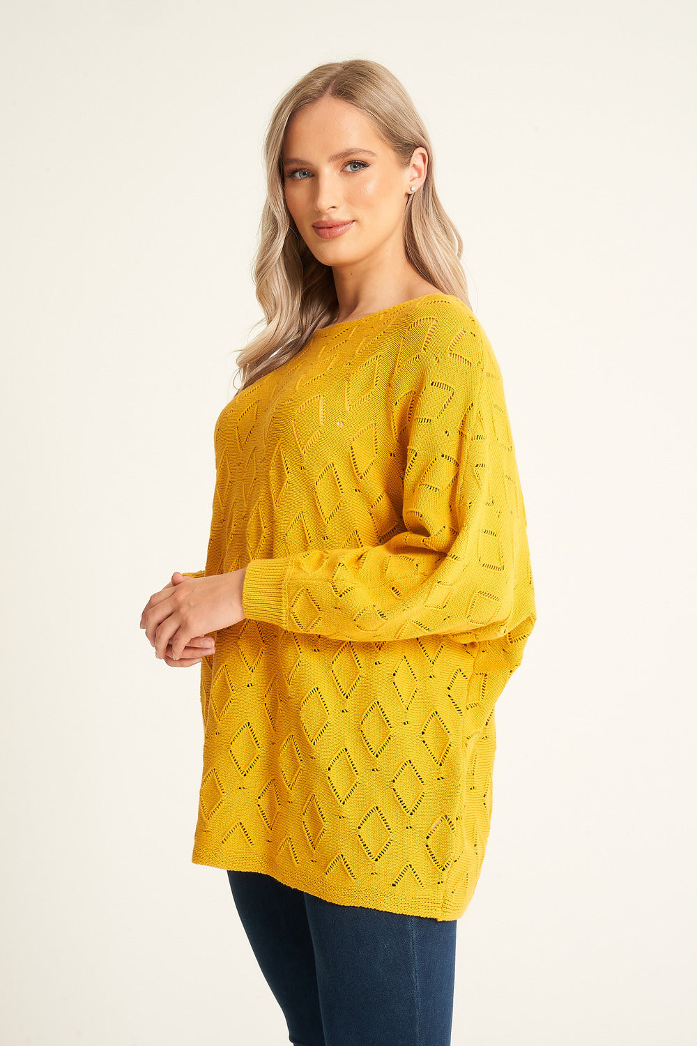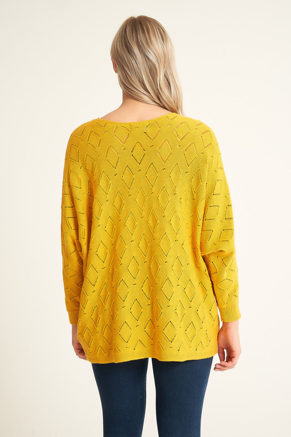 Bring extra flair to your layering with this pure cotton jumper. It's knitted in a comfy relaxed fit, with full length sleeves and an easy crew neckline. All-over geometric diamond shapes gives textural interest, and ribbing at the cuffs helps lock in warmth.