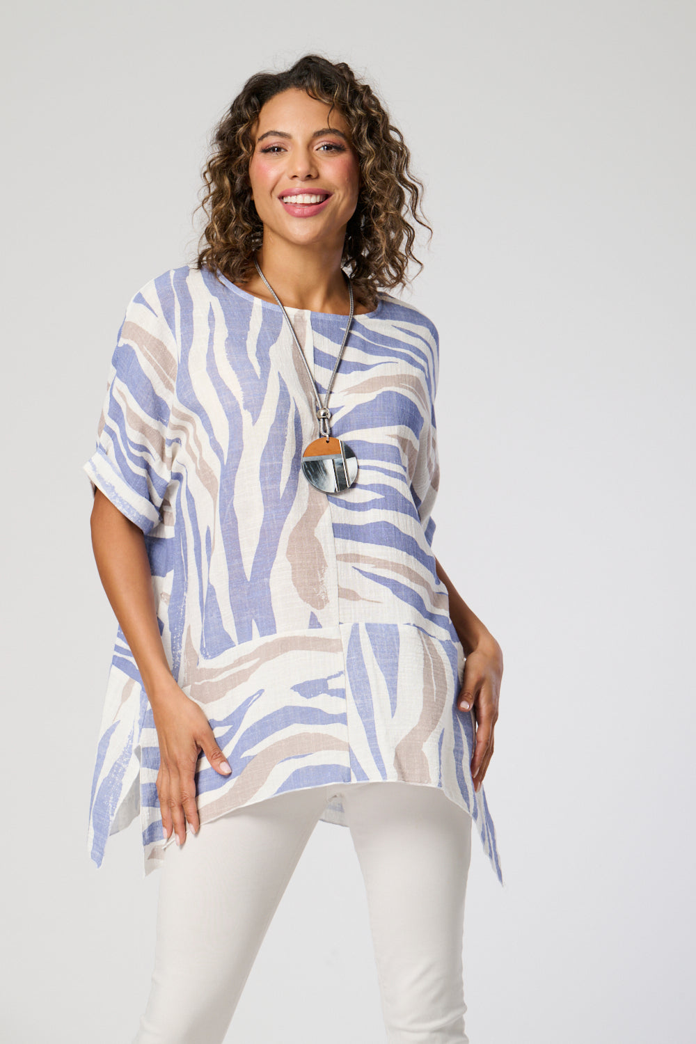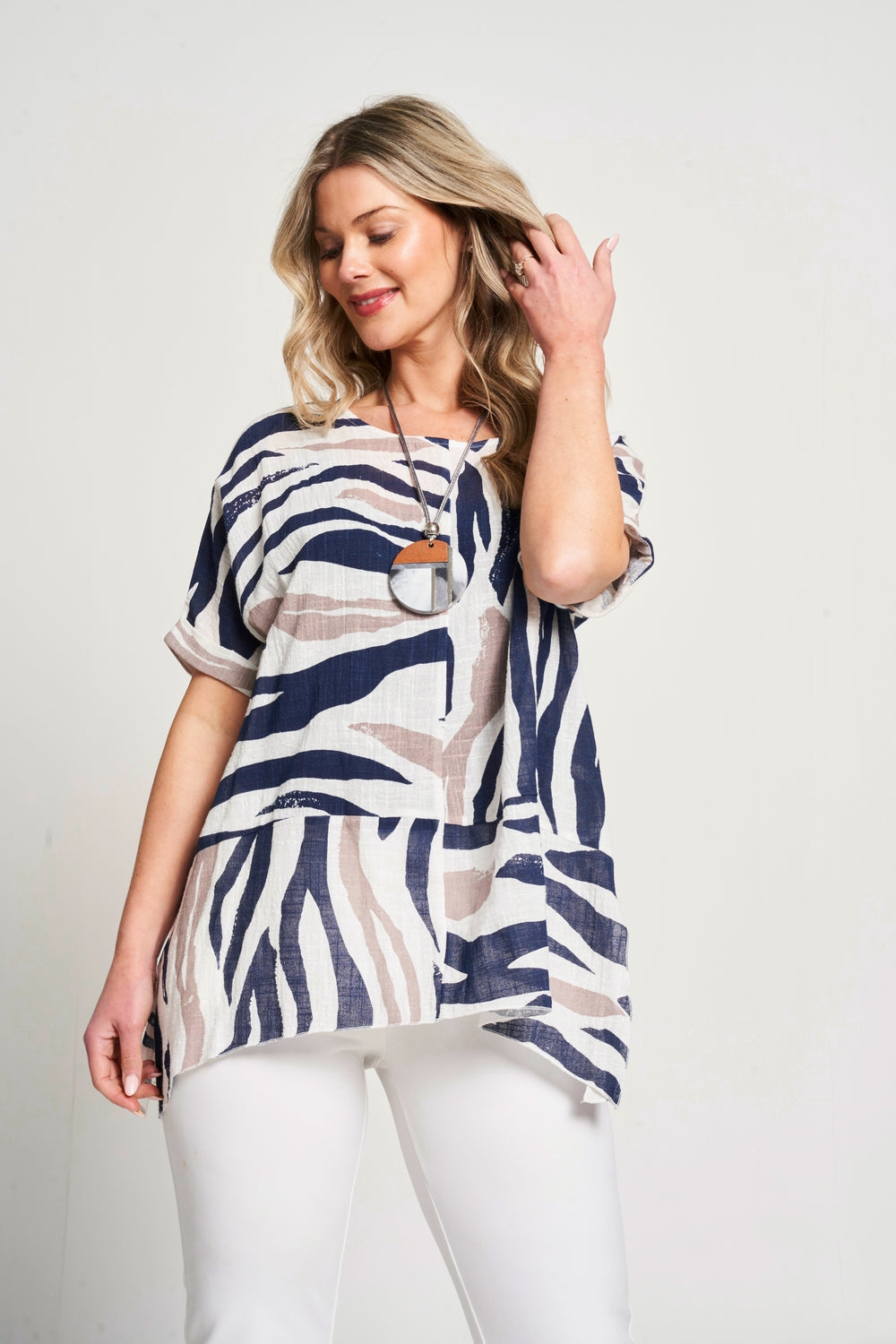 Saloos Zebra Print Panelled Cotton Top with Necklace
