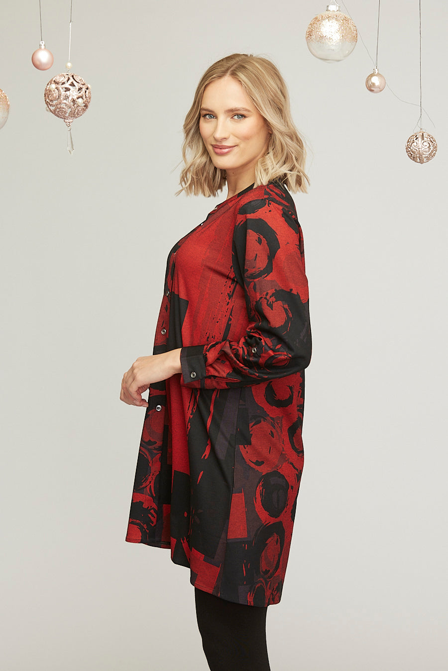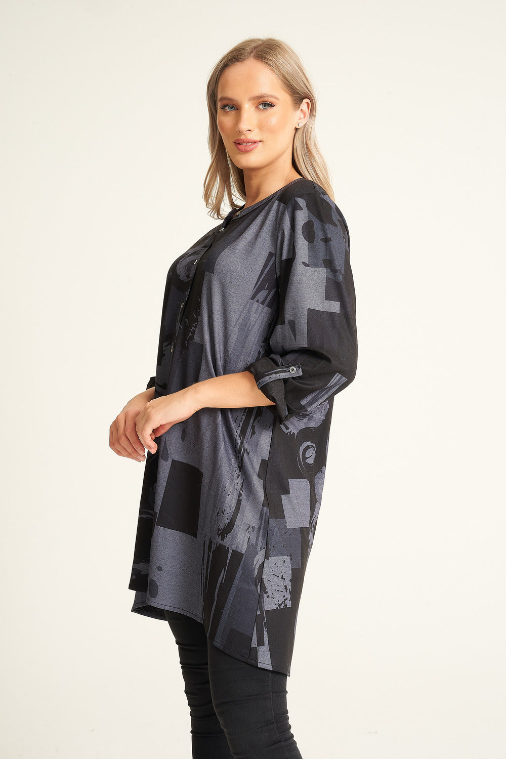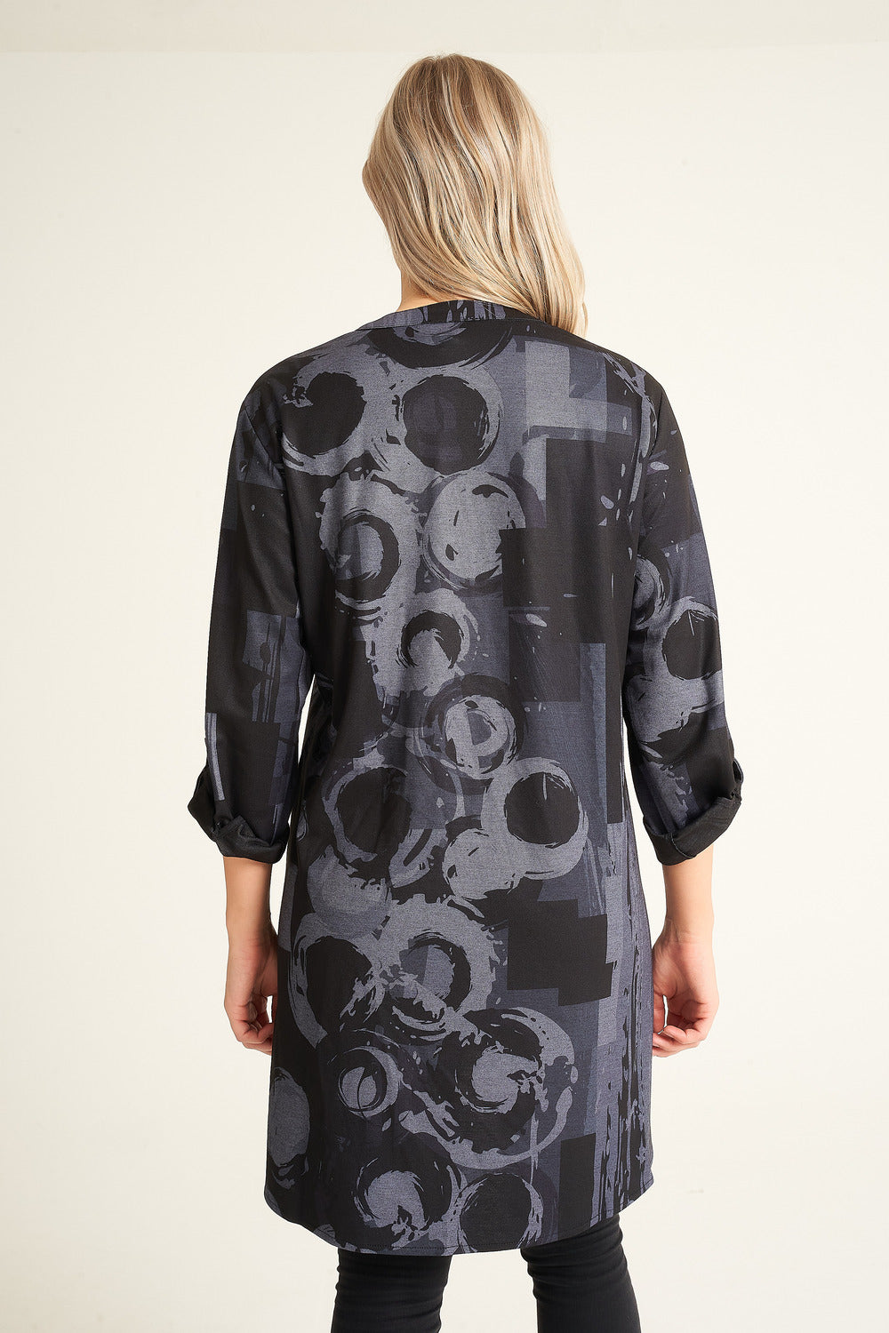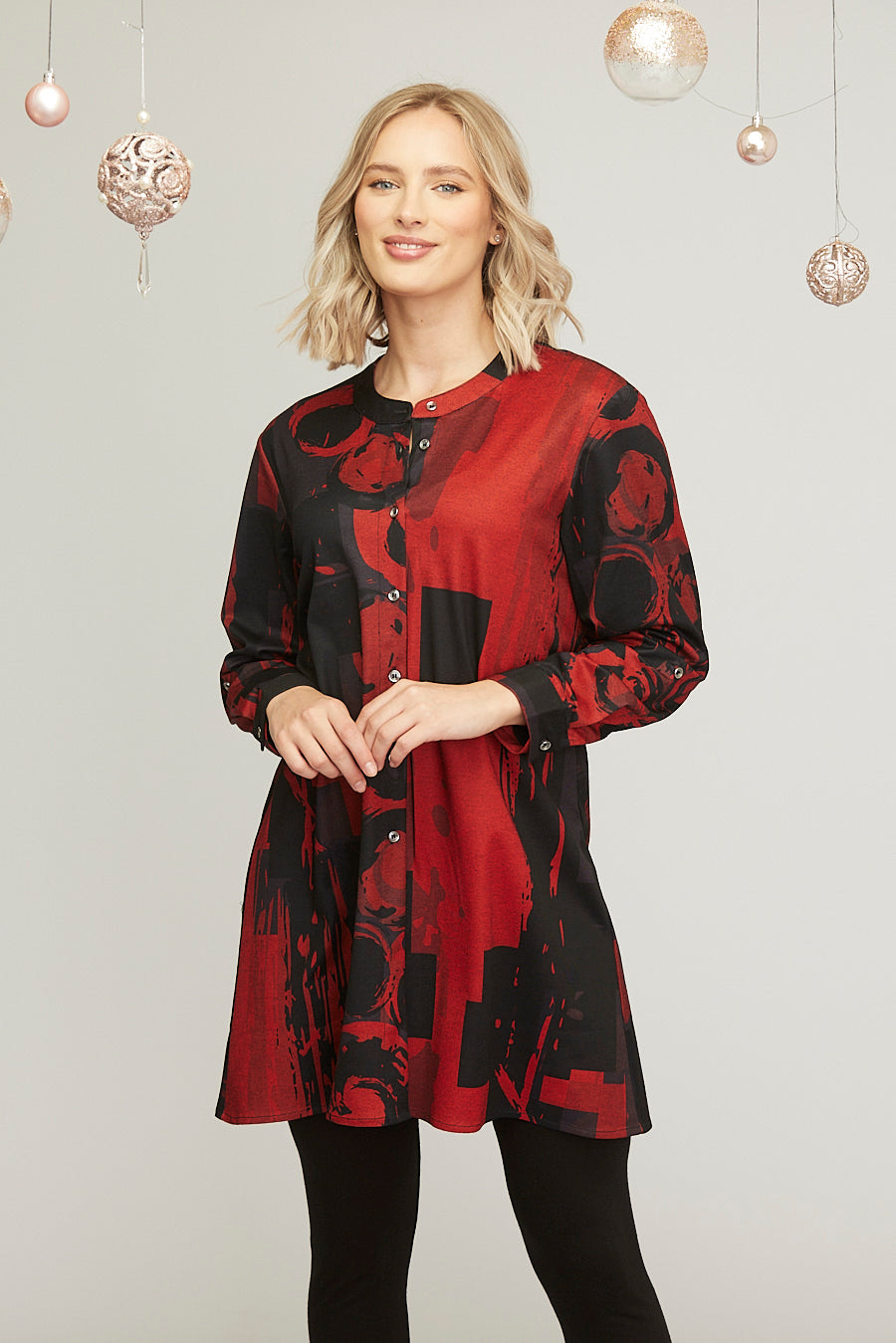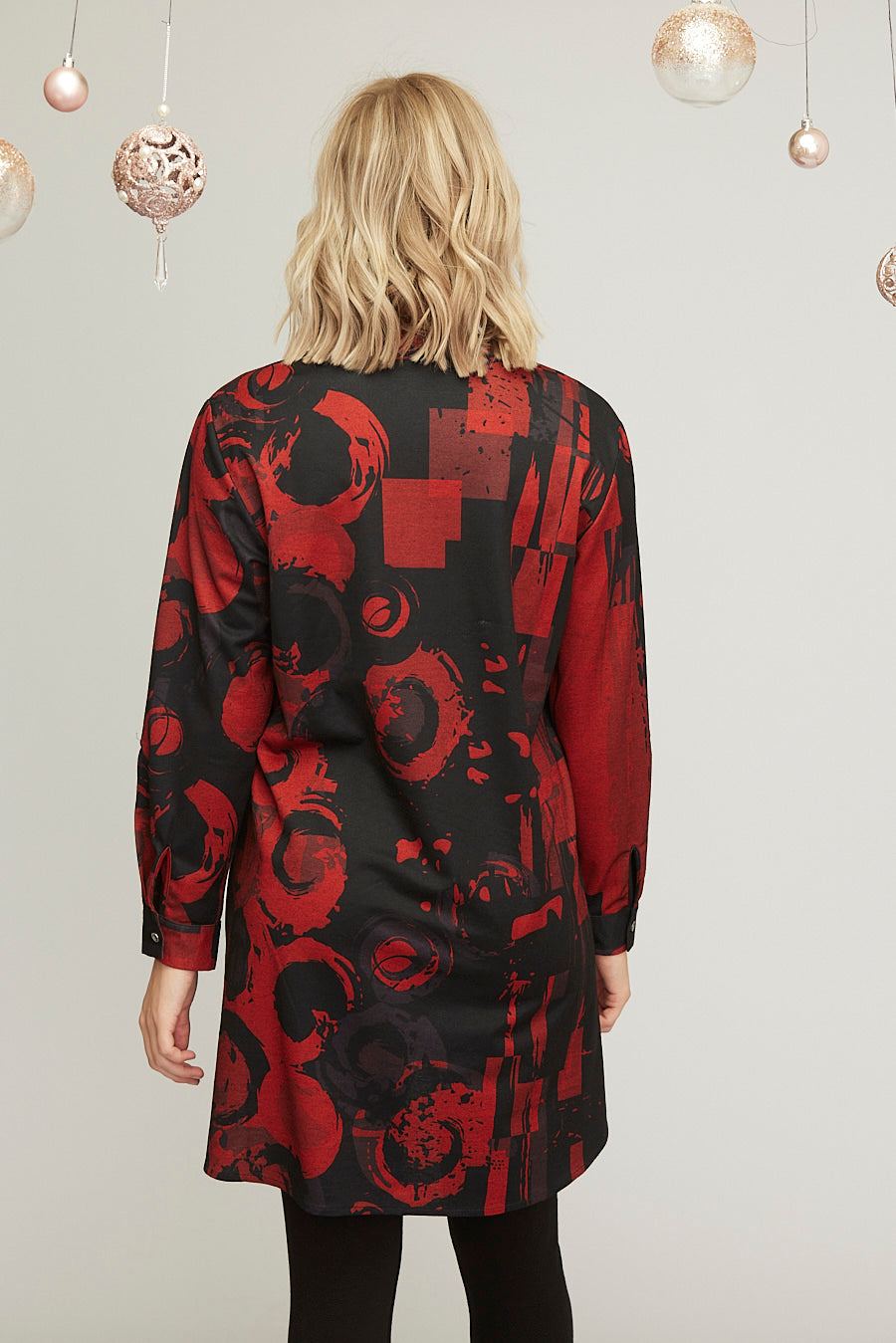 Strikingly modern yet timeless, this shirt tunic is crafted from a cotton-like fabric that features a subtle sheen. Perfect for everyday wear, it also offers full length, cuffed sleeves and an elegant elliptical hem. Wear it to make a statement.