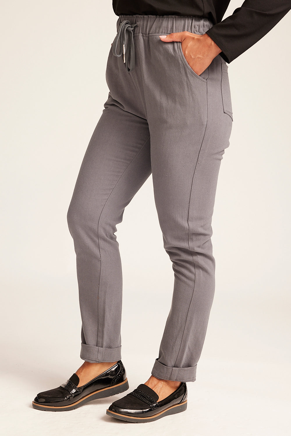Our 7372-A trousers feature a comfortable cotton blend fabric and a timeless straight leg cut. The drawstring detail and elastic waistband provide a secure fit, while the side and back pockets offer easy access to your essentials. Crafted for everyday use, these trousers are perfect for all your everyday adventures.
