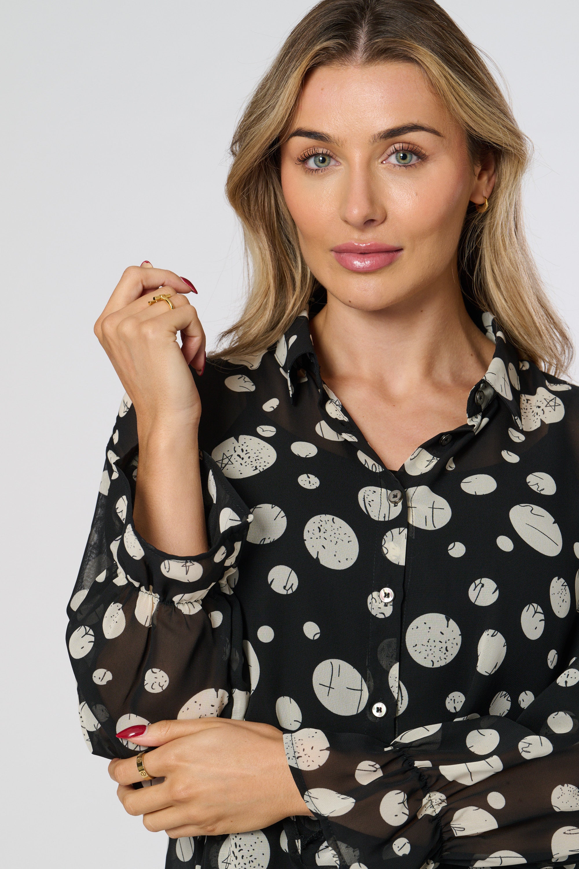 This dip back shirt boasts a sheer fabric, long sleeves, and puff sleeves for a stylish and on-trend look. The sheer fabric adds a touch of femininity, while the long and puff sleeves provide versatility. Perfect for any fashion-forward individual looking to elevate their wardrobe.