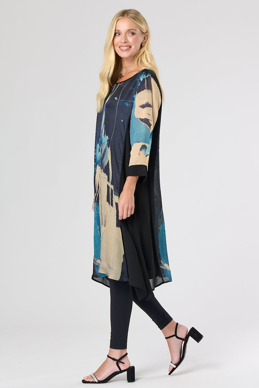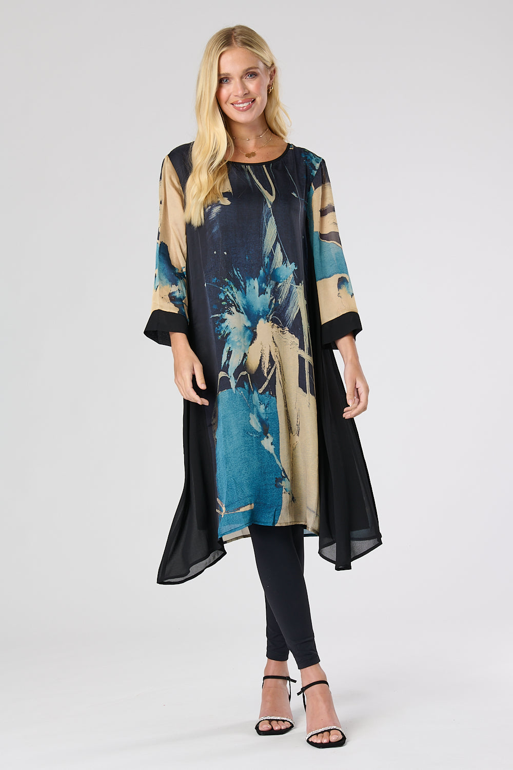 An elegant, sophisticated dress featuring a large, stylish motif print. Fully lined for comfort and durability, it features a boat neckline and long sleeves for a stunning silhouette. Perfect for special occasions!