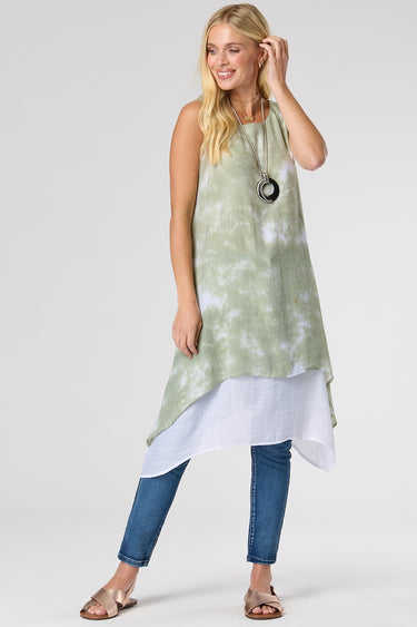 The perfect addition to your wardrobe. This swing tie & dye dress features a sleeveless, double layer design for added style and comfort. Complete your look with the matching necklace* in beautiful pastel colours. Upgrade your wardrobe with this dress today.