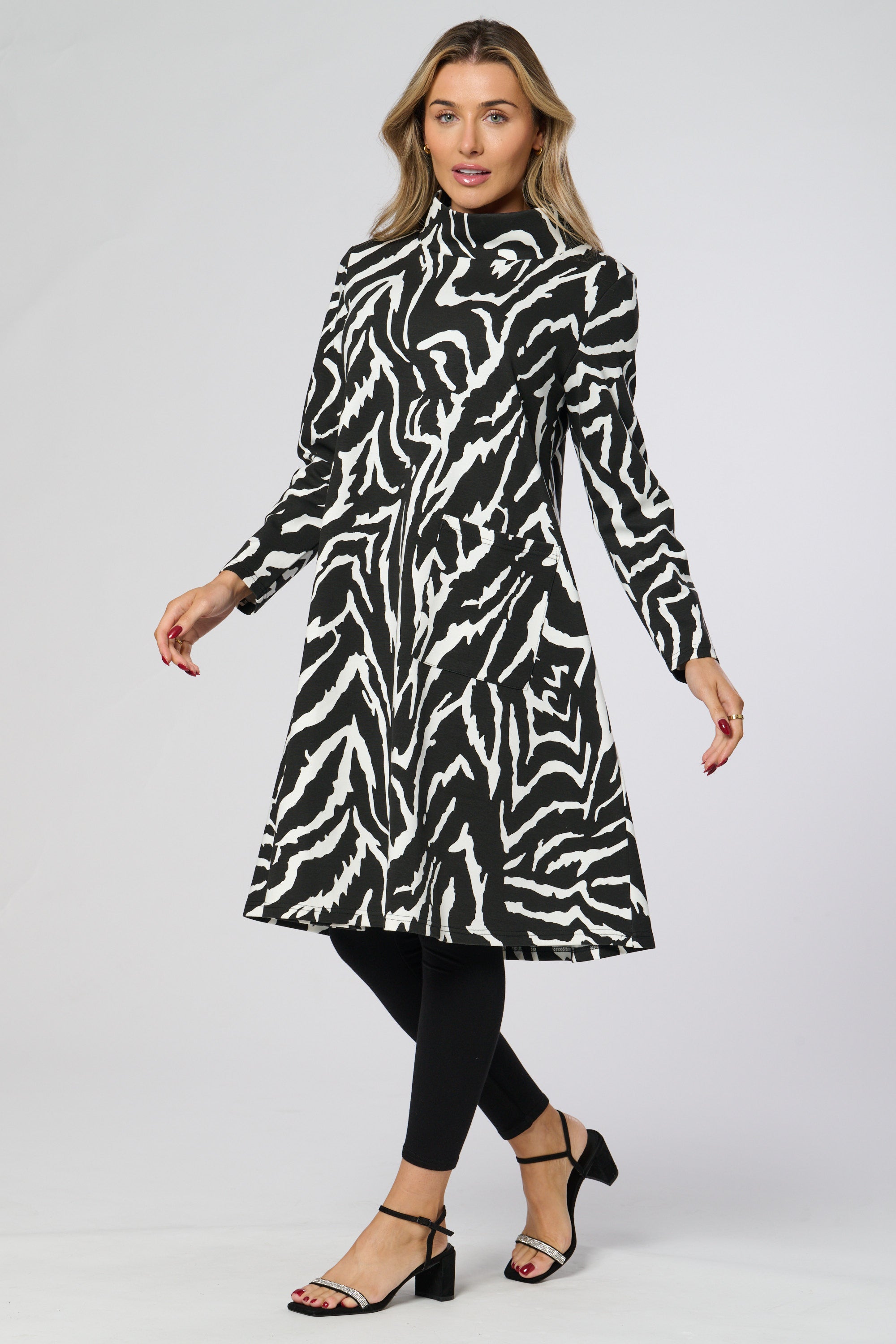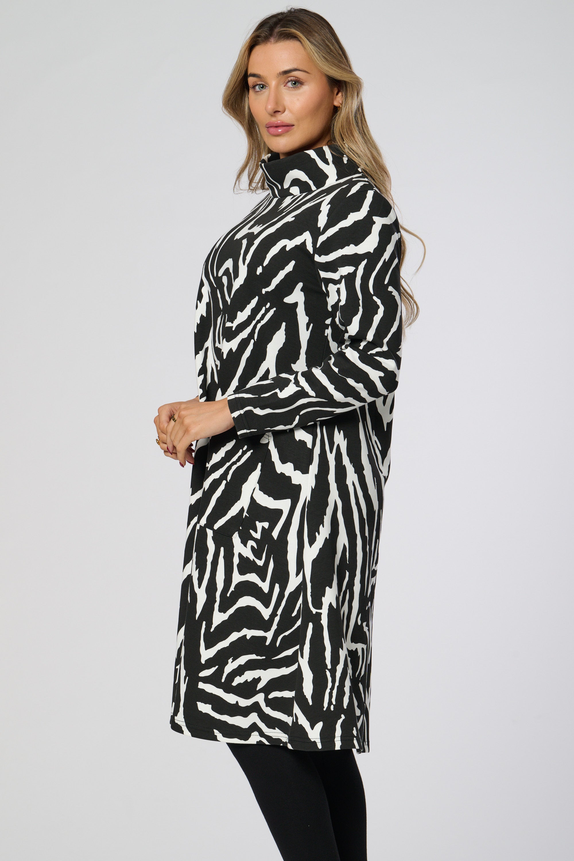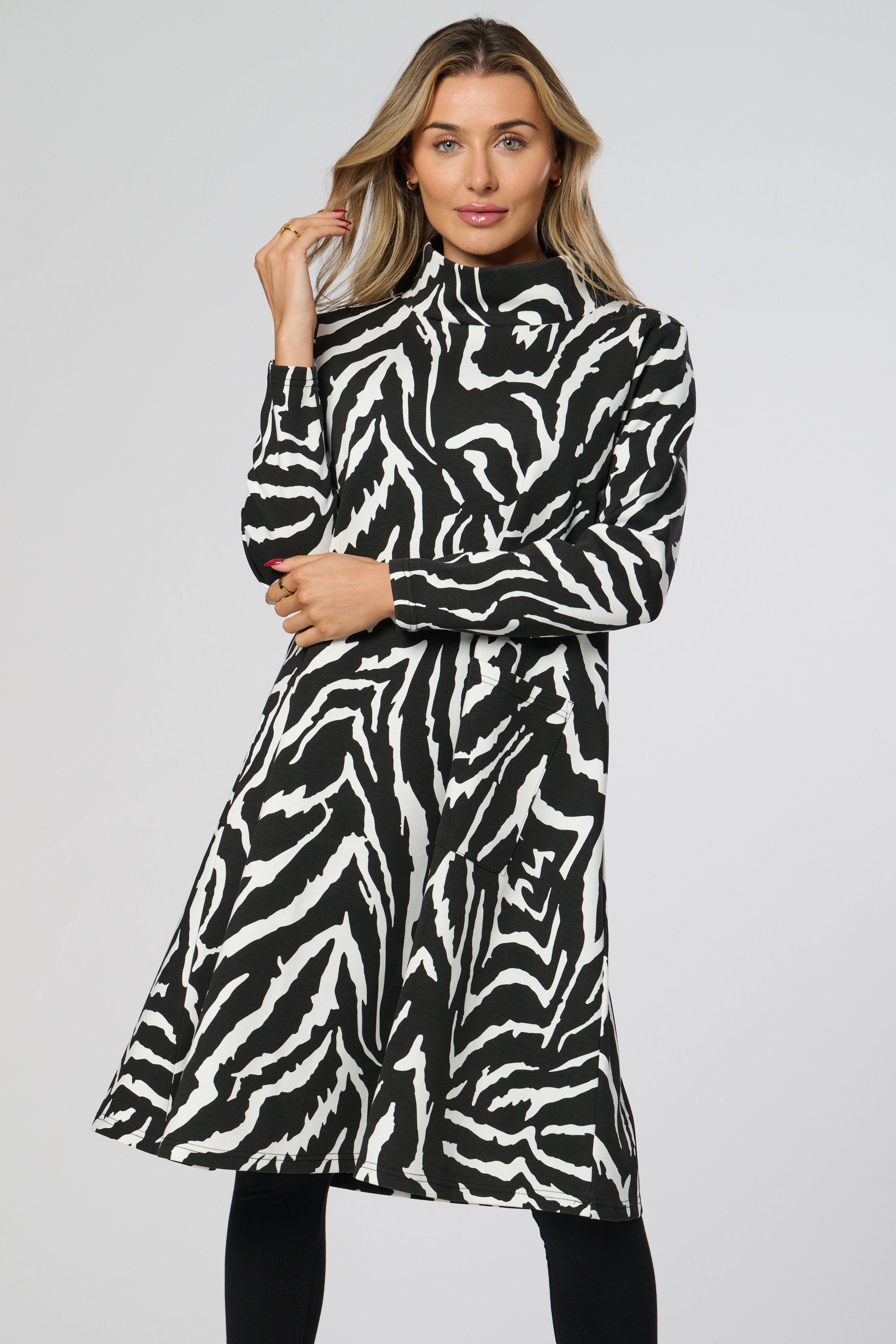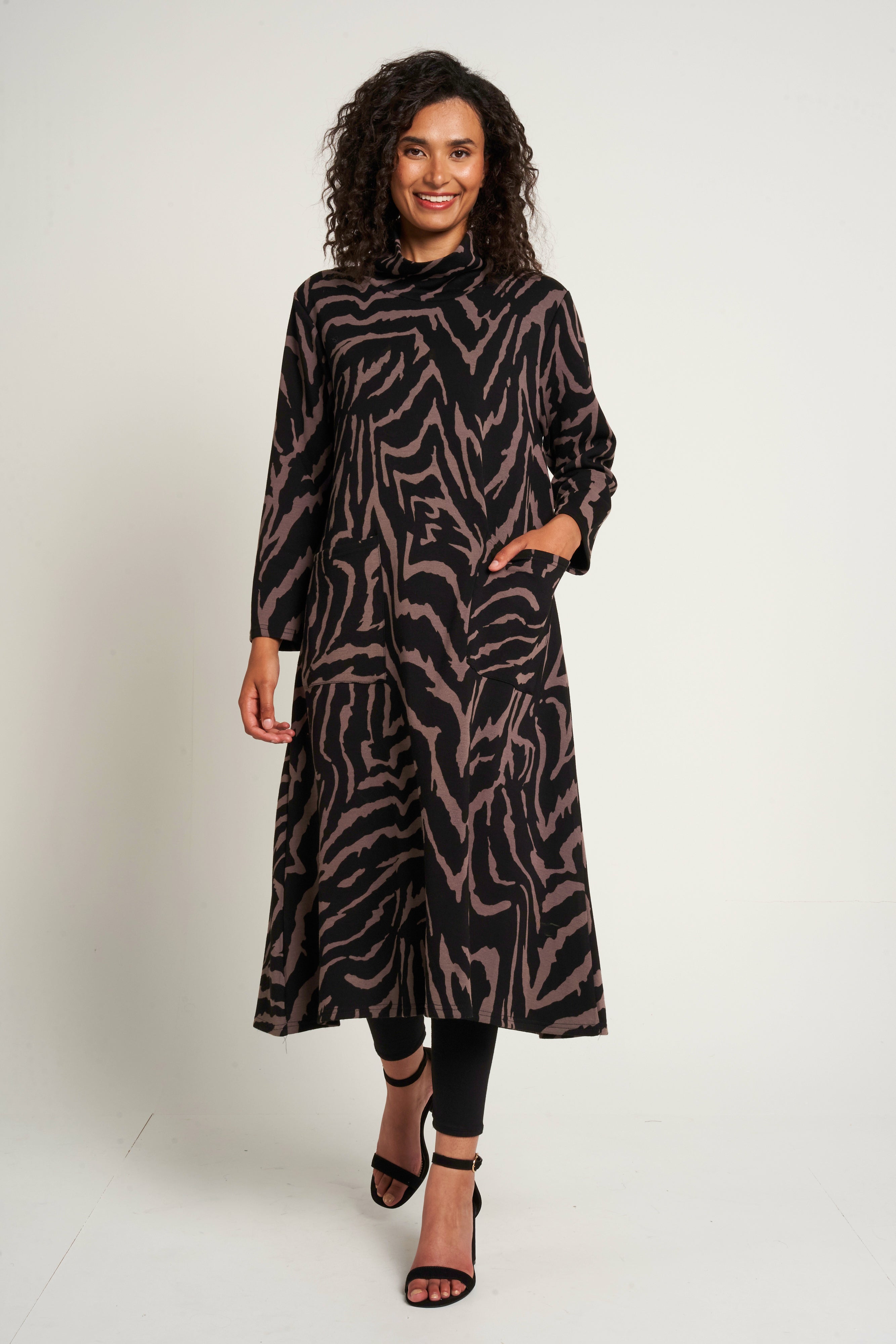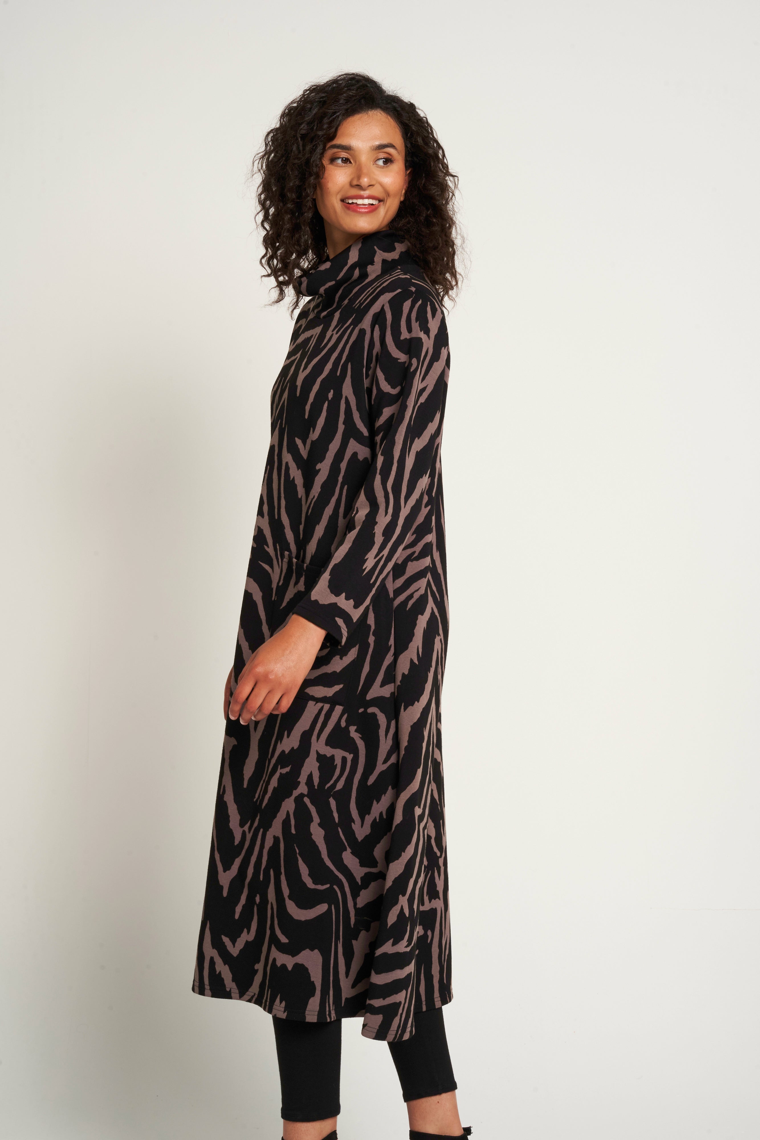 This dress combines style and comfort with its roll neck and midi length. The practical addition of patch front pockets and long sleeves make this dress both functional and fashionable. Made from a cotton mix fabric for a soft and breathable feel.