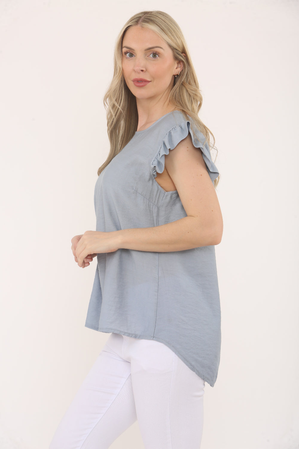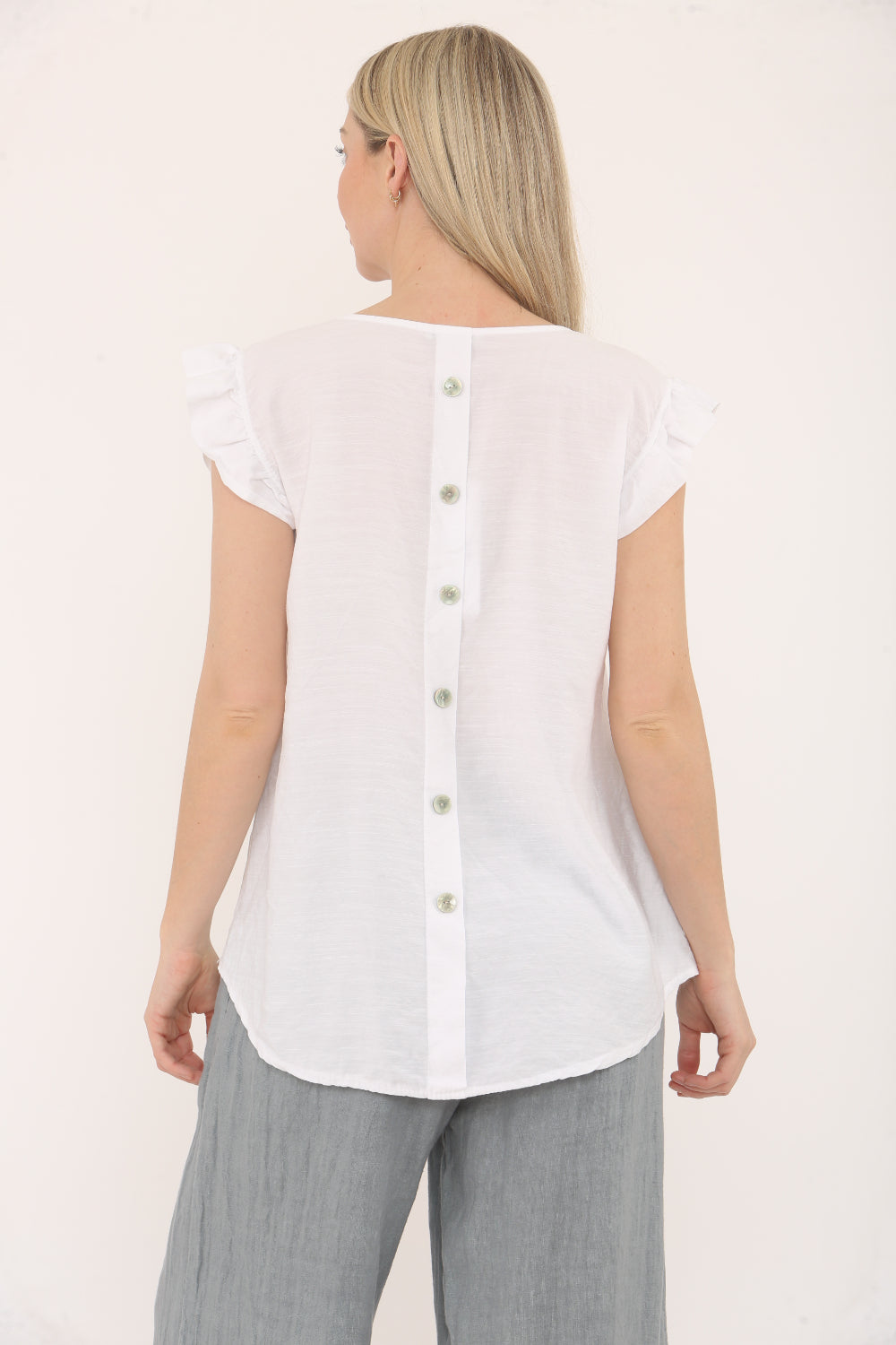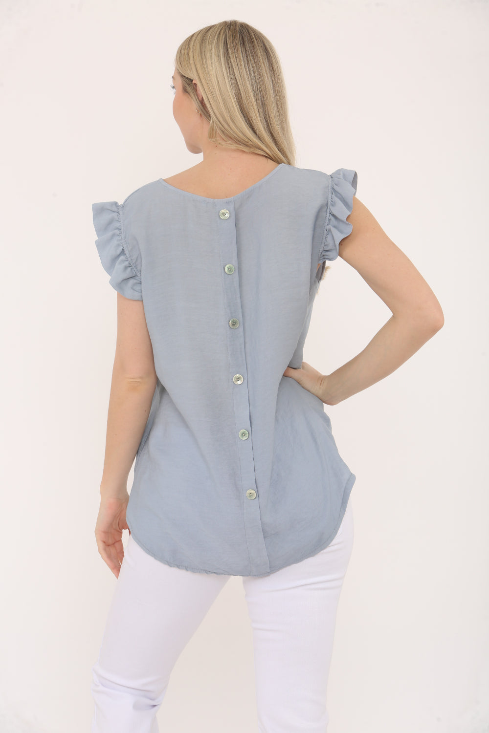Diverse Plain Frill Sleeve Top with Back Button Detail