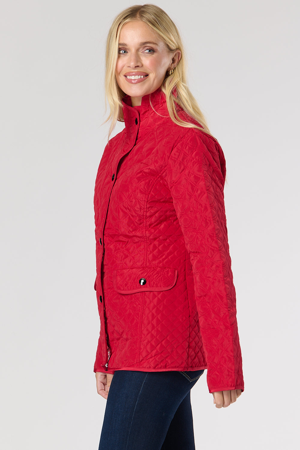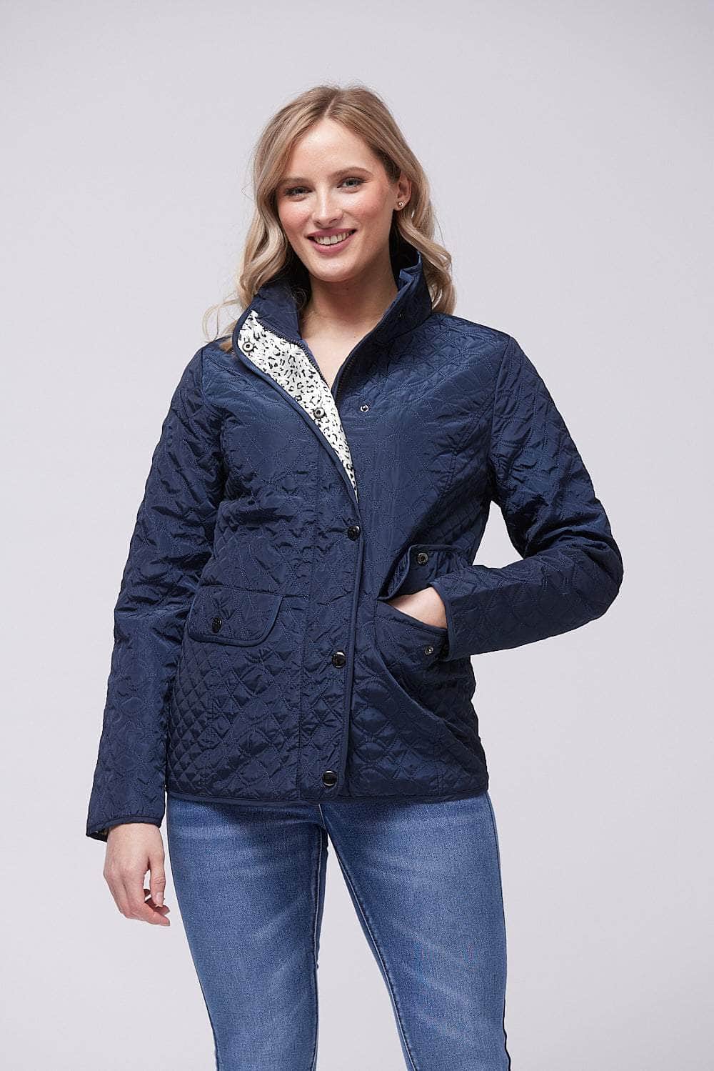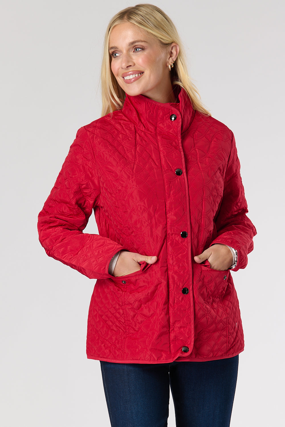 This jacket is a stylish and practical choice for colder days. Lightweight and with a regular fit, it has long sleeves and a quilted stitching pattern. It's secured by a zip and button up fastening and features a stand up collar and two front pockets with flap and popper closure. Perfect for chilly days.
