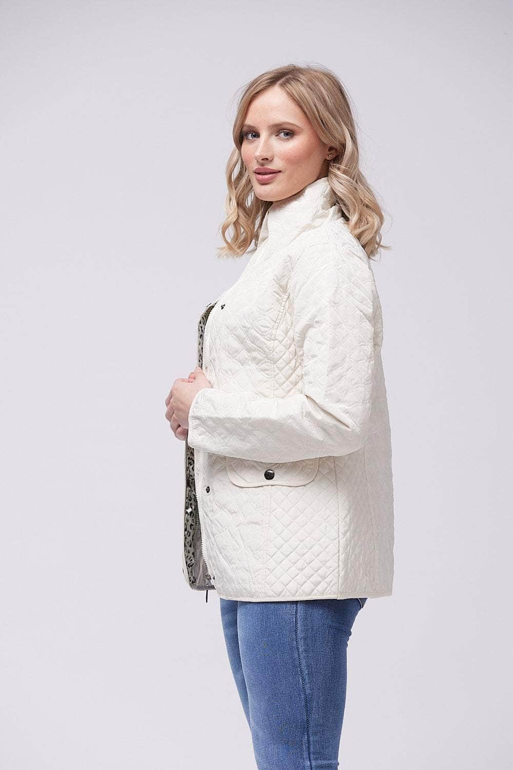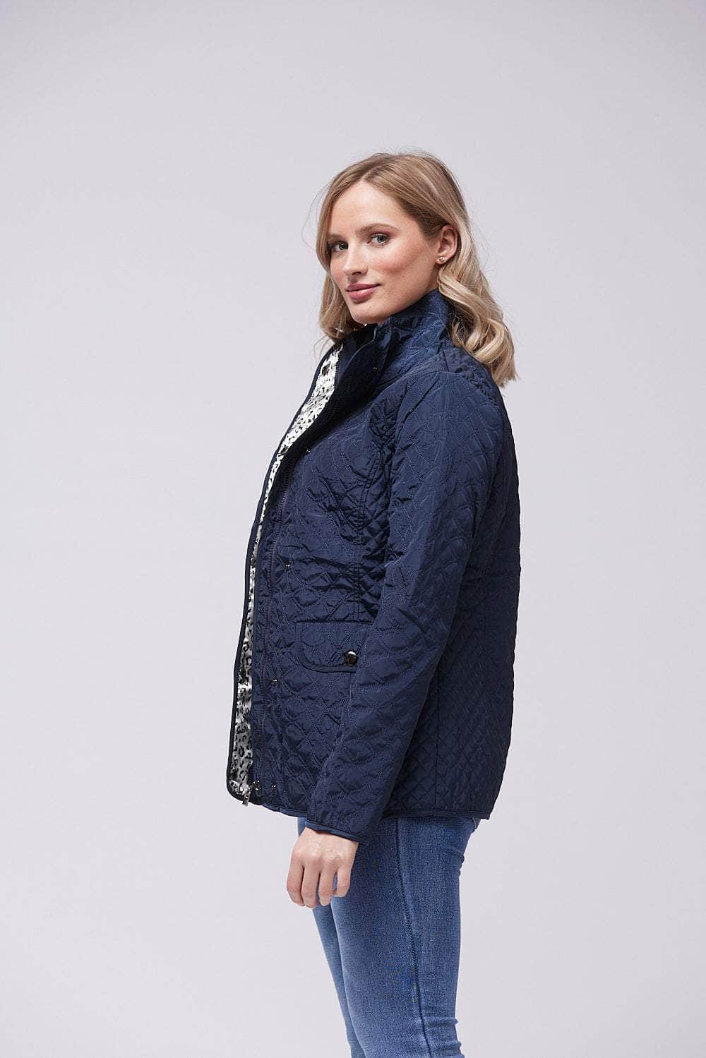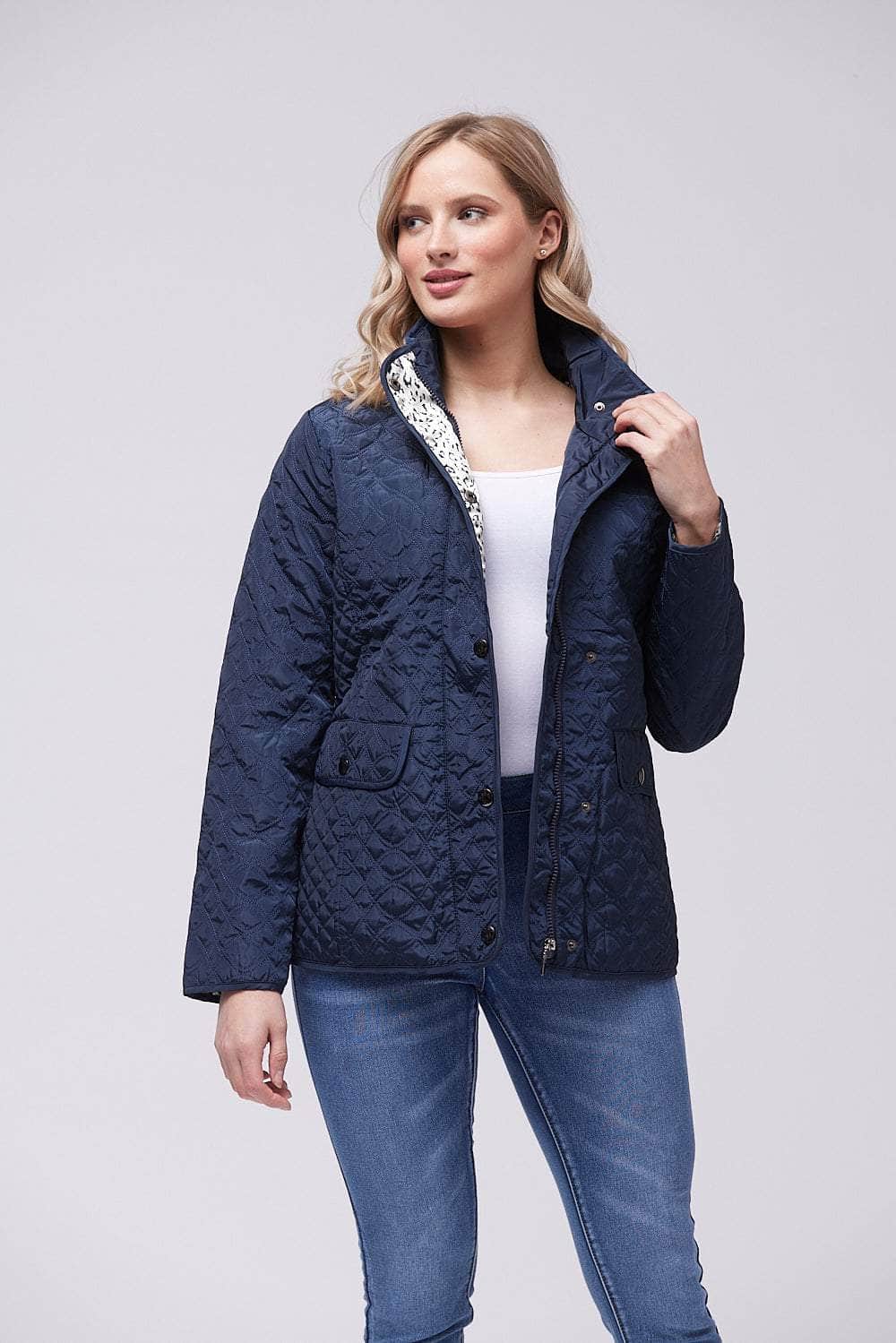 This jacket is a stylish and practical choice for colder days. Lightweight and with a regular fit, it has long sleeves and a quilted stitching pattern. It's secured by a zip and button up fastening and features a stand up collar and two front pockets with flap and popper closure. Perfect for chilly days.