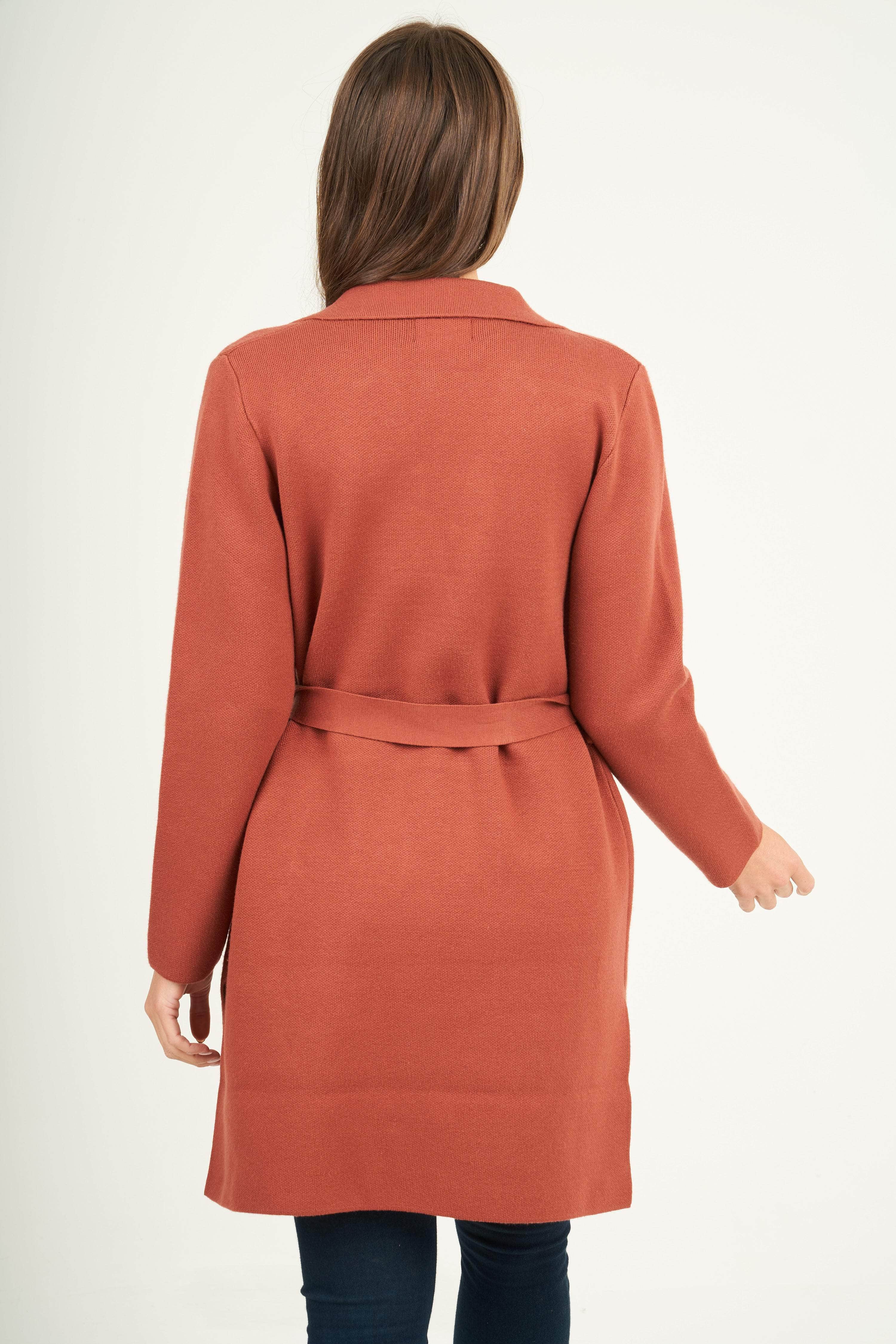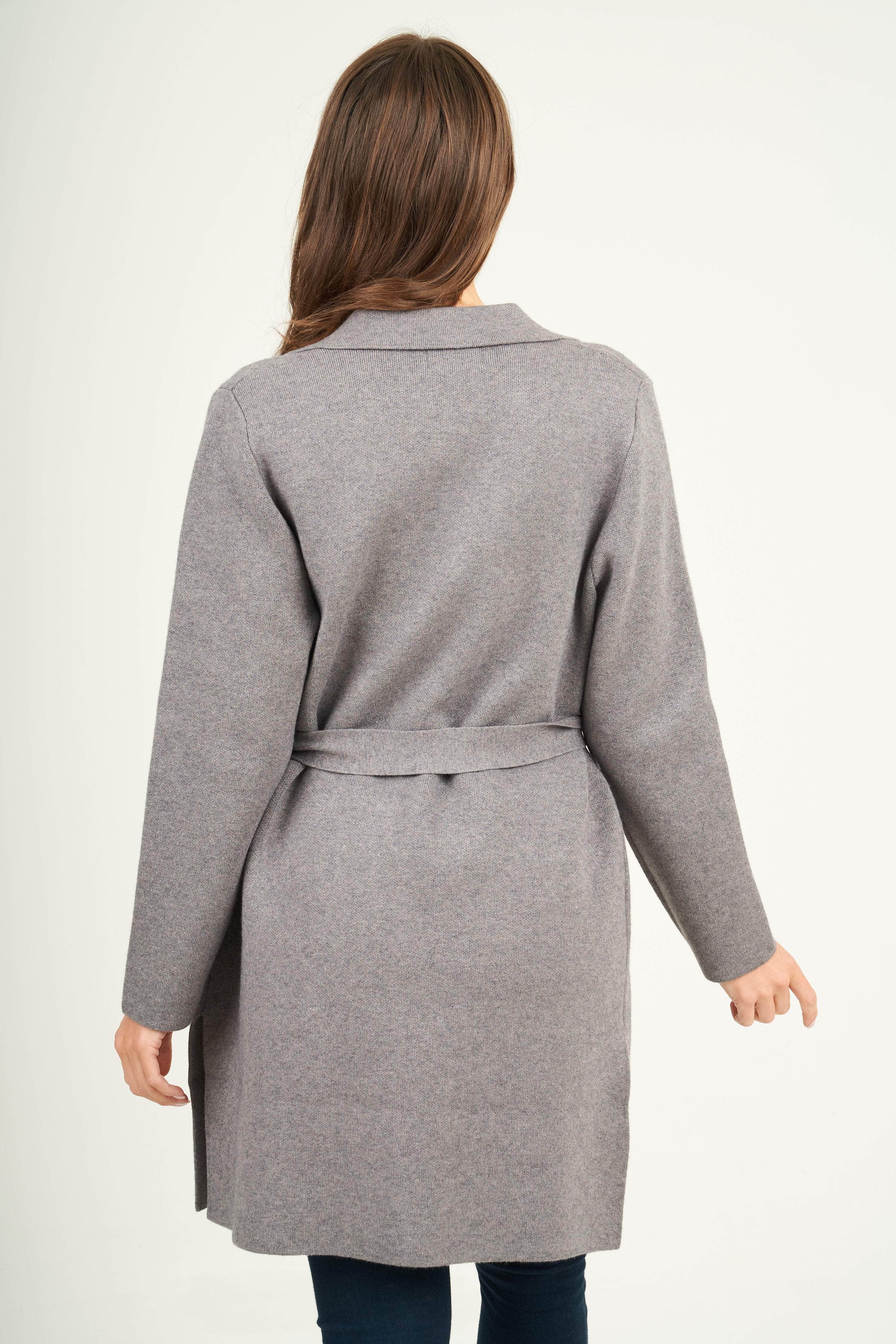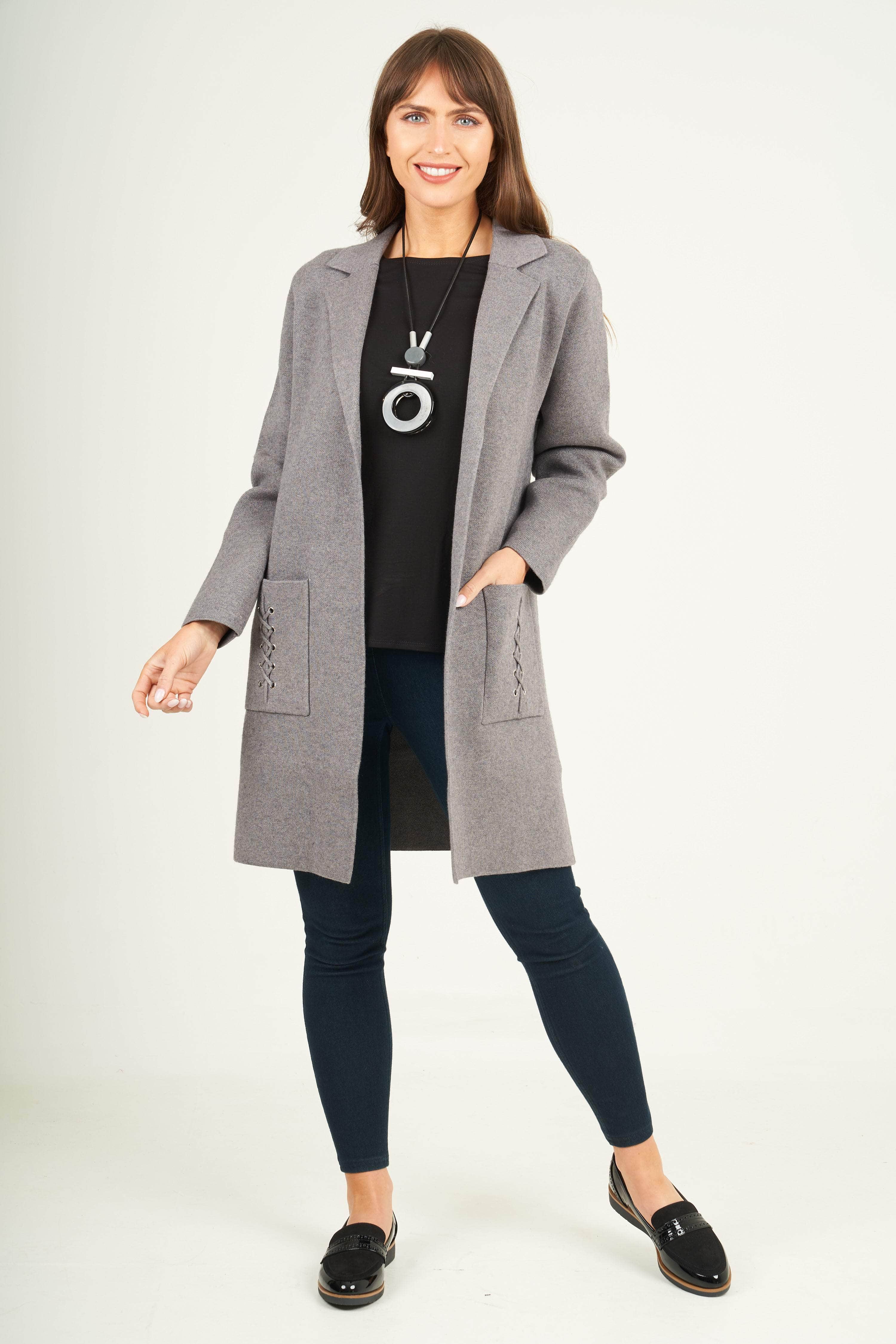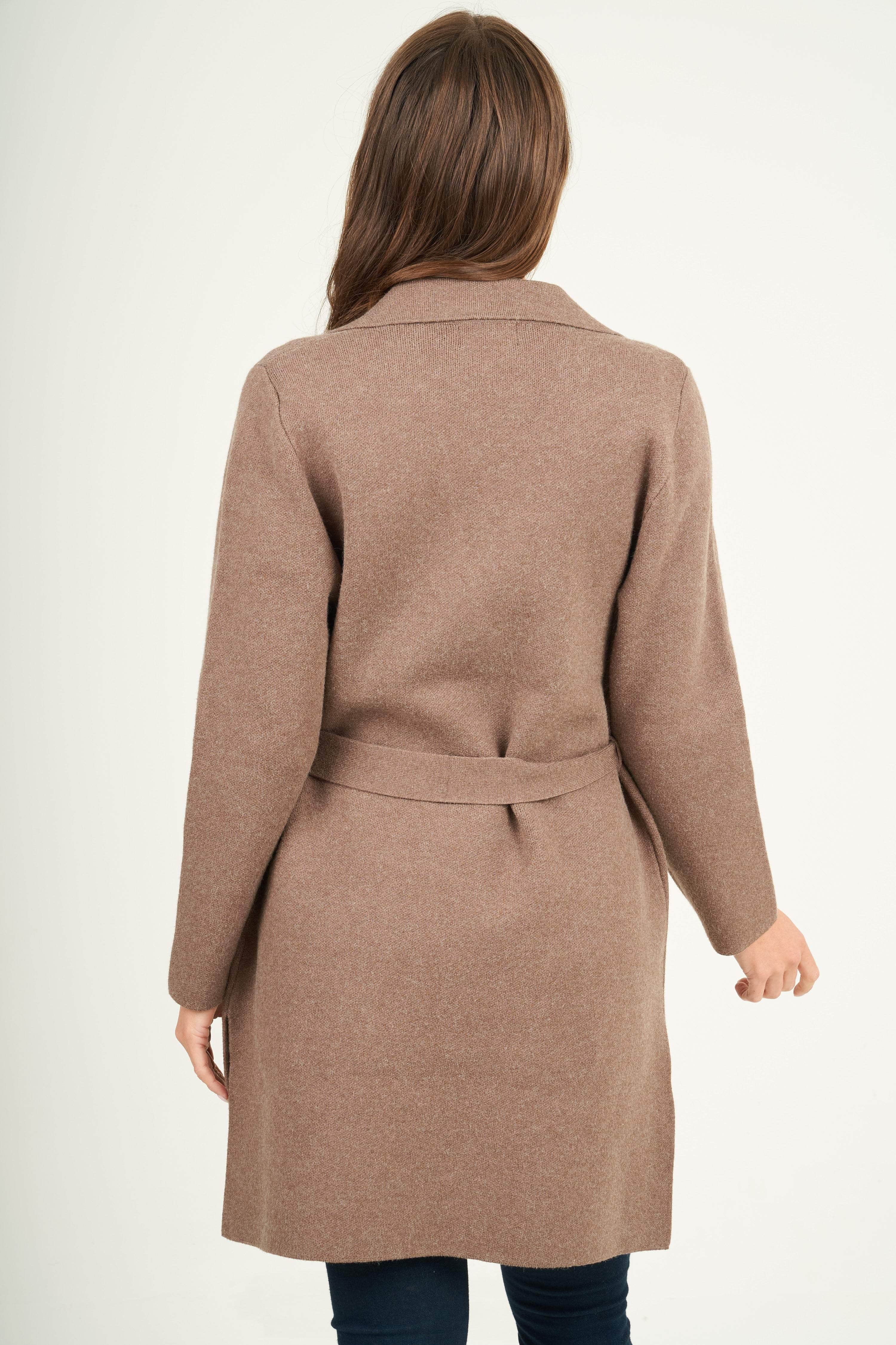 A timeless silhouette that's effortlessly smart, this wrap knitted jacket falls to a knee length. Framed with a lapel collar neckline and self-tie waist, it provides you with a functional yet stylish choice that'll protect you from the elements too. It features front pockets with criss-cross details on.
