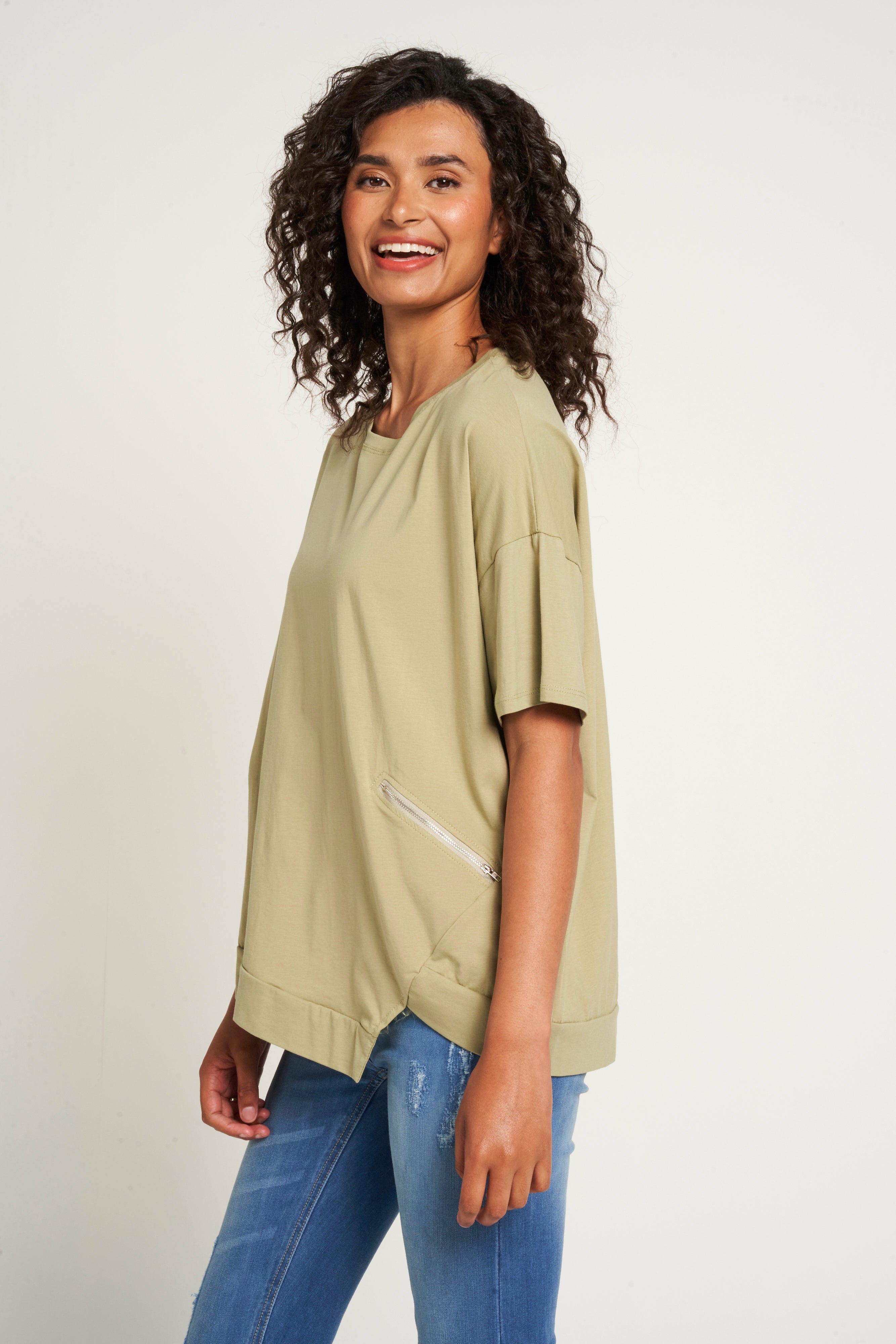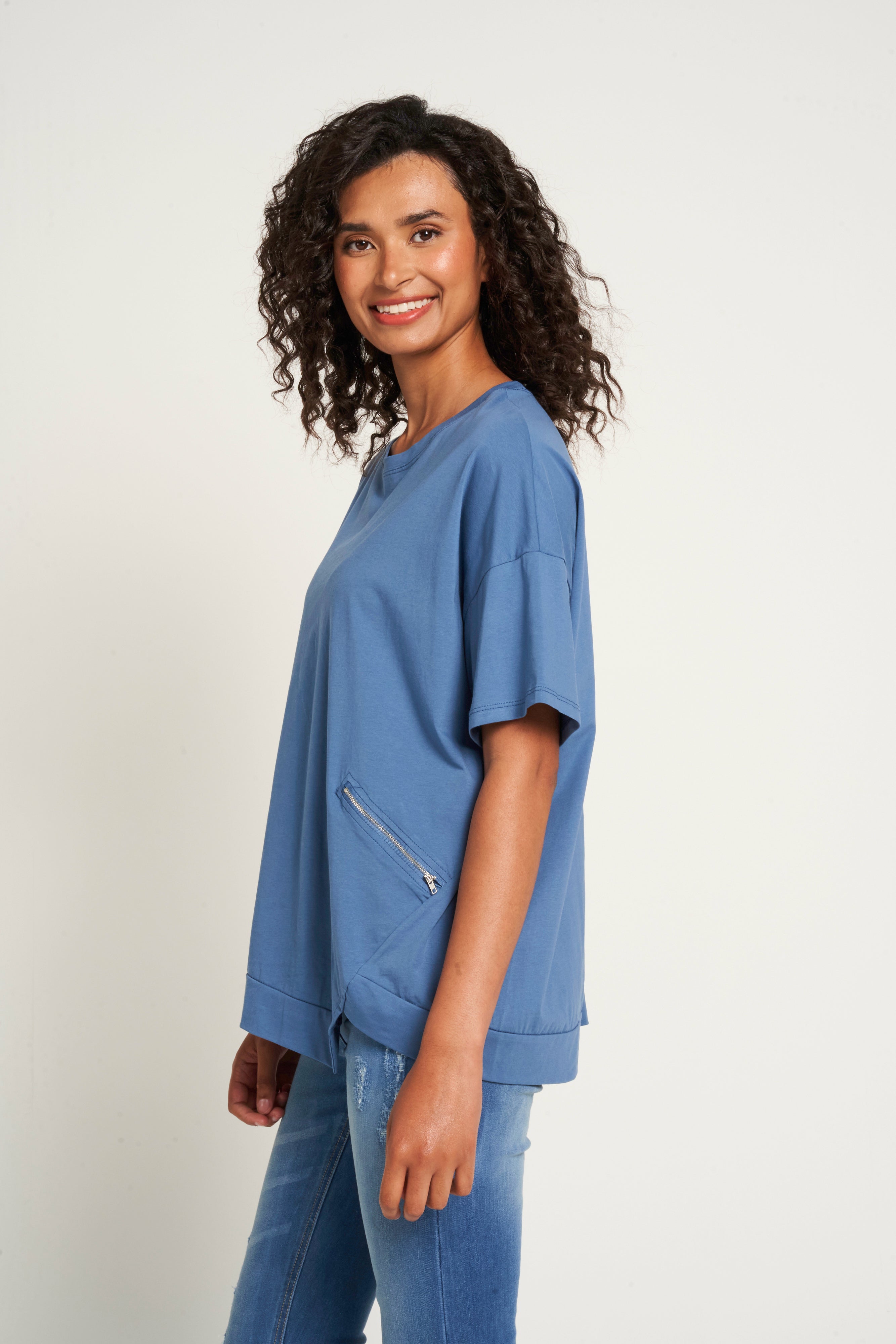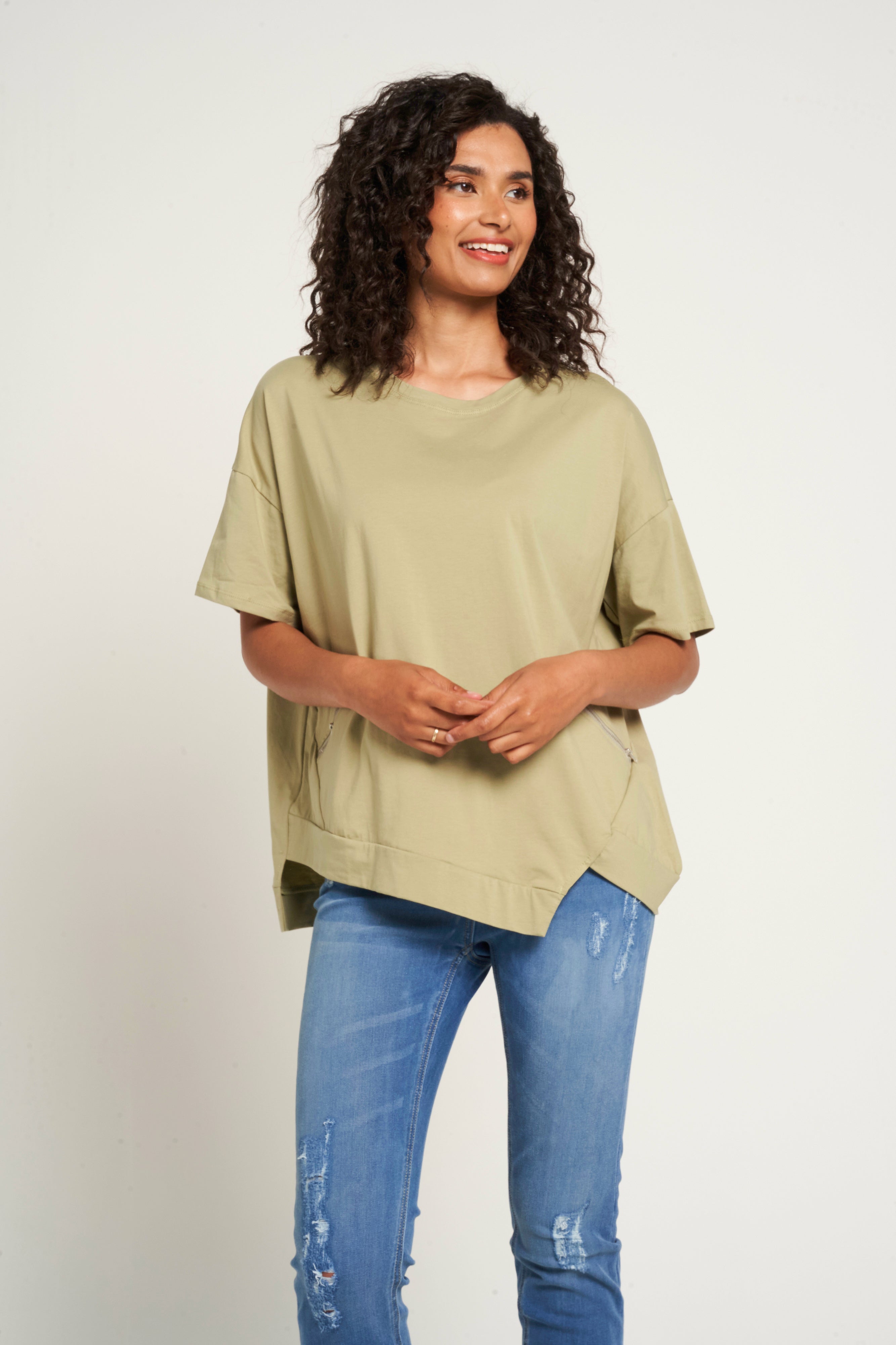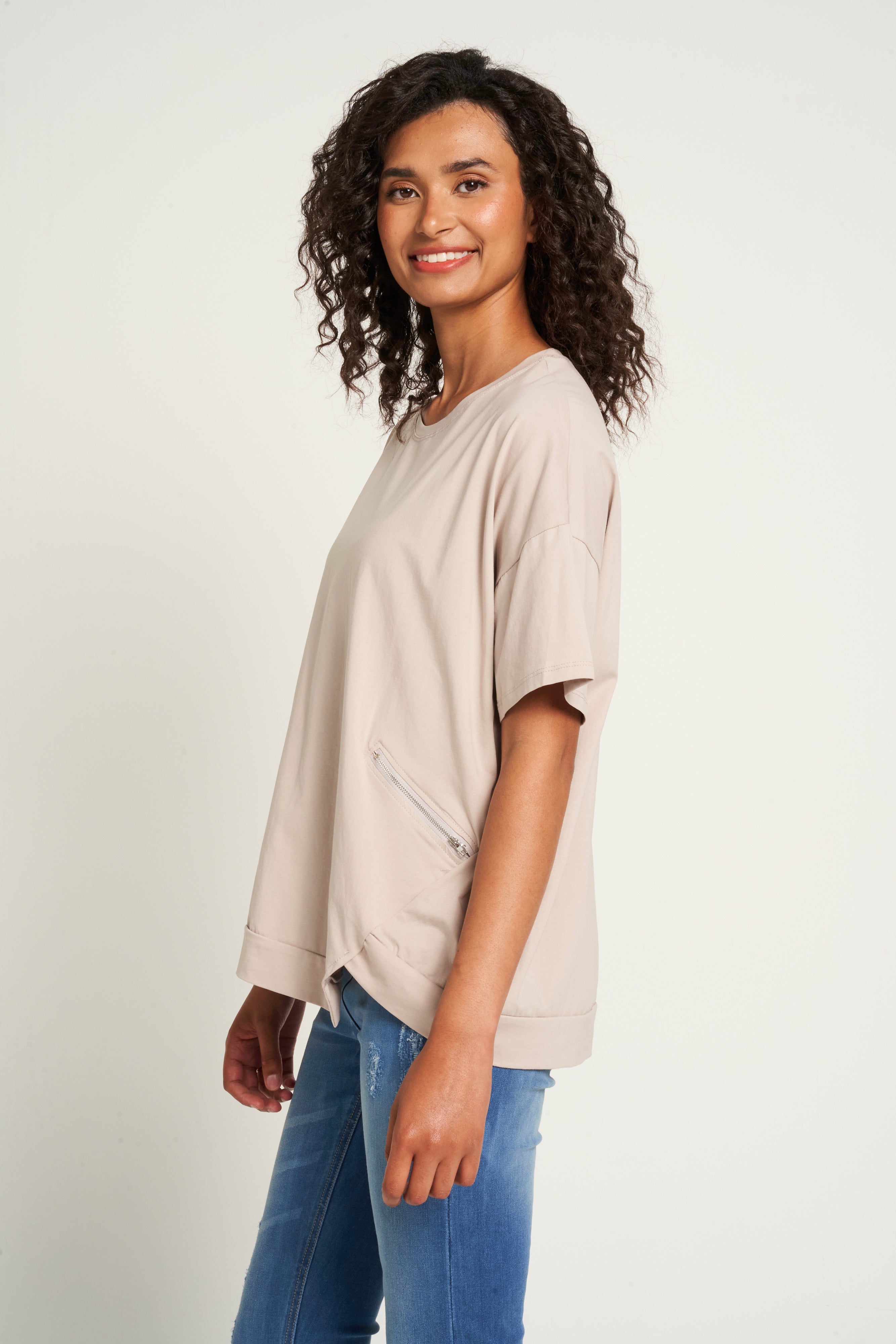 Saloos Asymmetrical Hem Cotton Top with Zip Pockets