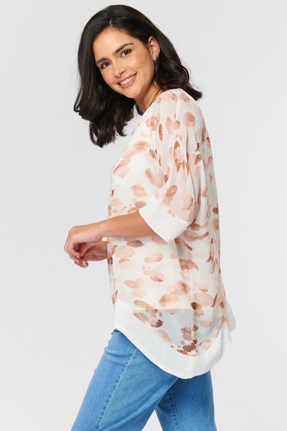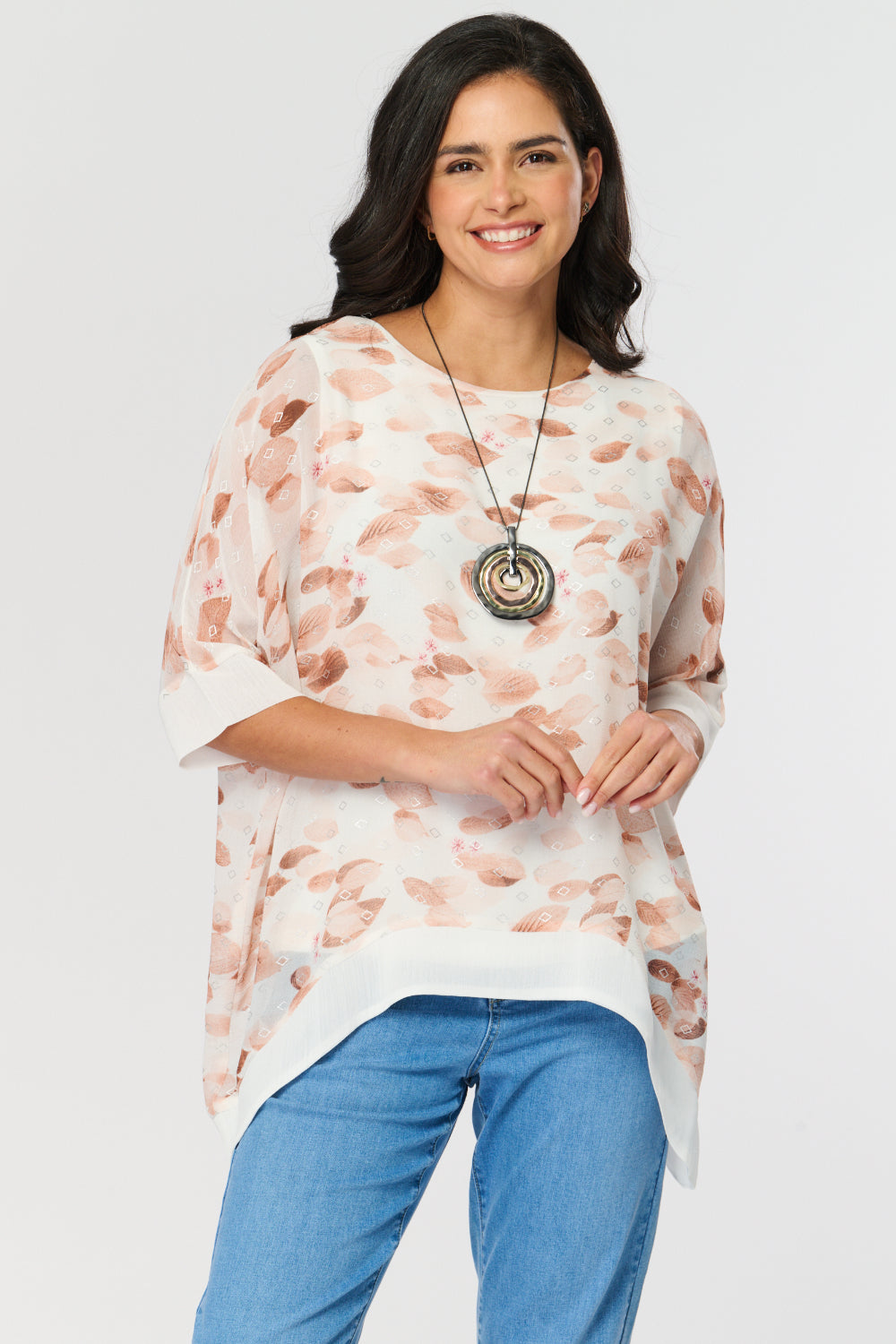 Expertly crafted for a flattering fit, this tunic boasts a unique batwing shape and double layer design. With a stylish side dip hemline and contrasting cuffs and hem, it's perfect for any occasion. Complete the look with your favourite trousers and embrace effortless elegance.