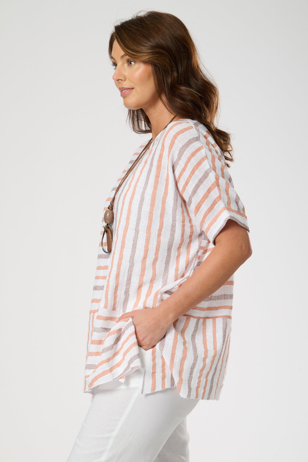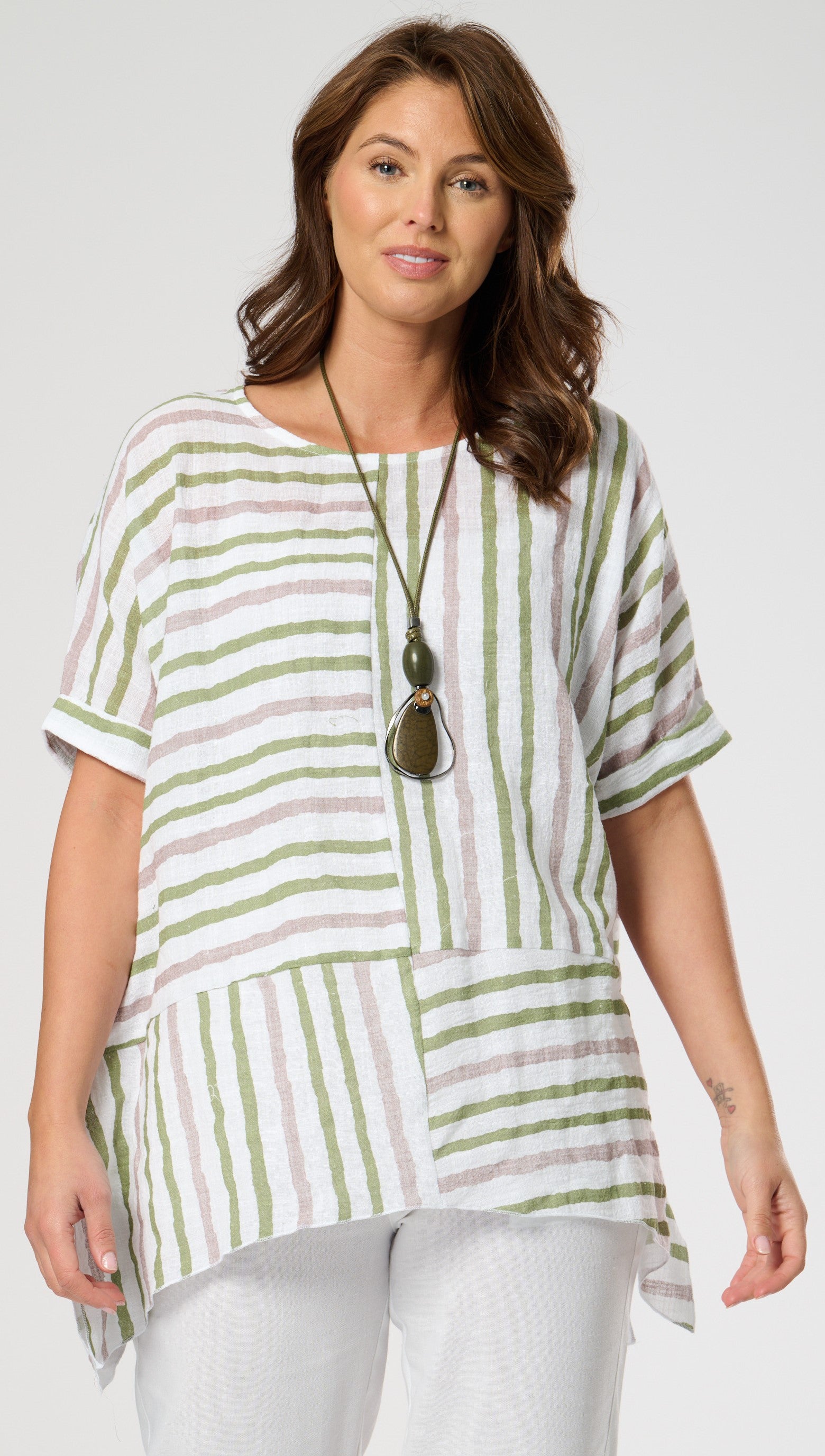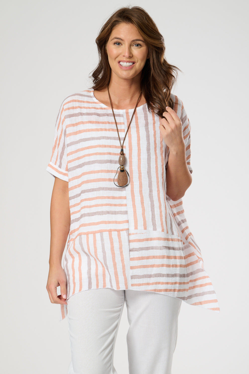 Effortlessly stylish, the breezy A-line top boasts a relaxed fit for ultimate comfort. Its panelled design and dipped hem add a touch of elegance, while the loose short sleeves and side slit offer a flattering silhouette. Available in a range of soft, striking colours  perfect for any occasion.