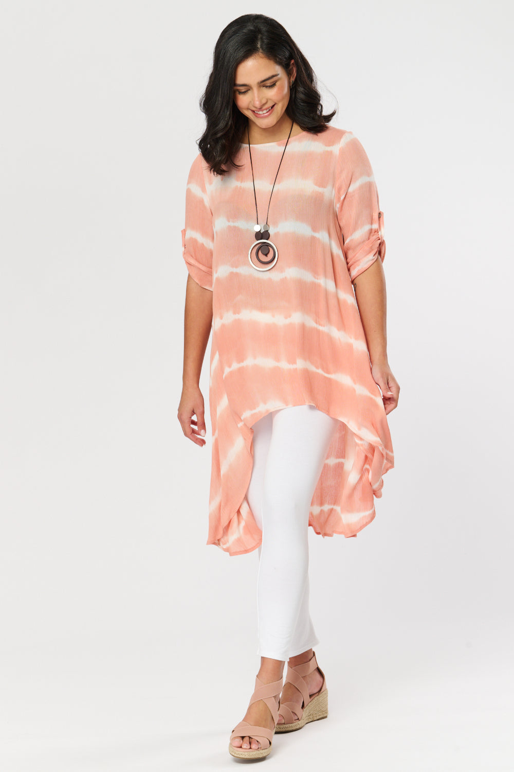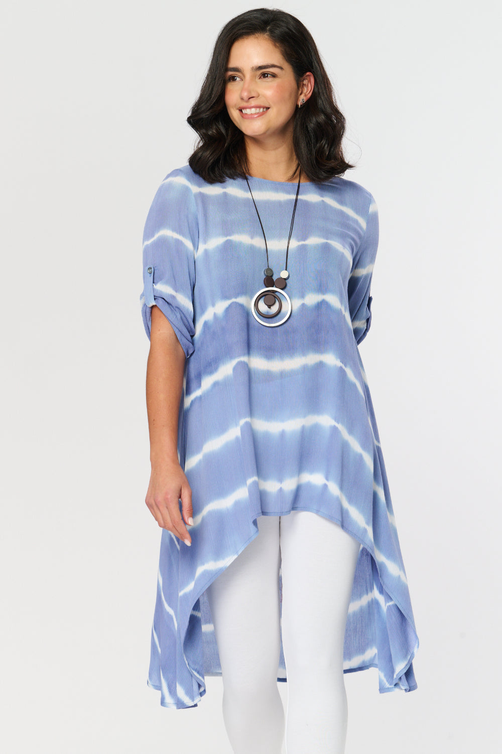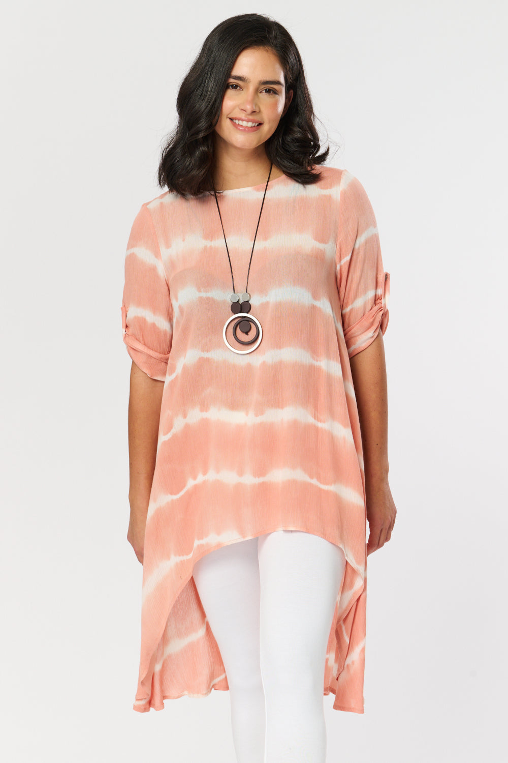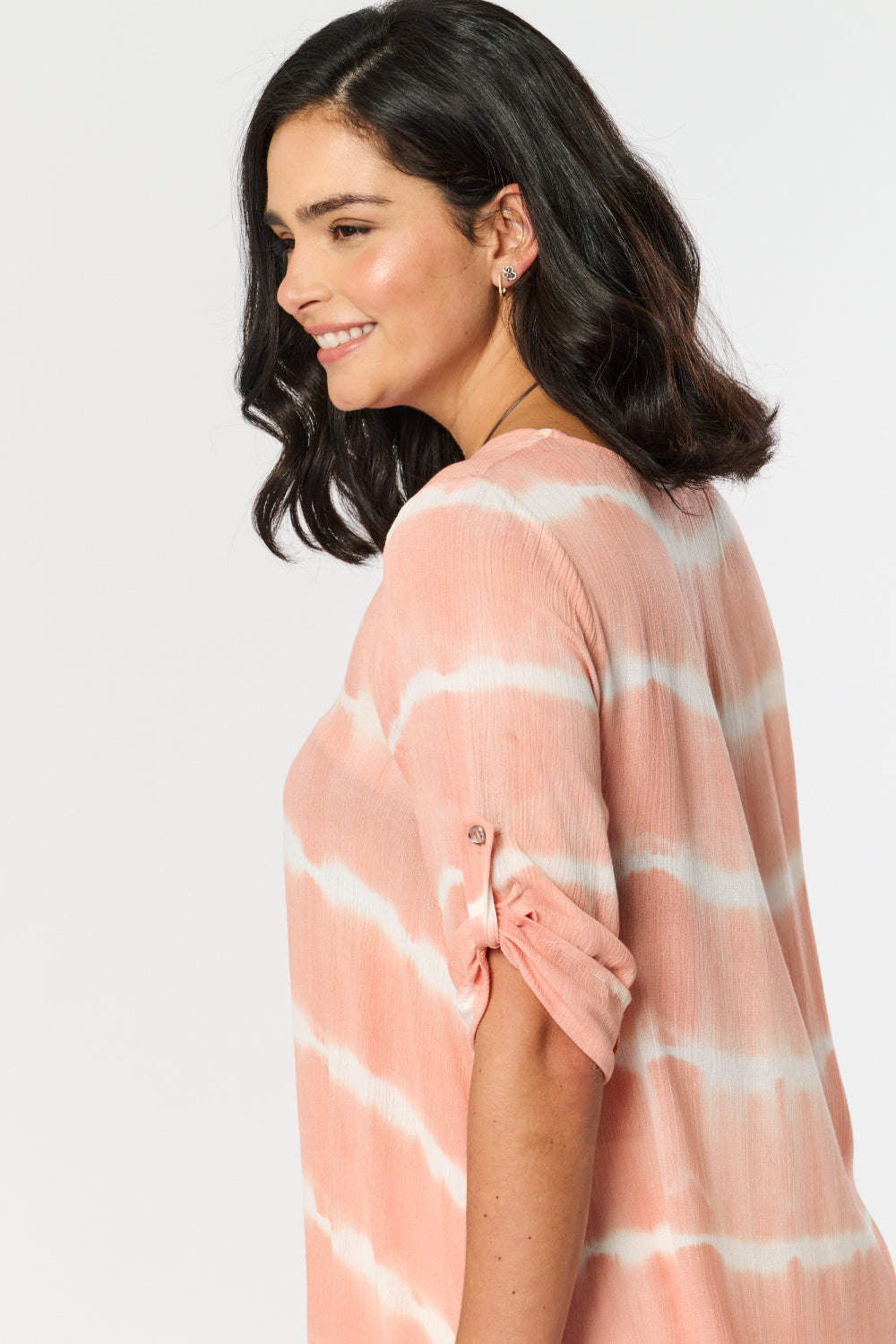 Saloos Tie-Dye Roll Up Sleeves Tunic Top