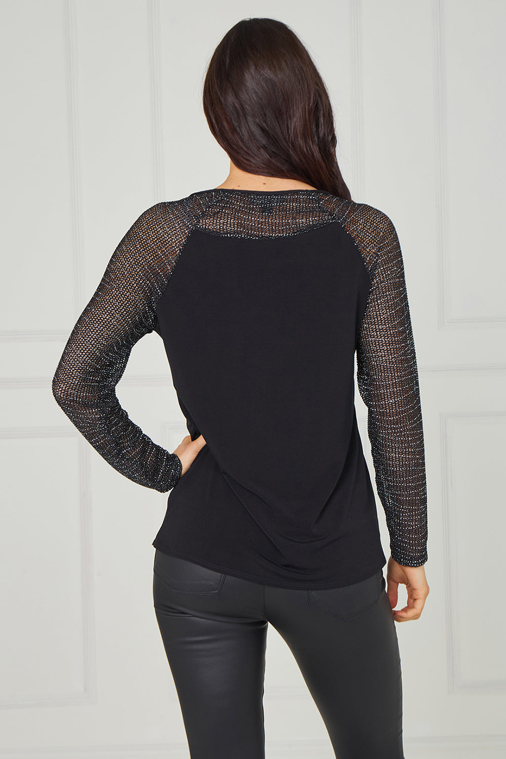 Shine effortlessly this season with the perfect blend of comfort, elegance, and festive glam top. Designed with sheer metallic-thread mesh sleeves and a matching shimmering neckline, this top adds just the right amount of sparkle for Christmas parties, winter nights out, and stylish celebrations.