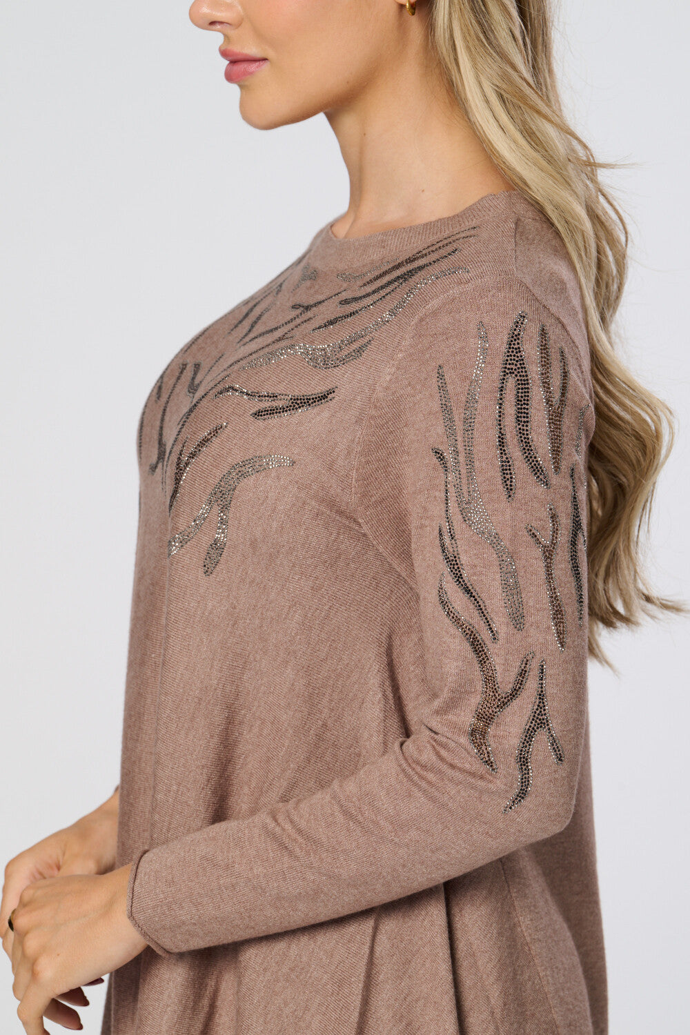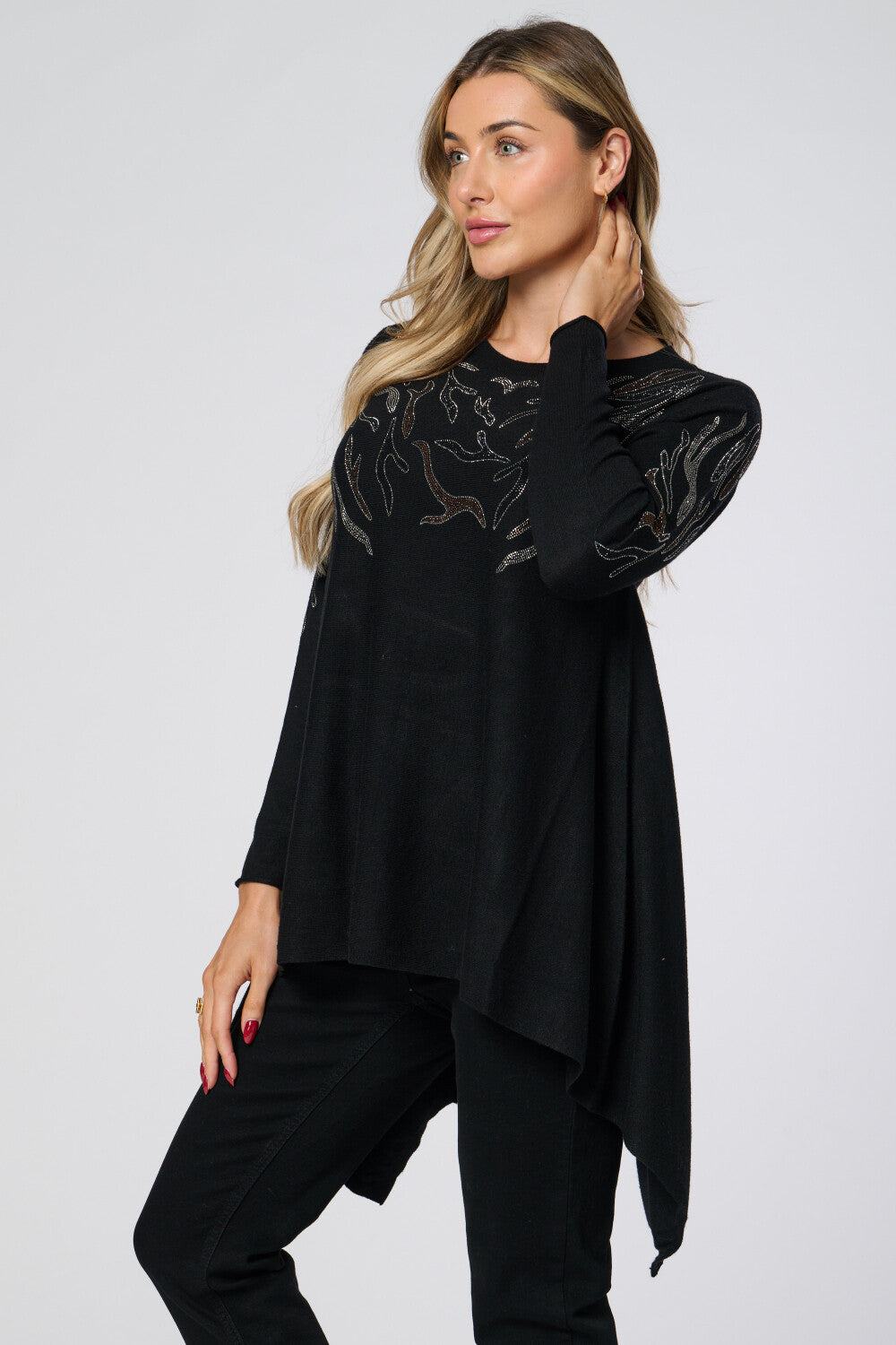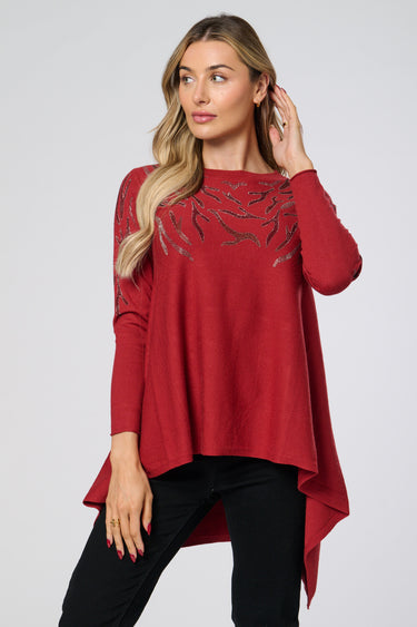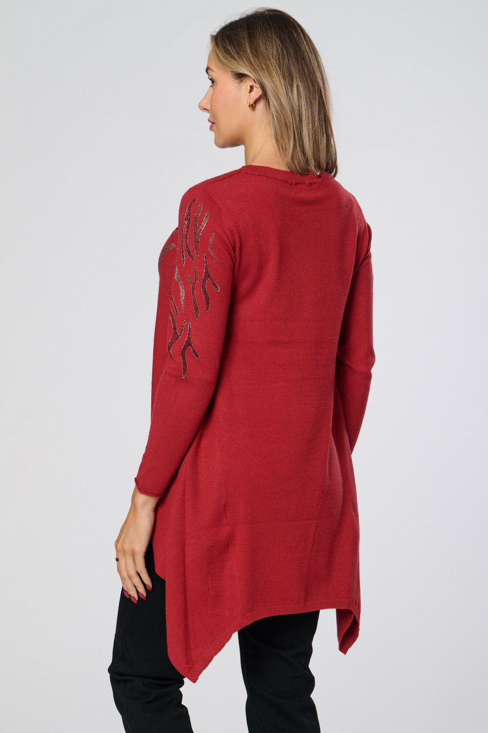 Saloos Women's Soft Knit Dip Back Embellished Swing Tunic