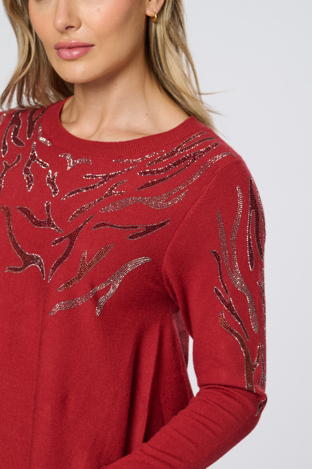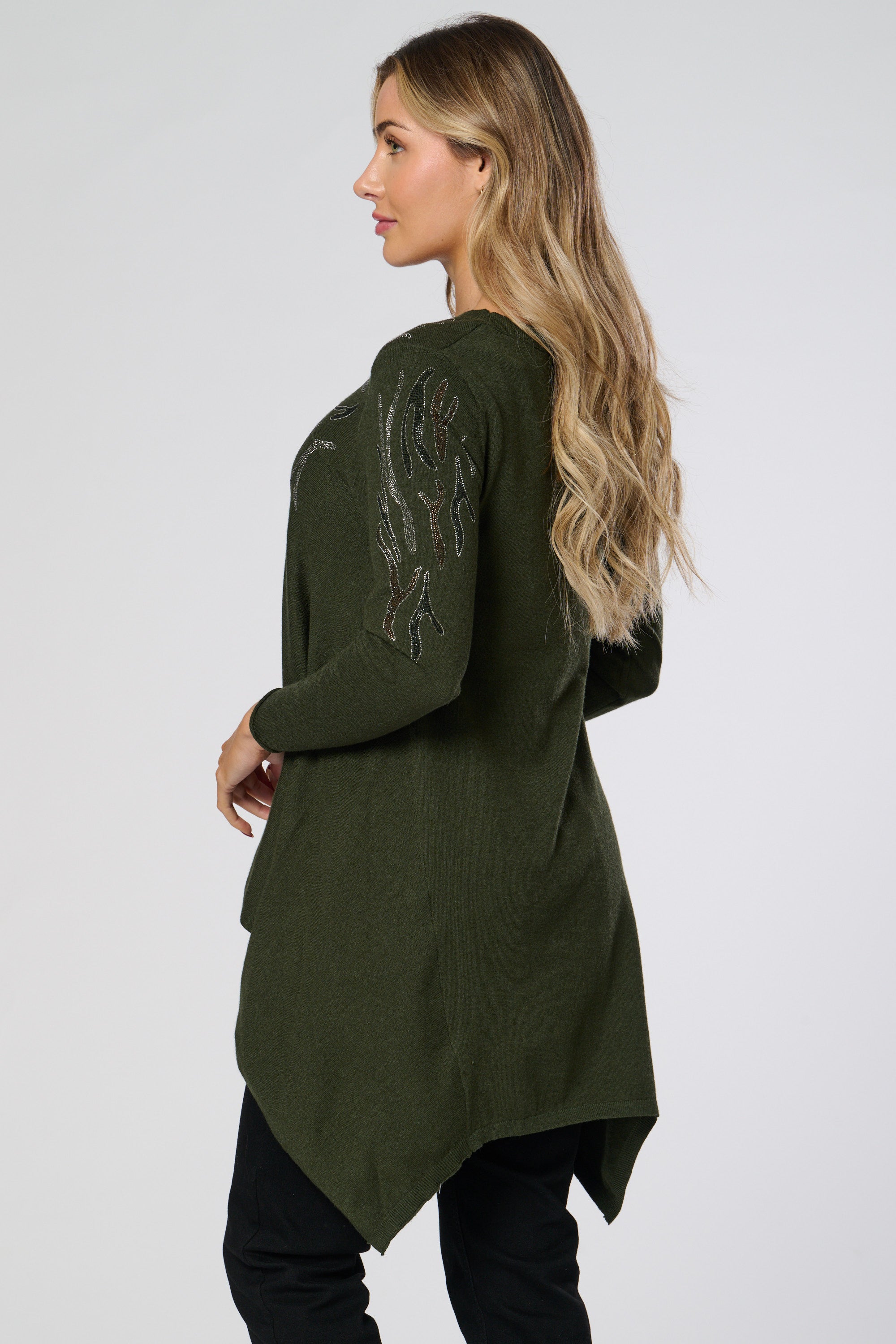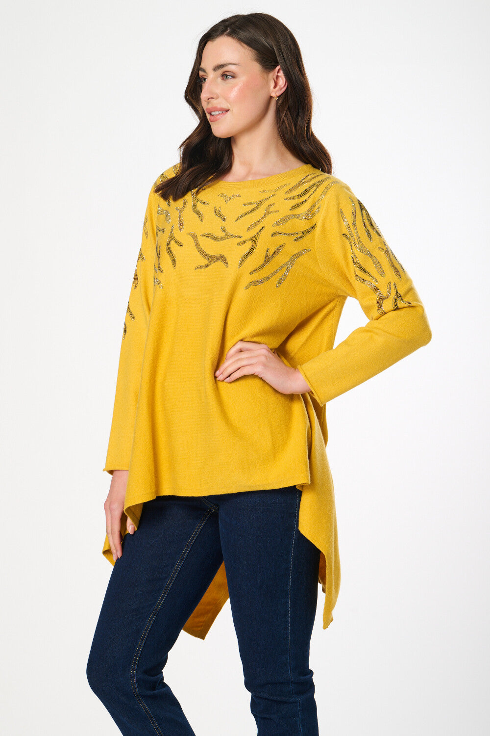 Saloos Women's Soft Knit Dip Back Embellished Swing Tunic