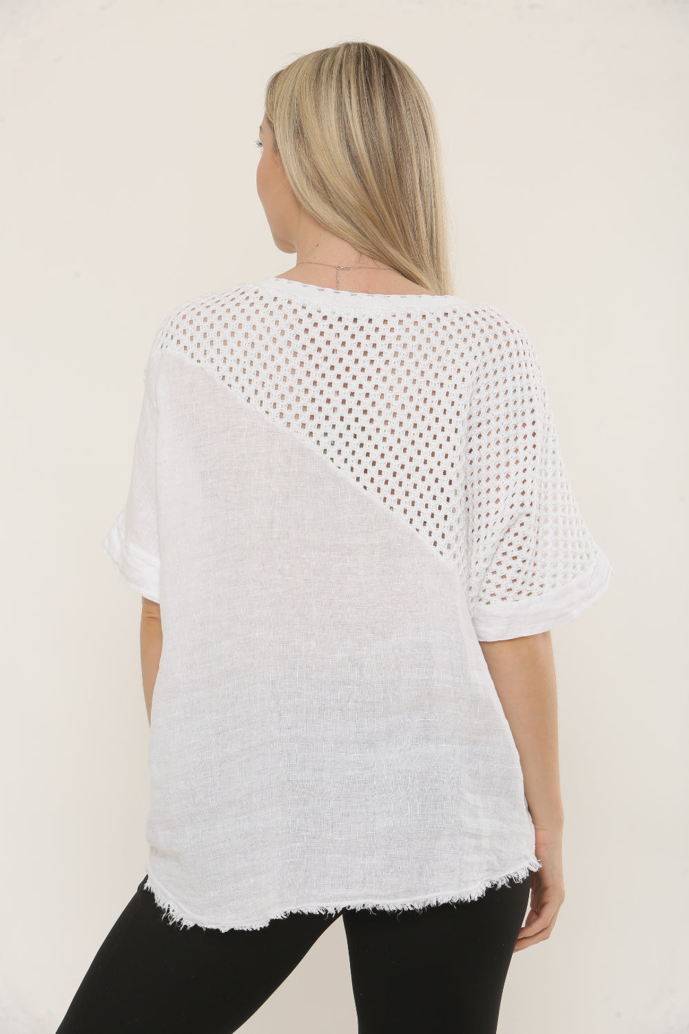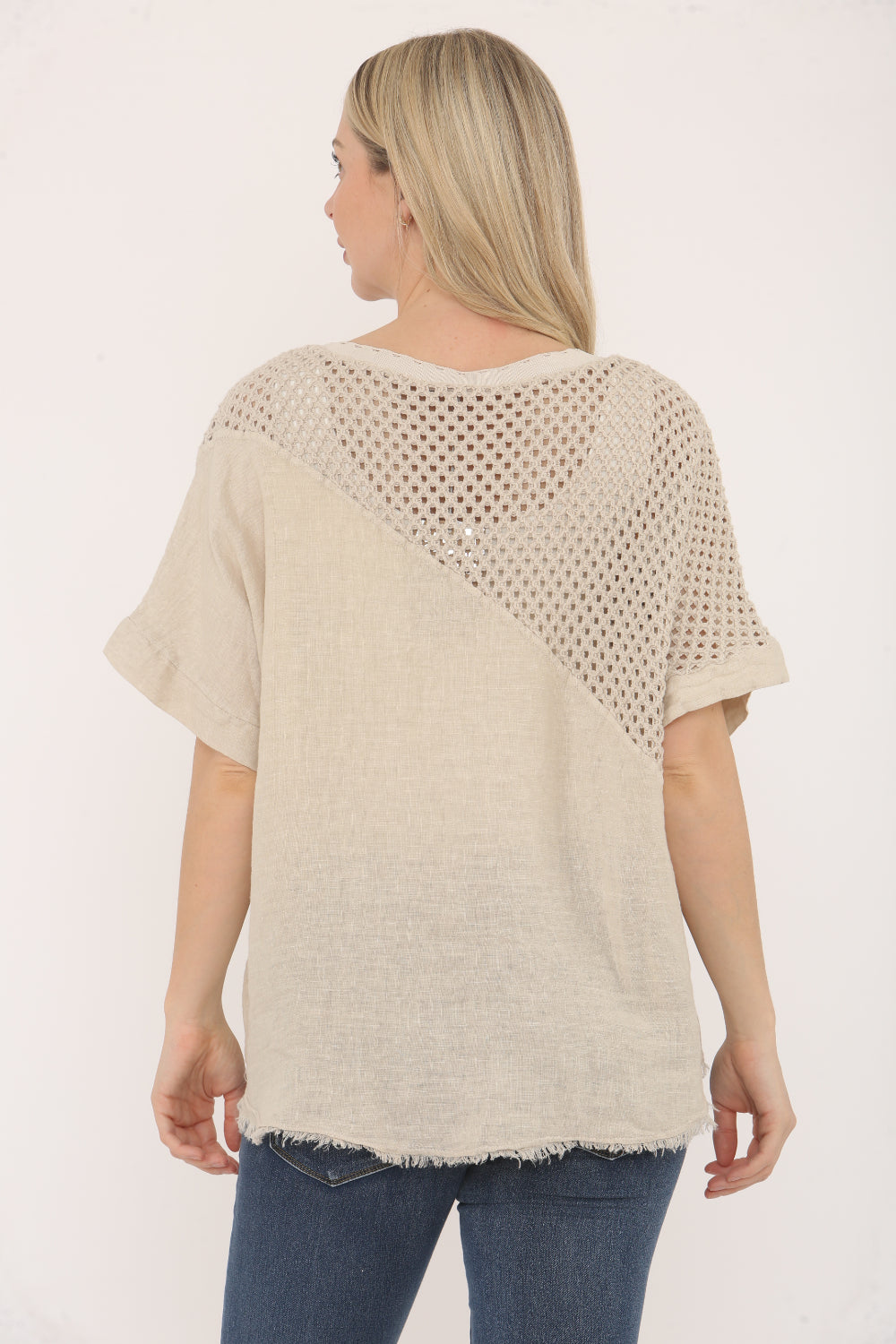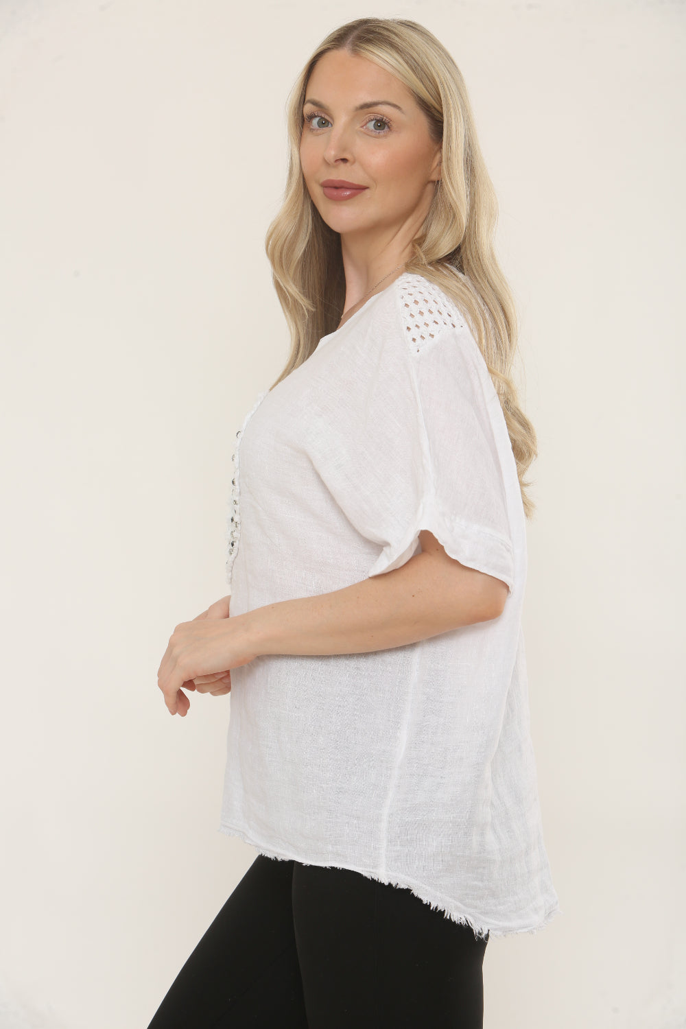 Silvia Linen Embellished Heart Patch with Crochet Detail Top
