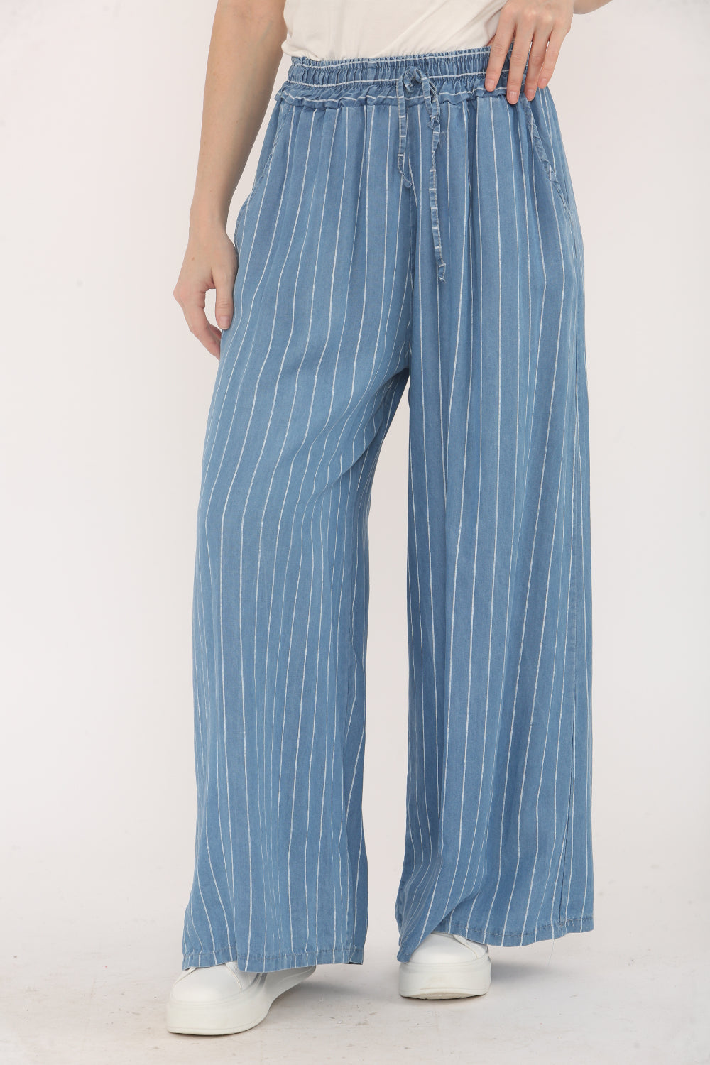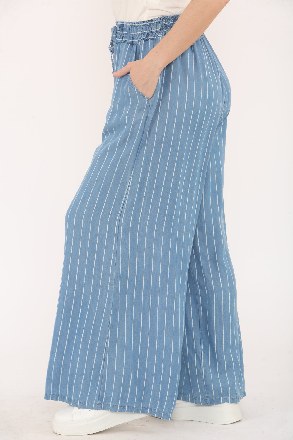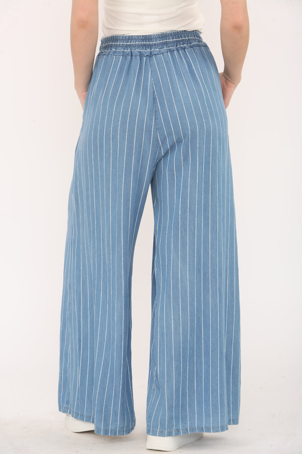 Diverse Striped Denim Drawstring Wide-Leg Trousers