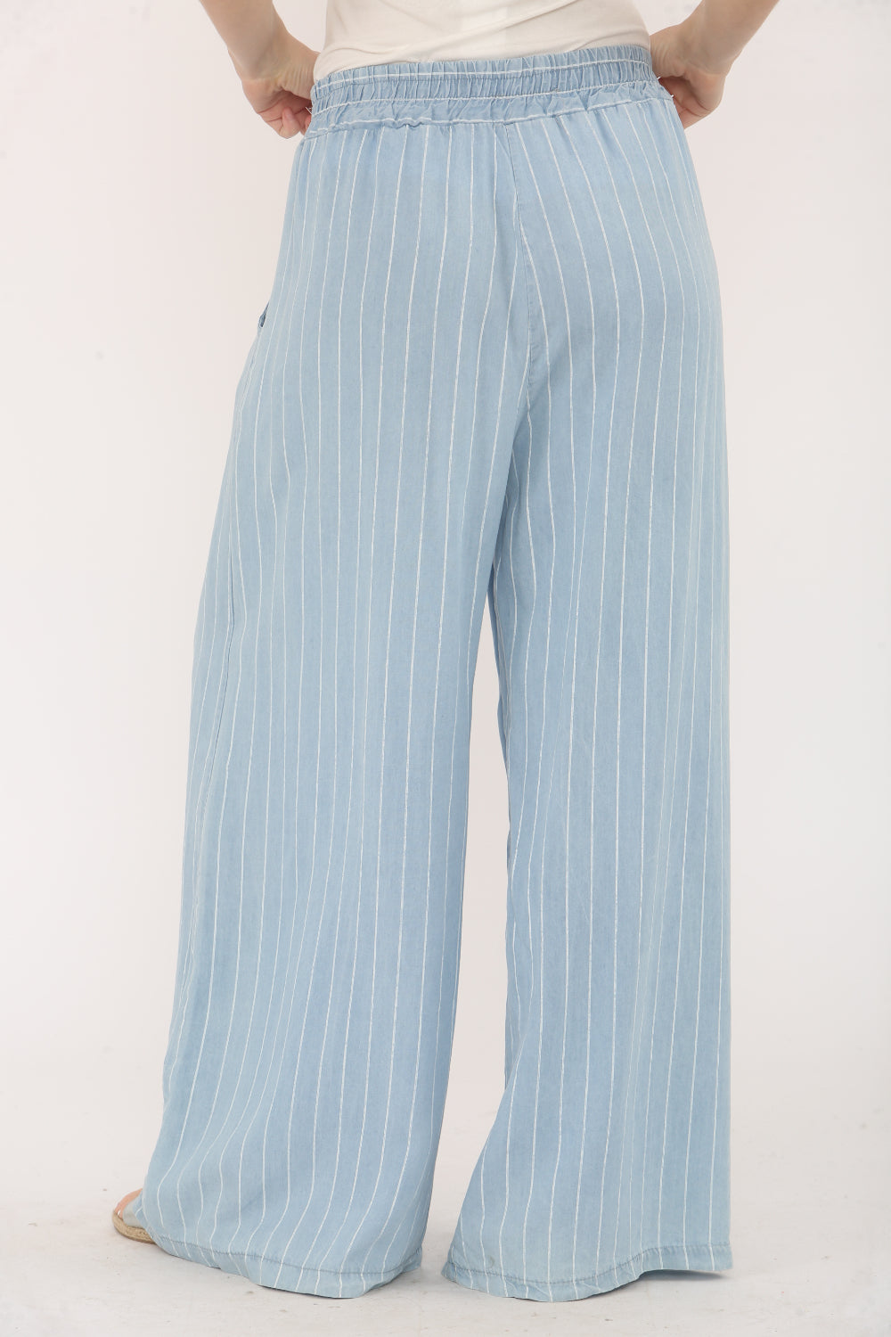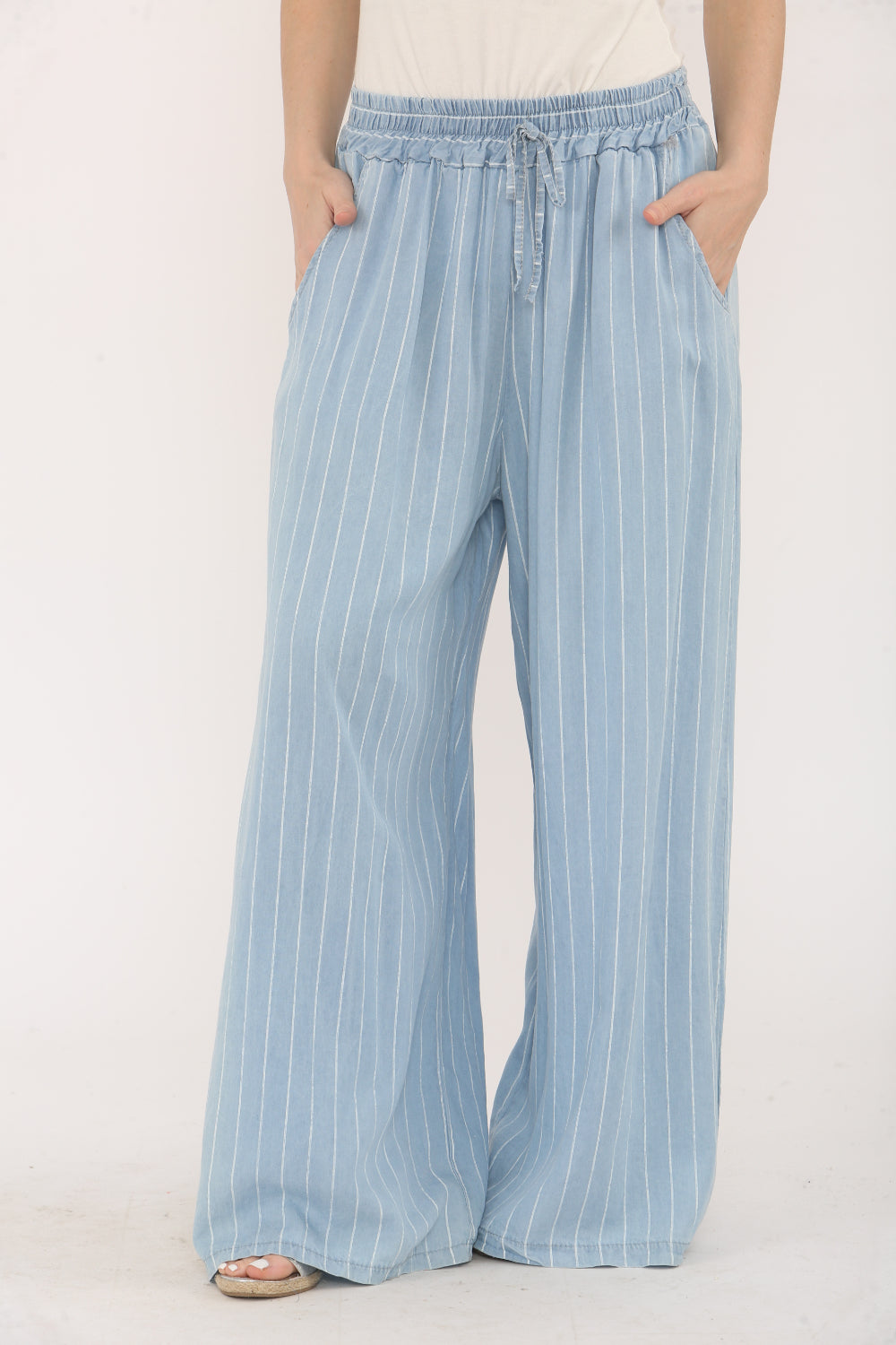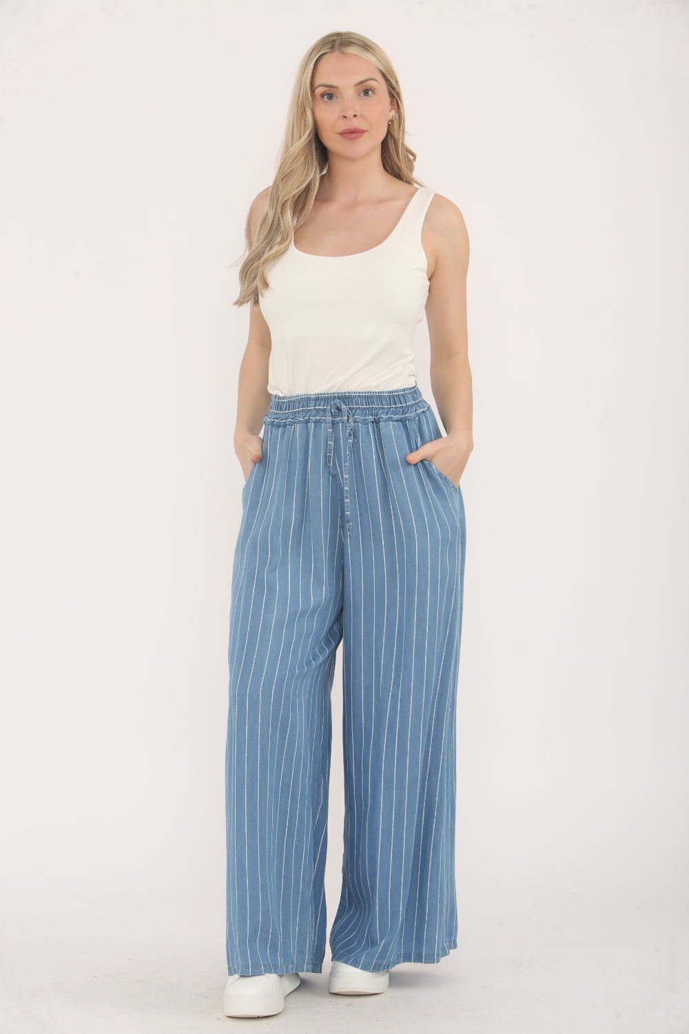 Diverse Striped Denim Drawstring Wide-Leg Trousers