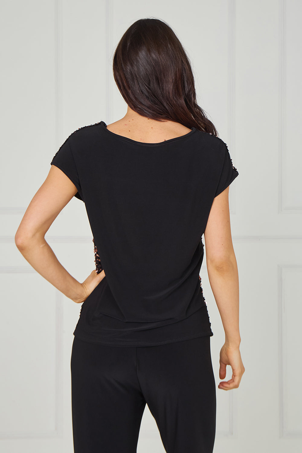 Saloos Women's Bronze Sequin Metallic PartyTop with Cap Sleeves