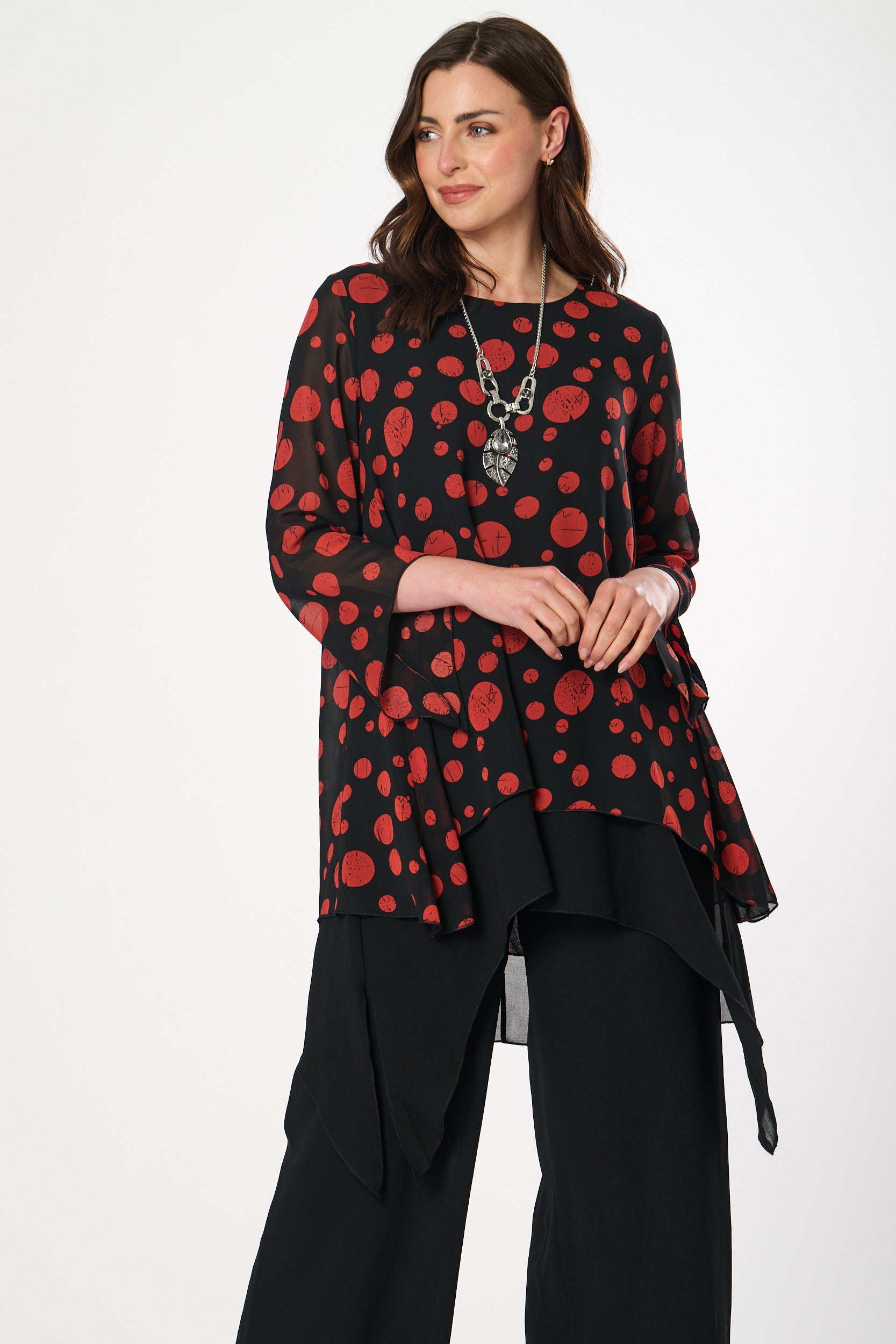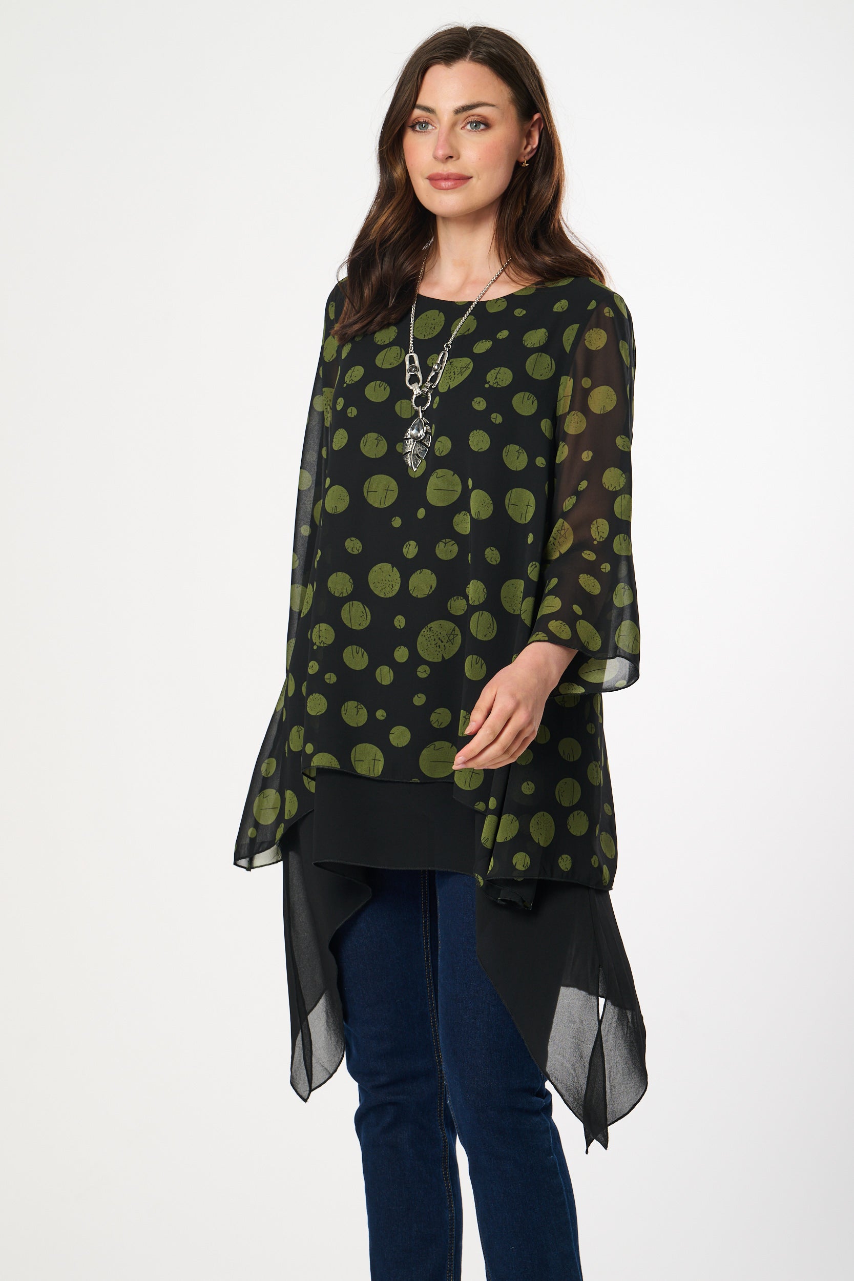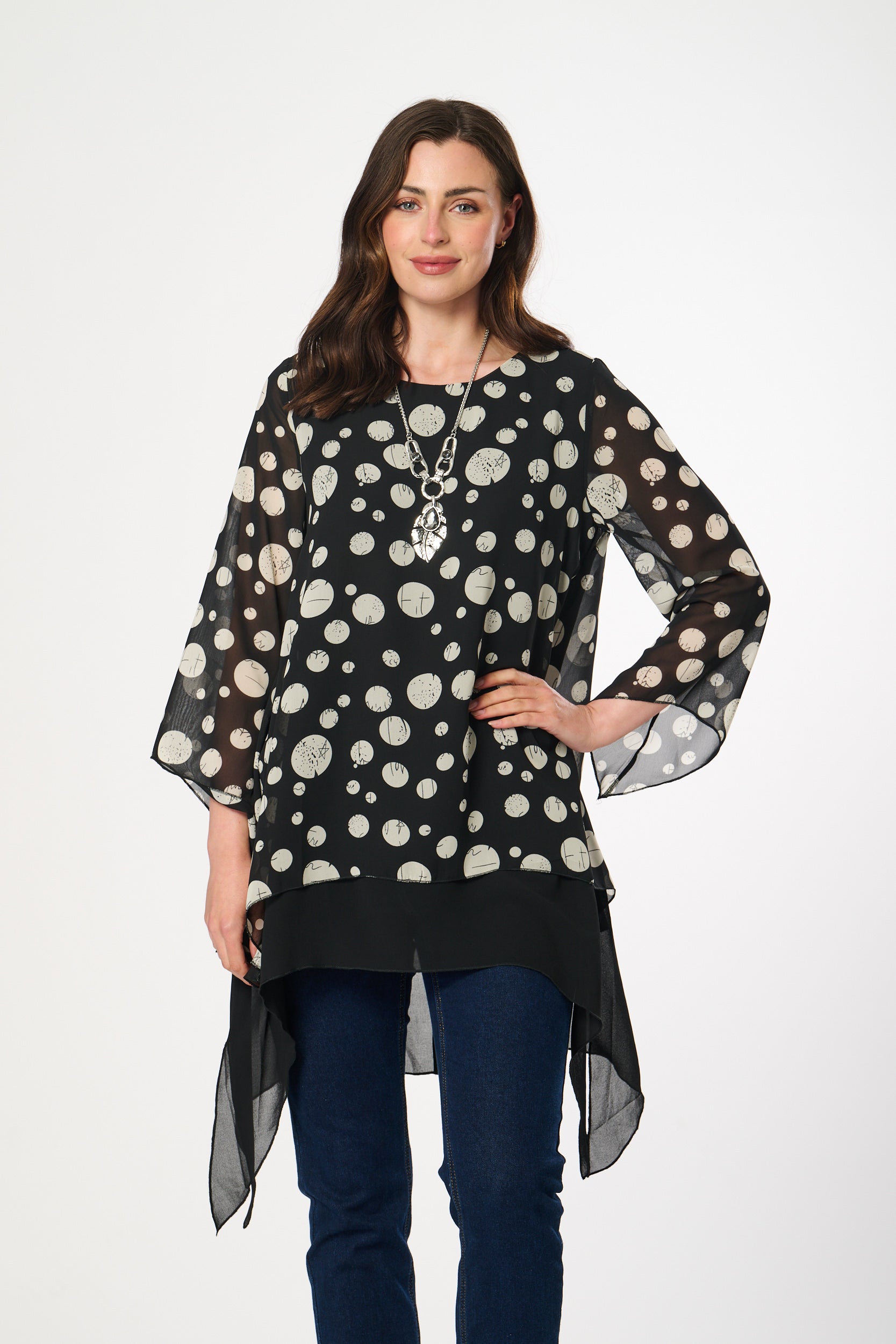 Saloos Chiffon Double Layer Split Back Tunic with Necklace
