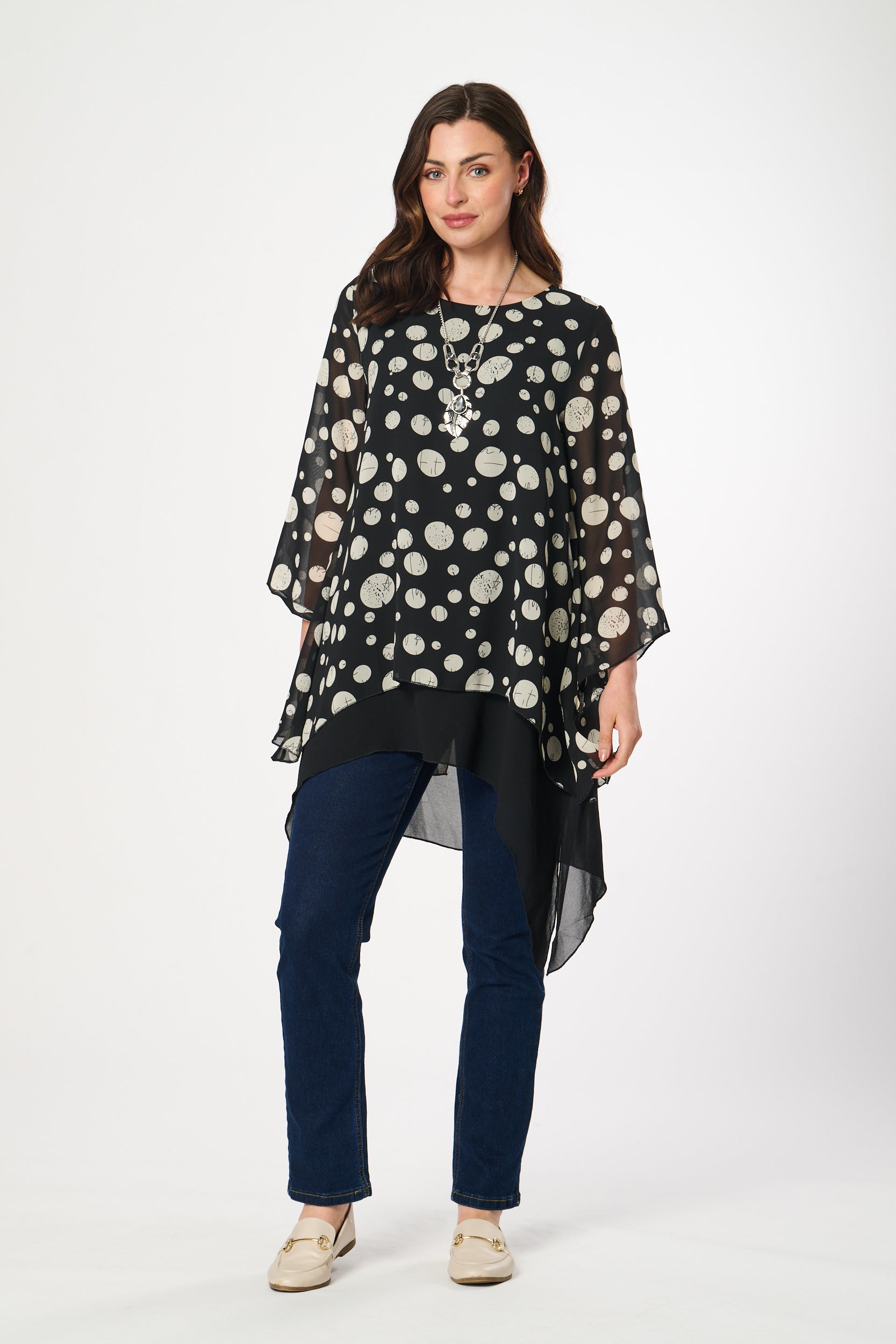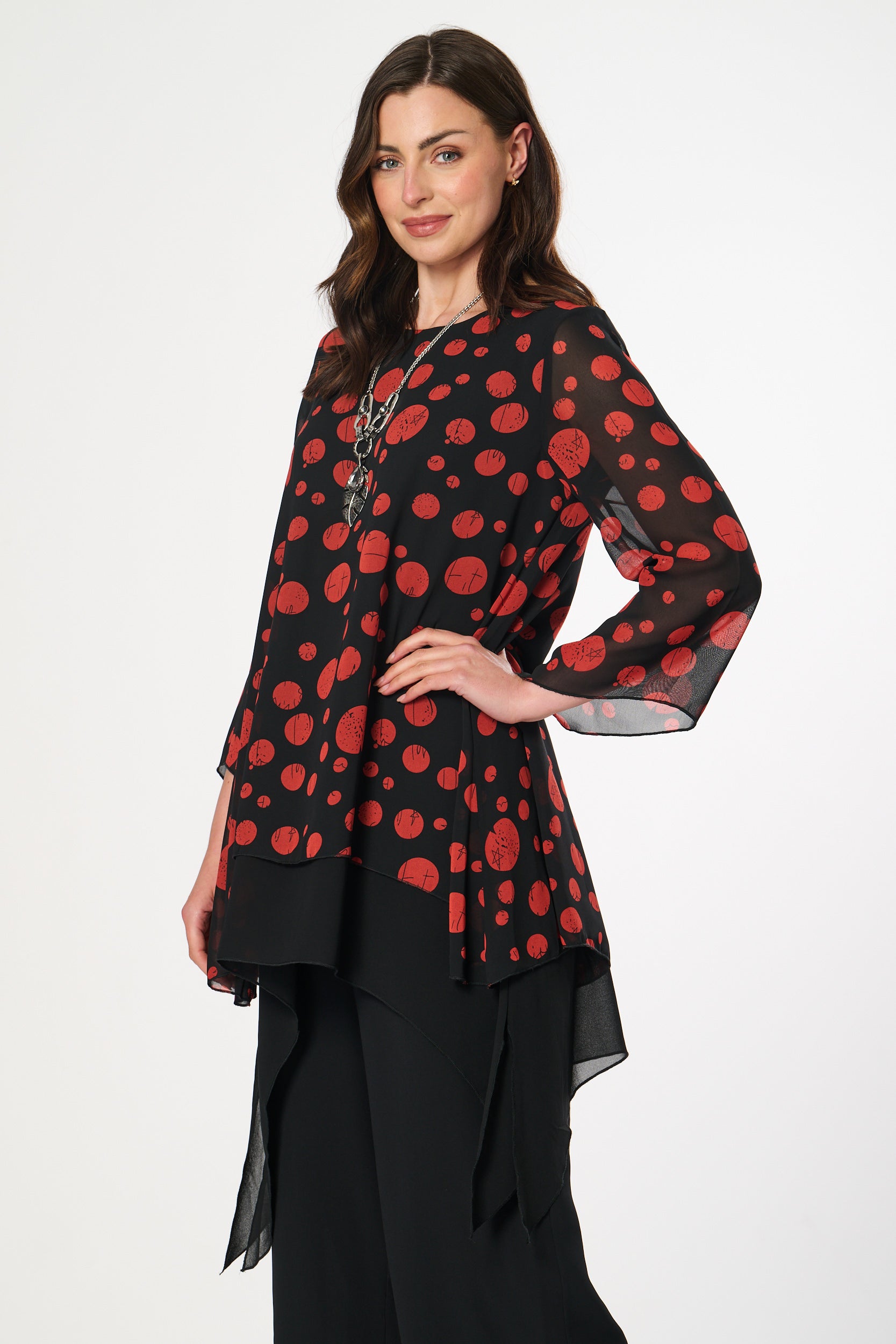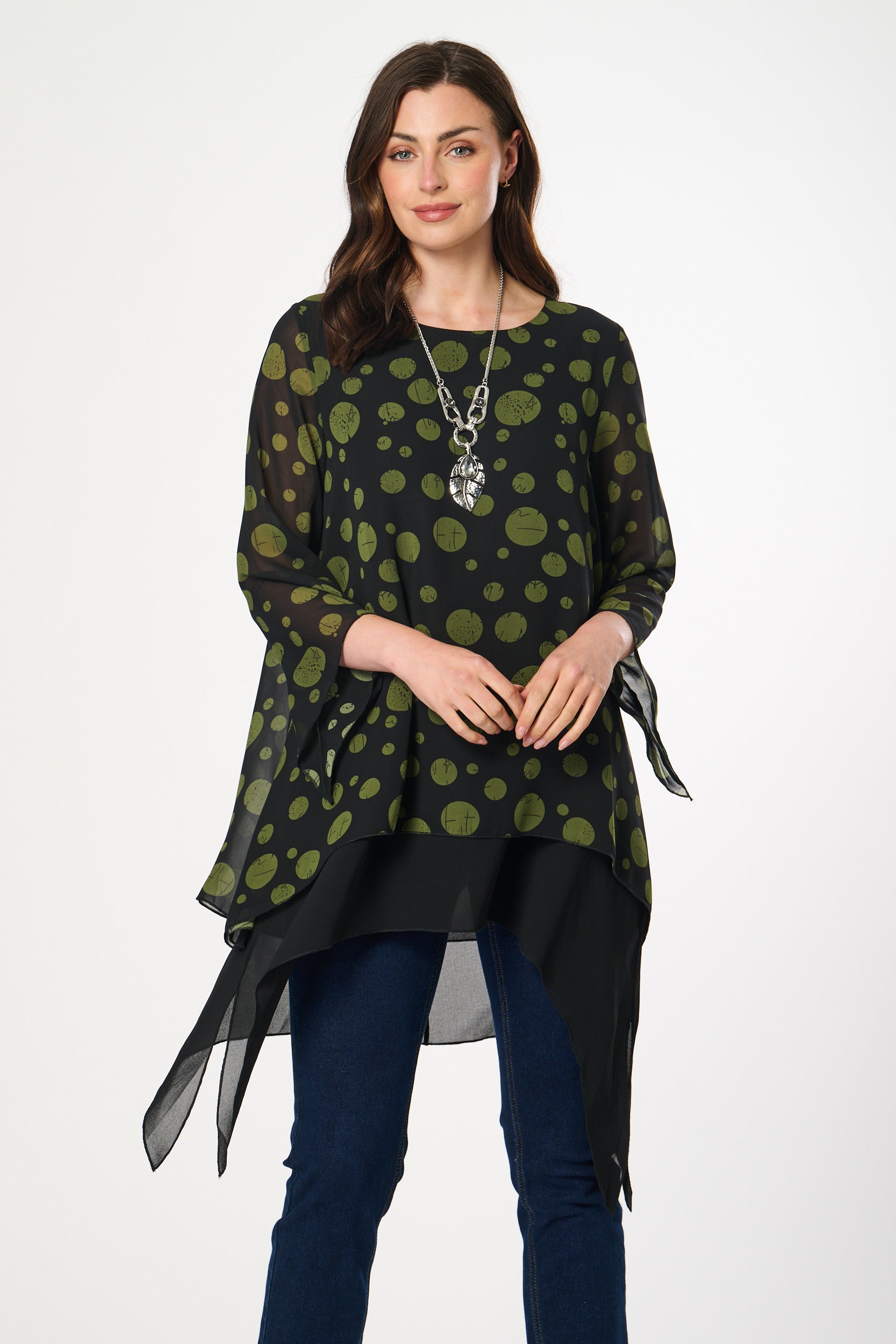 Saloos Chiffon Double Layer Split Back Tunic with Necklace