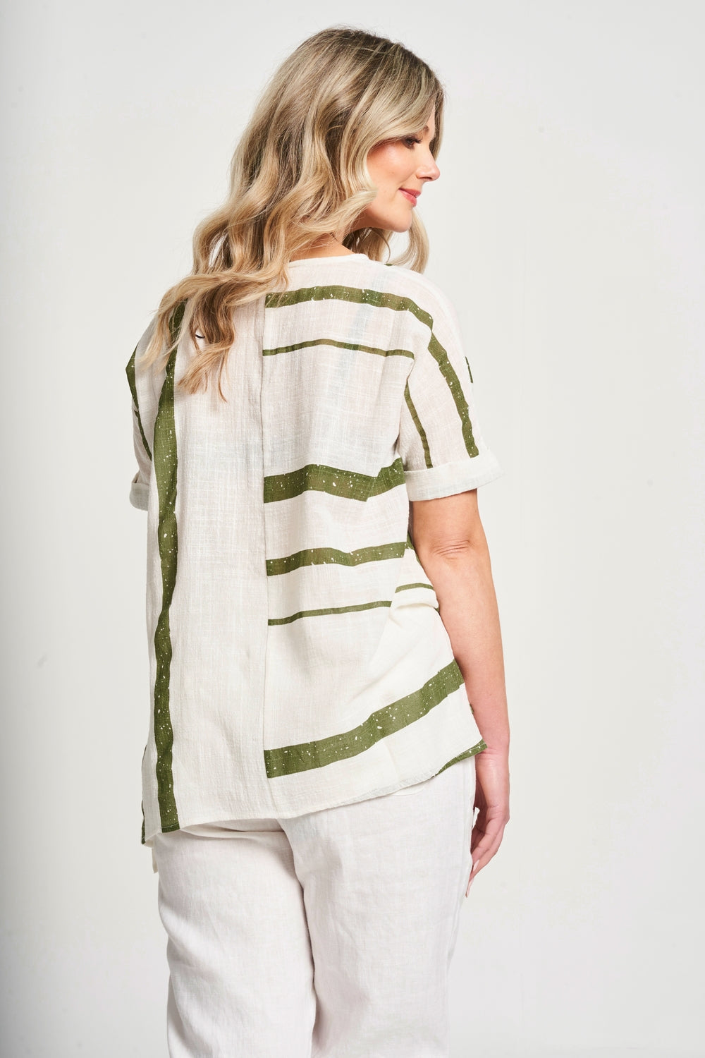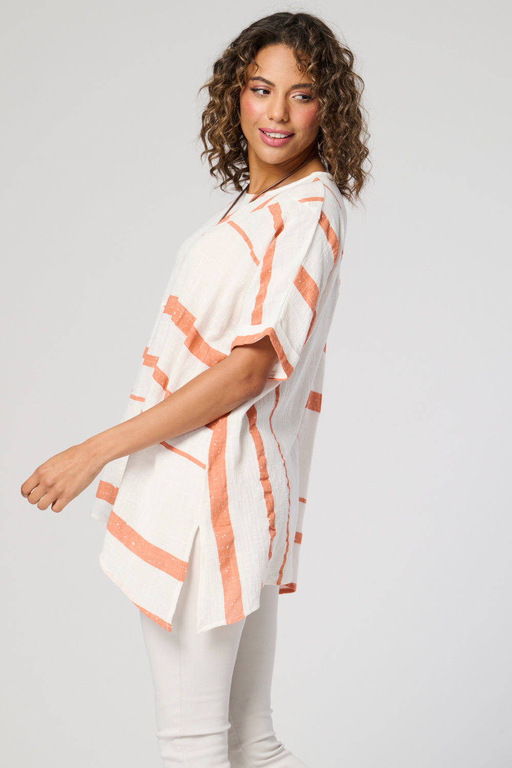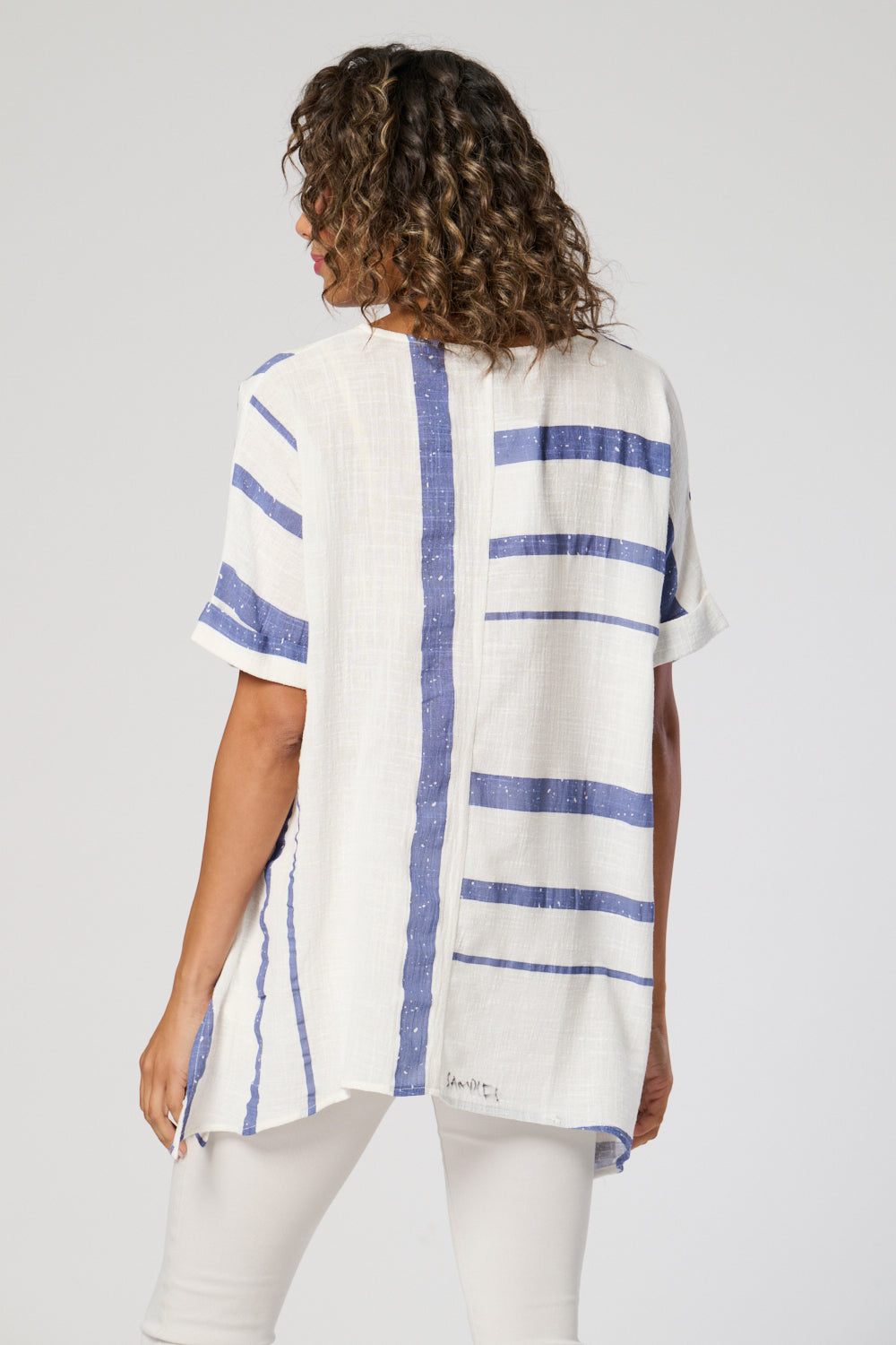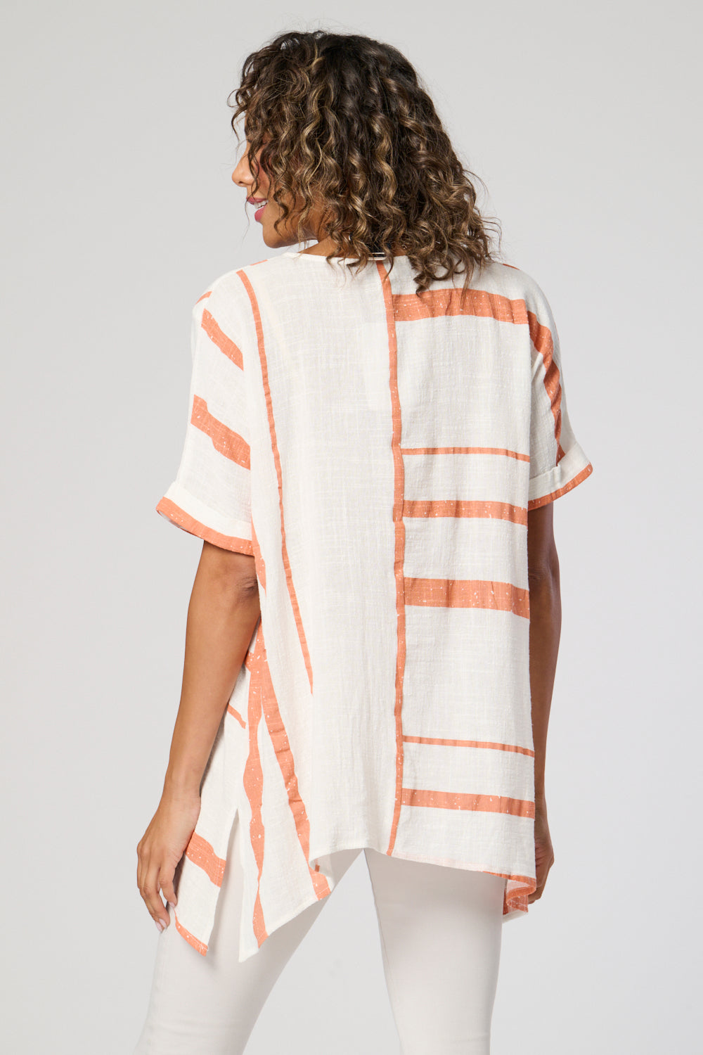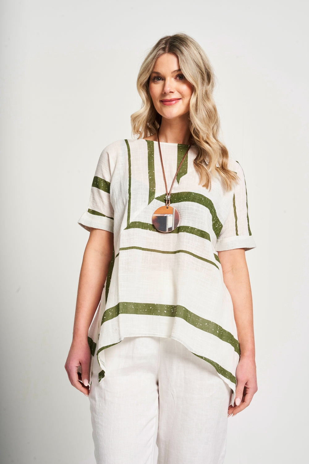 Expertly tailored with a diagonal seam and panelled design, this top is a must-have for your wardrobe. The extended shoulder short sleeves provide comfort and the stripy print adds a touch of style. Made of lightweight cotton, it comes with a matching necklace* for effortless accessorizing.
