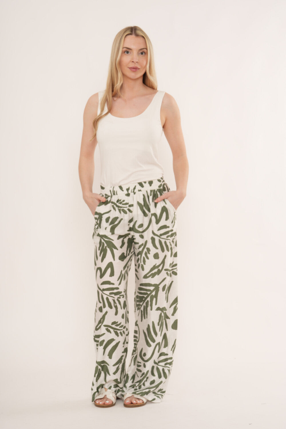 Elevate your everyday style with these effortlessly chic botanical print trousers. Designed with a relaxed wide-leg silhouette, these trousers combine comfort and sophistication, making them perfect for both casual days and elevated summer looks.