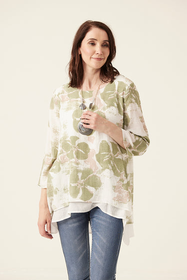 A sophisticated double layer top with flattering ruched sleeves and a high-low hemline for added style. Complete the look with the included matching necklace*. Elevate your wardrobe with this must-have piece.
