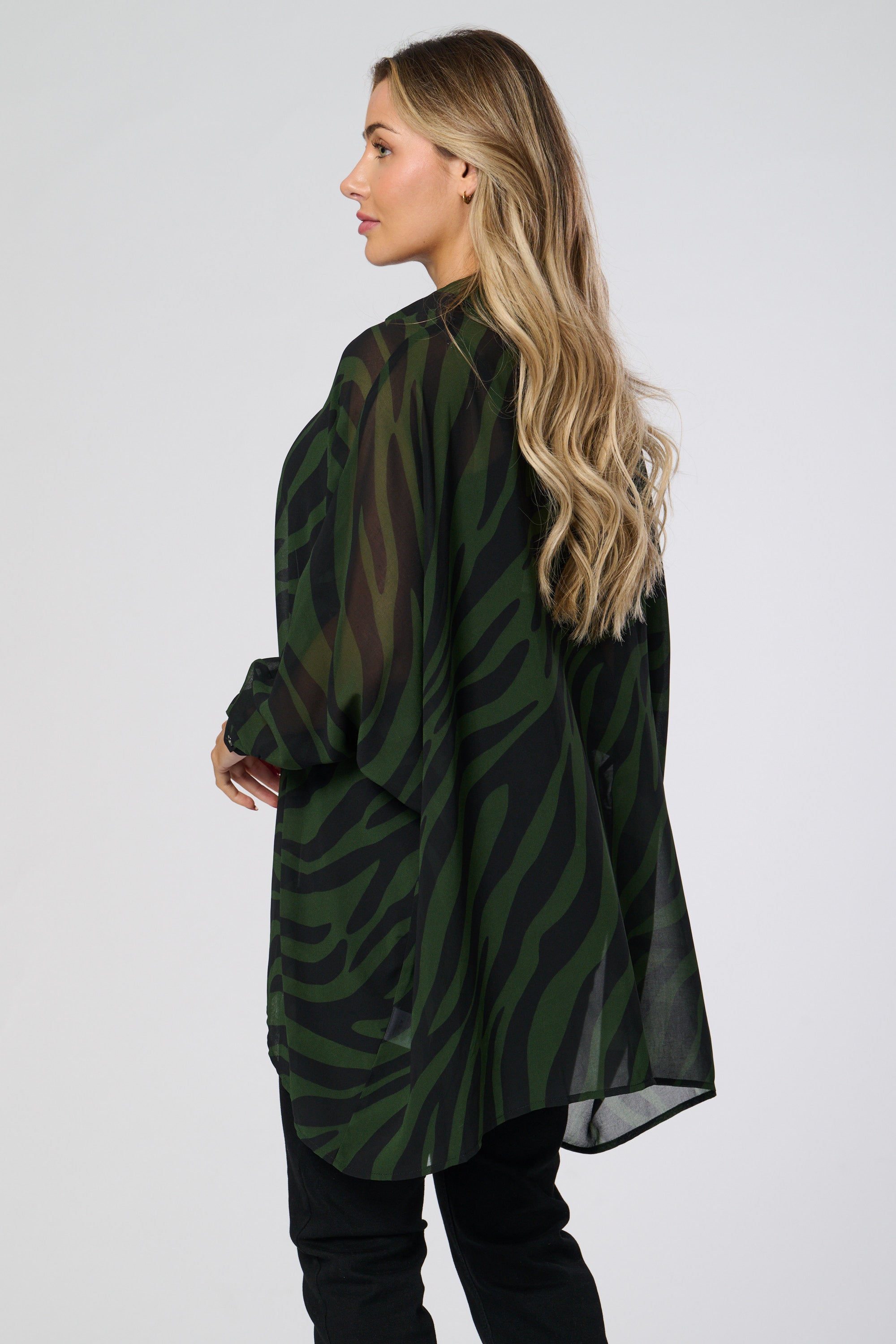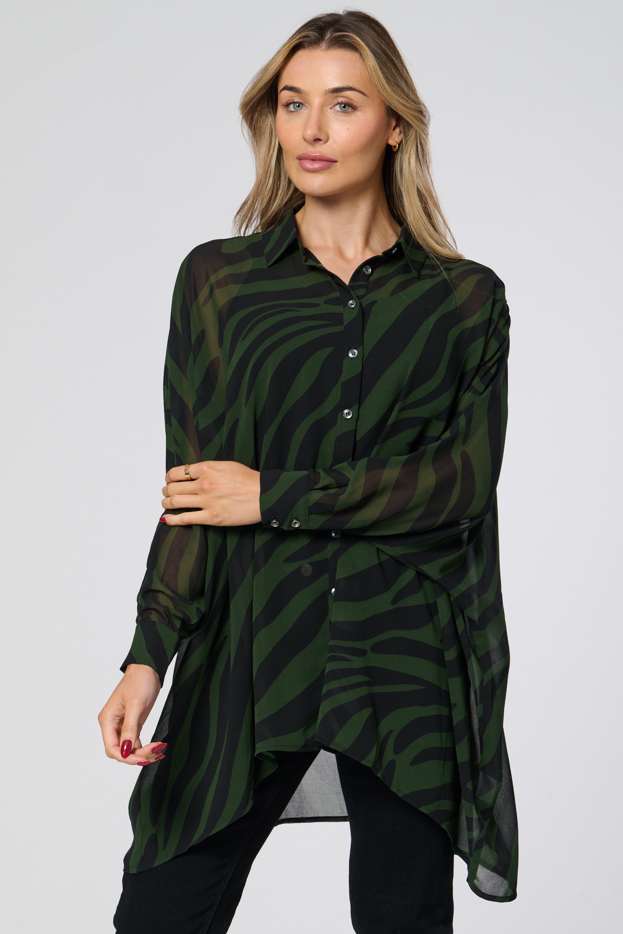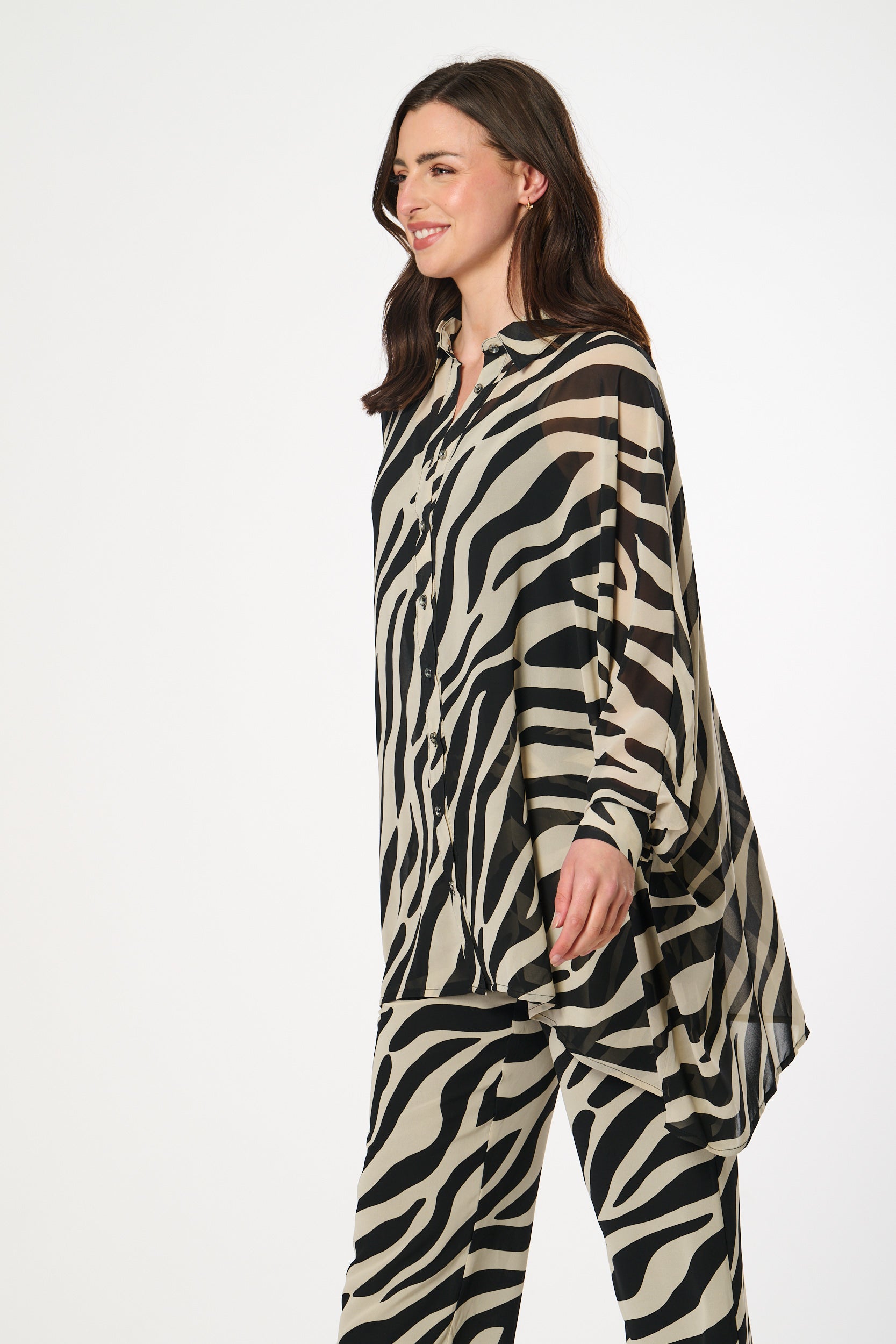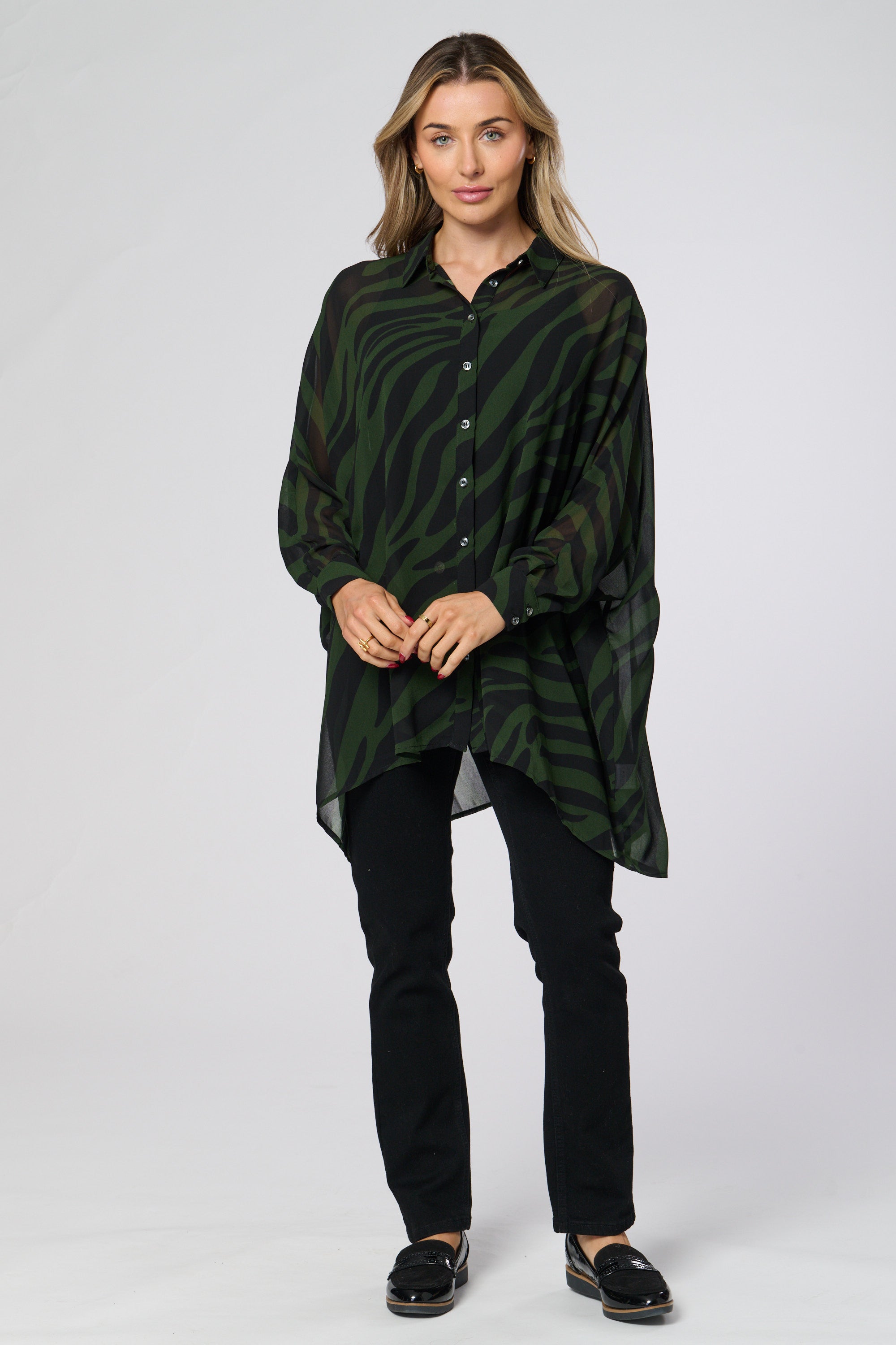 An oversized shirt with a batwing shape, offering a stylish and comfortable fit. The double button cuffs add a touch of sophistication, while the separate plain vest allows for versatile styling options. Perfect for any fashion-forward individual looking for both comfort and style.