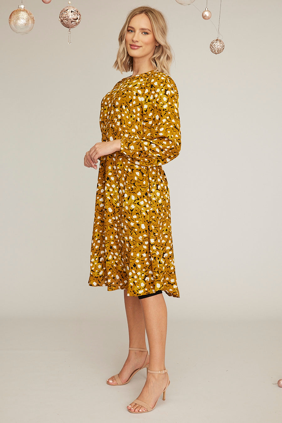 This gorgeous midi dress features an all-over printed style, a round neck, bishop sleeves and an elasticated waist to the back. Match with boots for an everyday look or heels for an evening out.