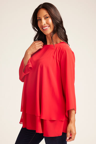 Saloos Women's Layered Chiffon Top with Neckline Detail Ring