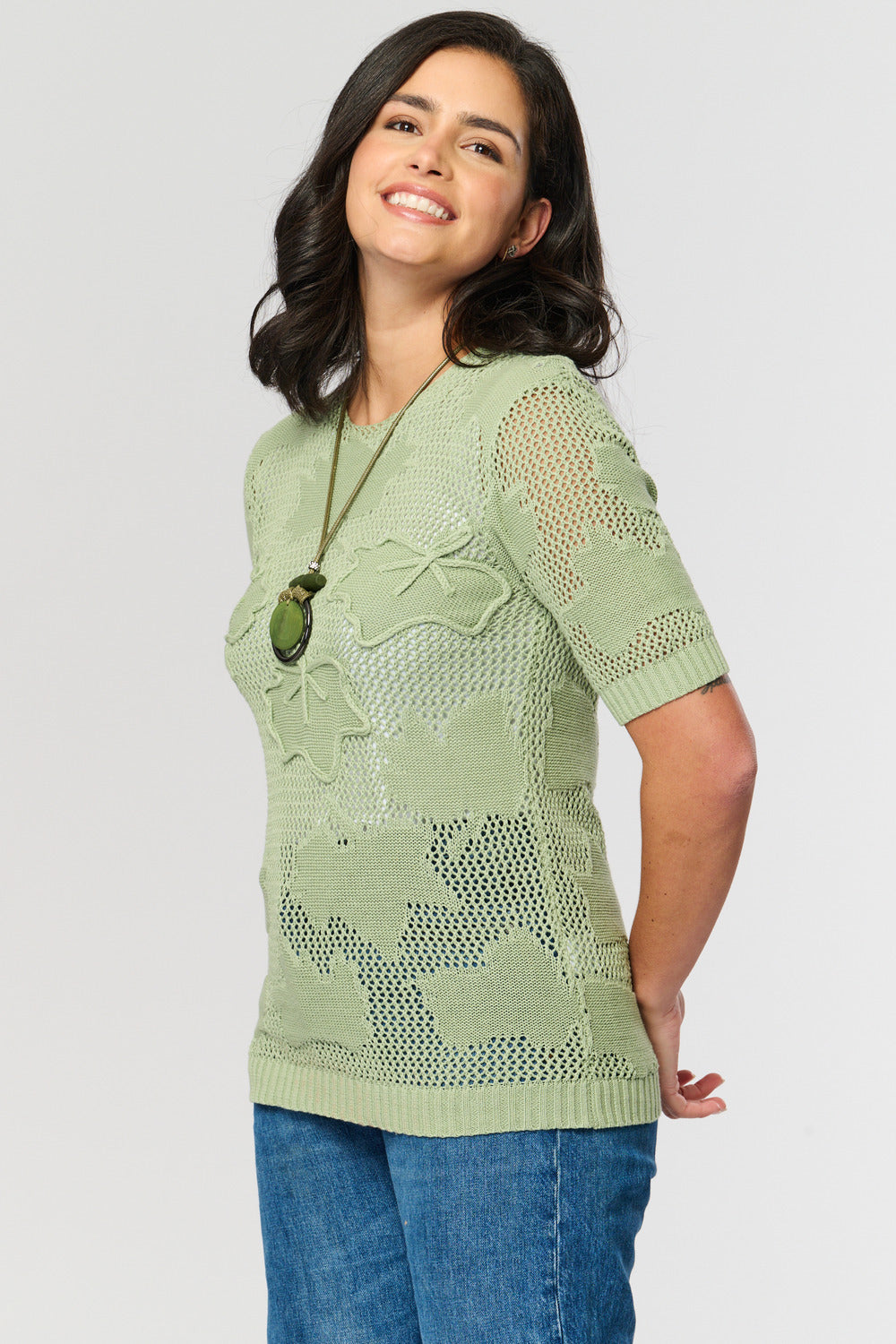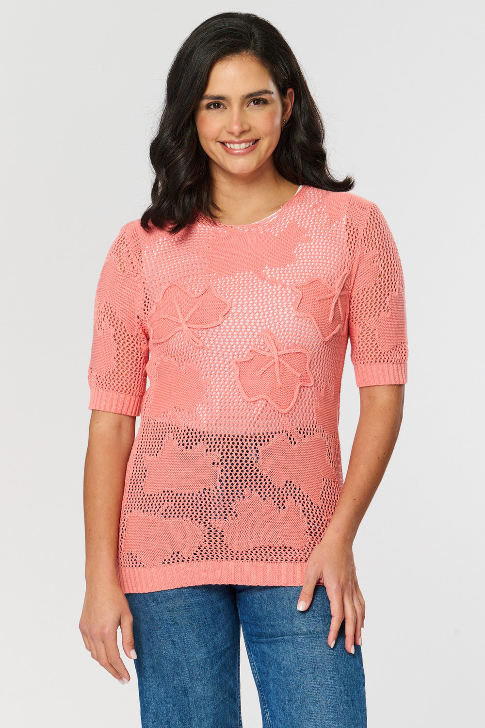 Saloos Cotton Leaf Fishnet Jumper