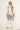 The artistic abstract print in soft denim blue, khaki and neutral beige tones adds a modern, understated statement that is easy to style for both daytime and evening outfits. Three-quarter length sleeves provide comfortable coverage while maintaining a light, breathable feel.