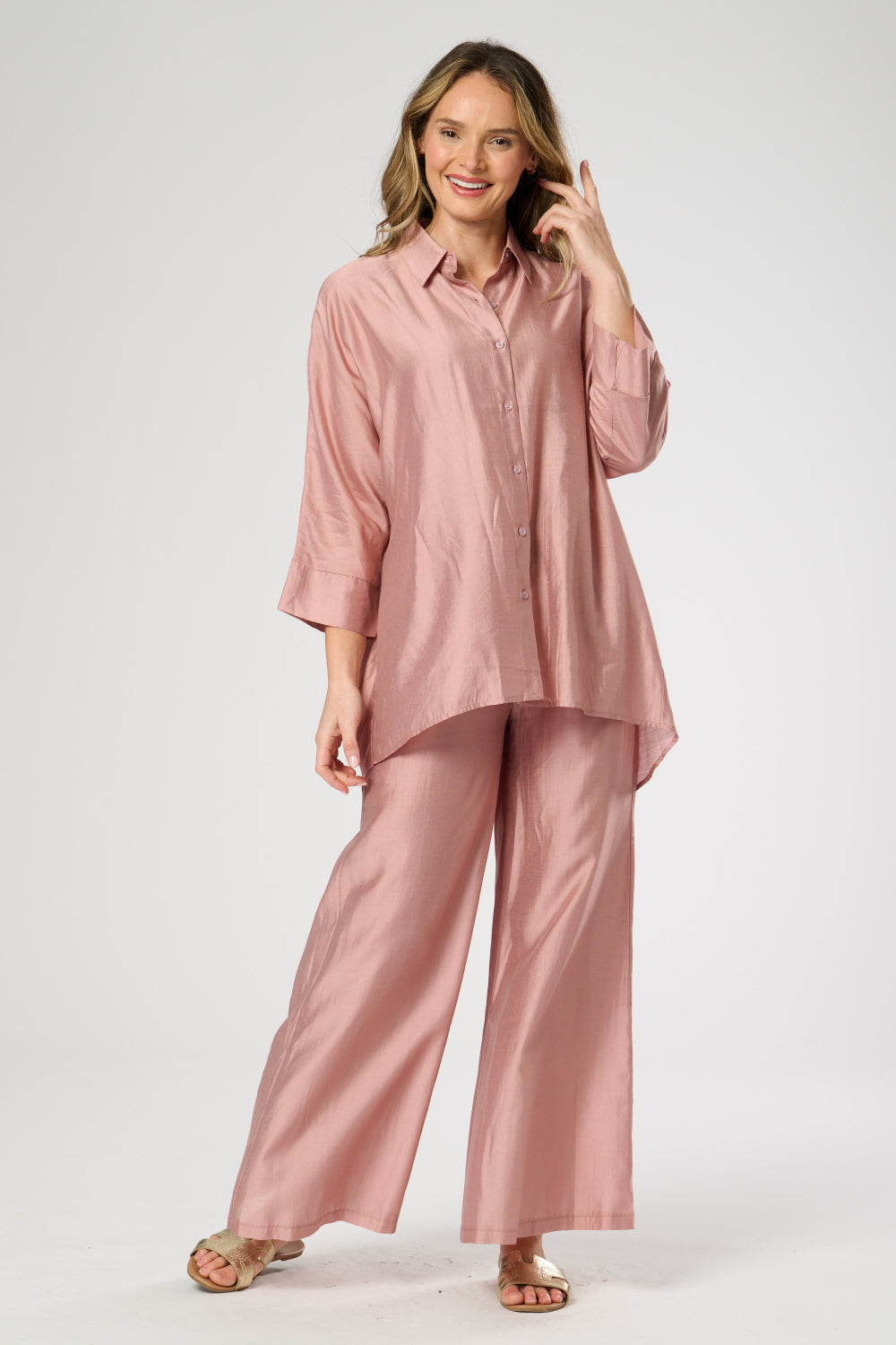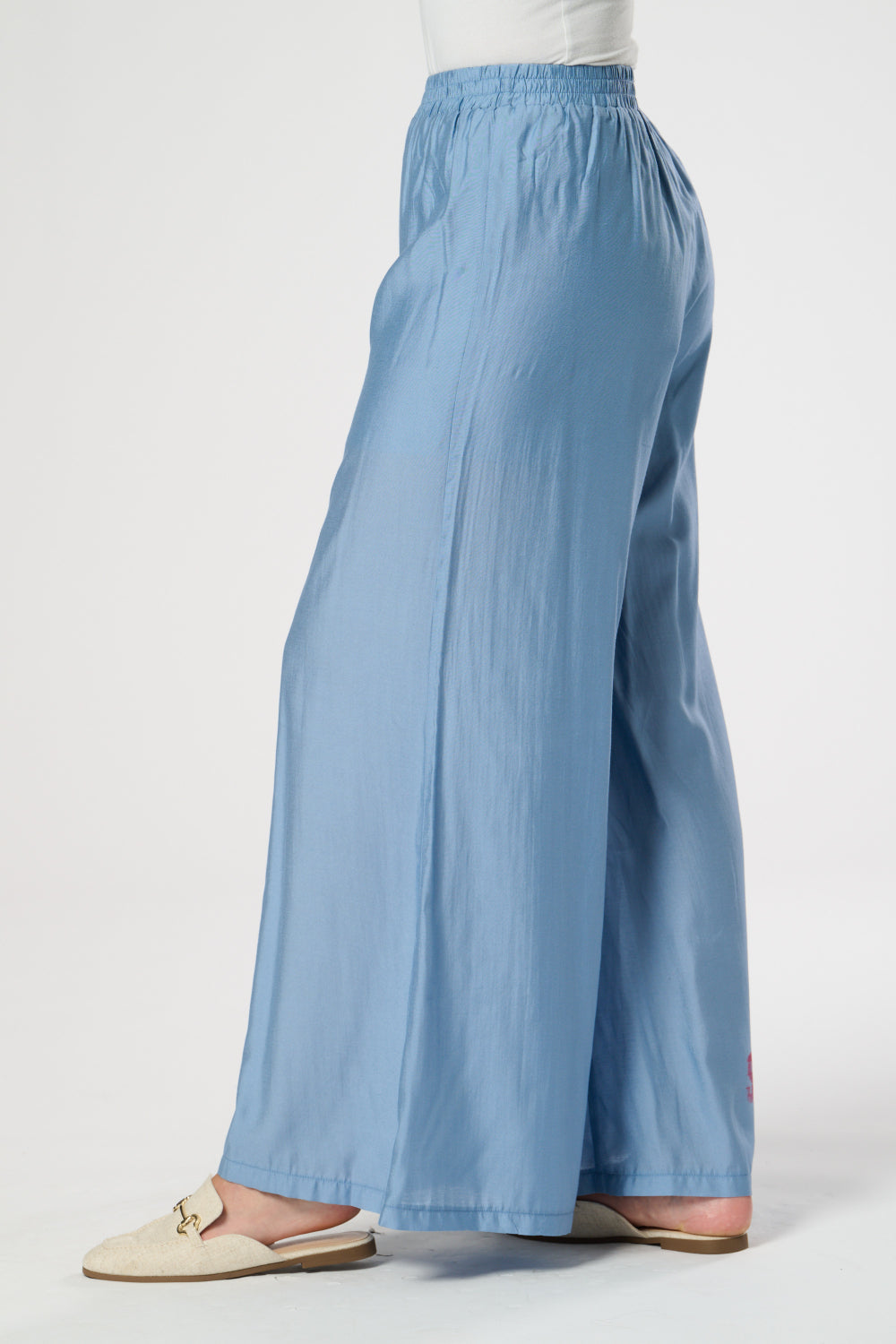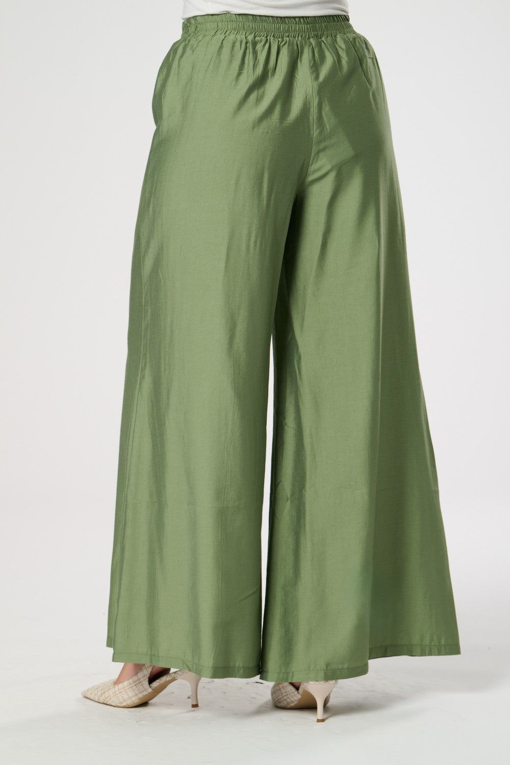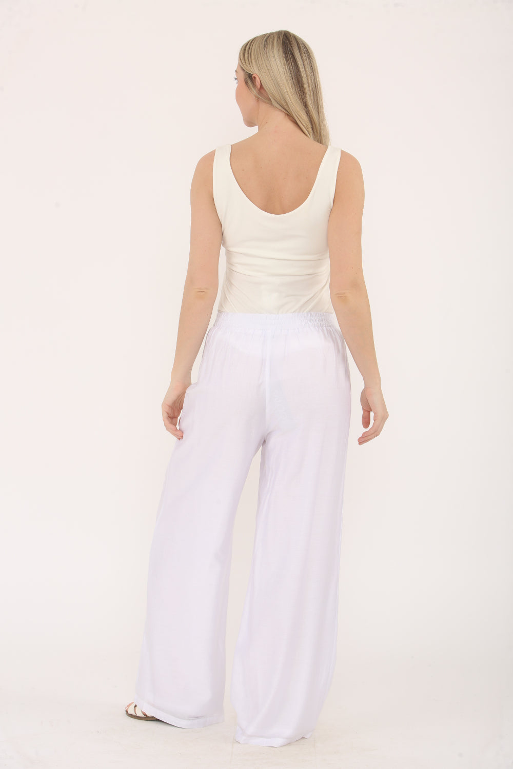 Saloos Women's Brushed Satin Wide Leg Trousers with Elasticated Waist