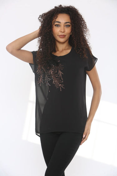 Saloos Women's Festive Short Sleeve Sequin Top