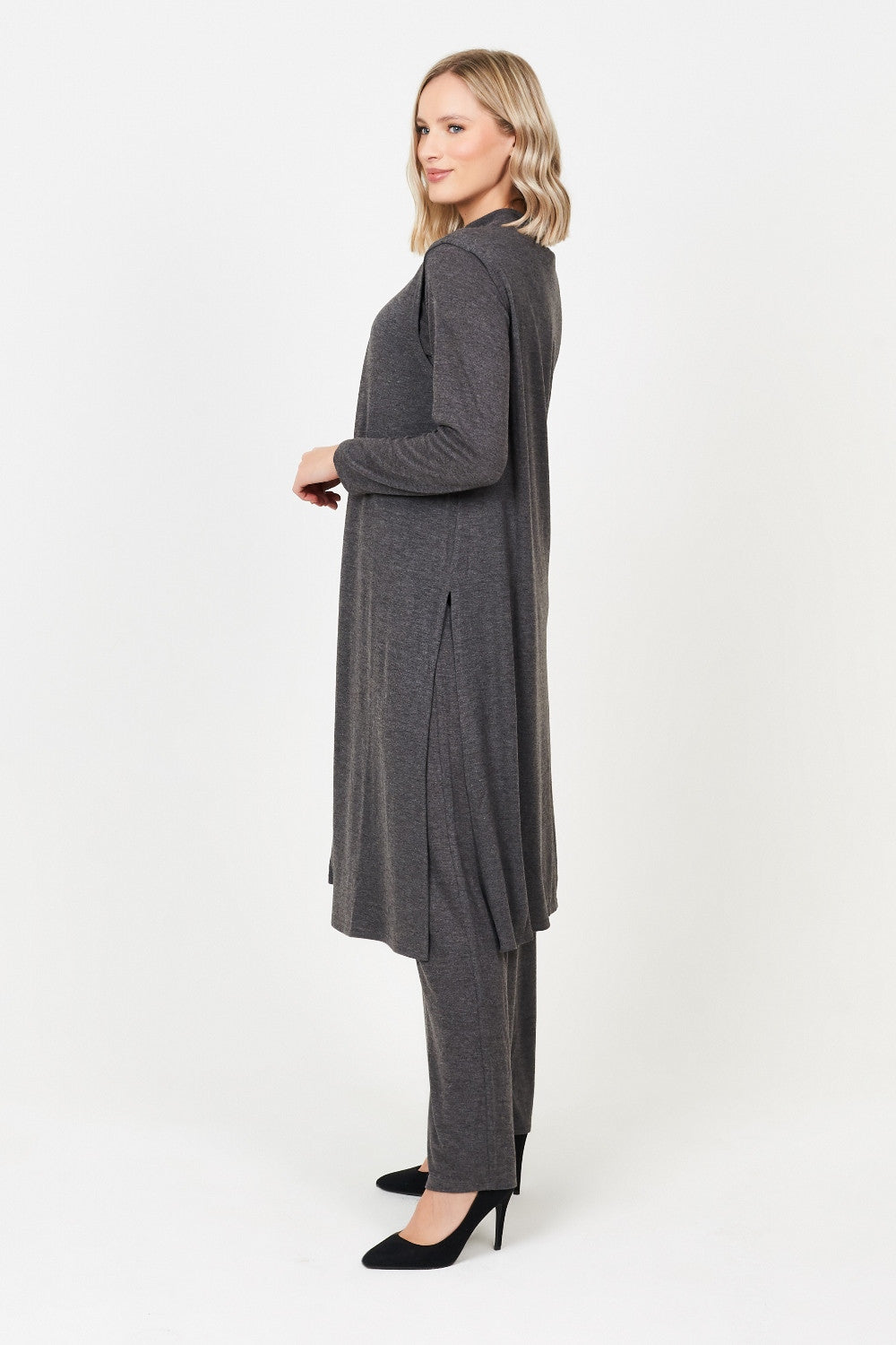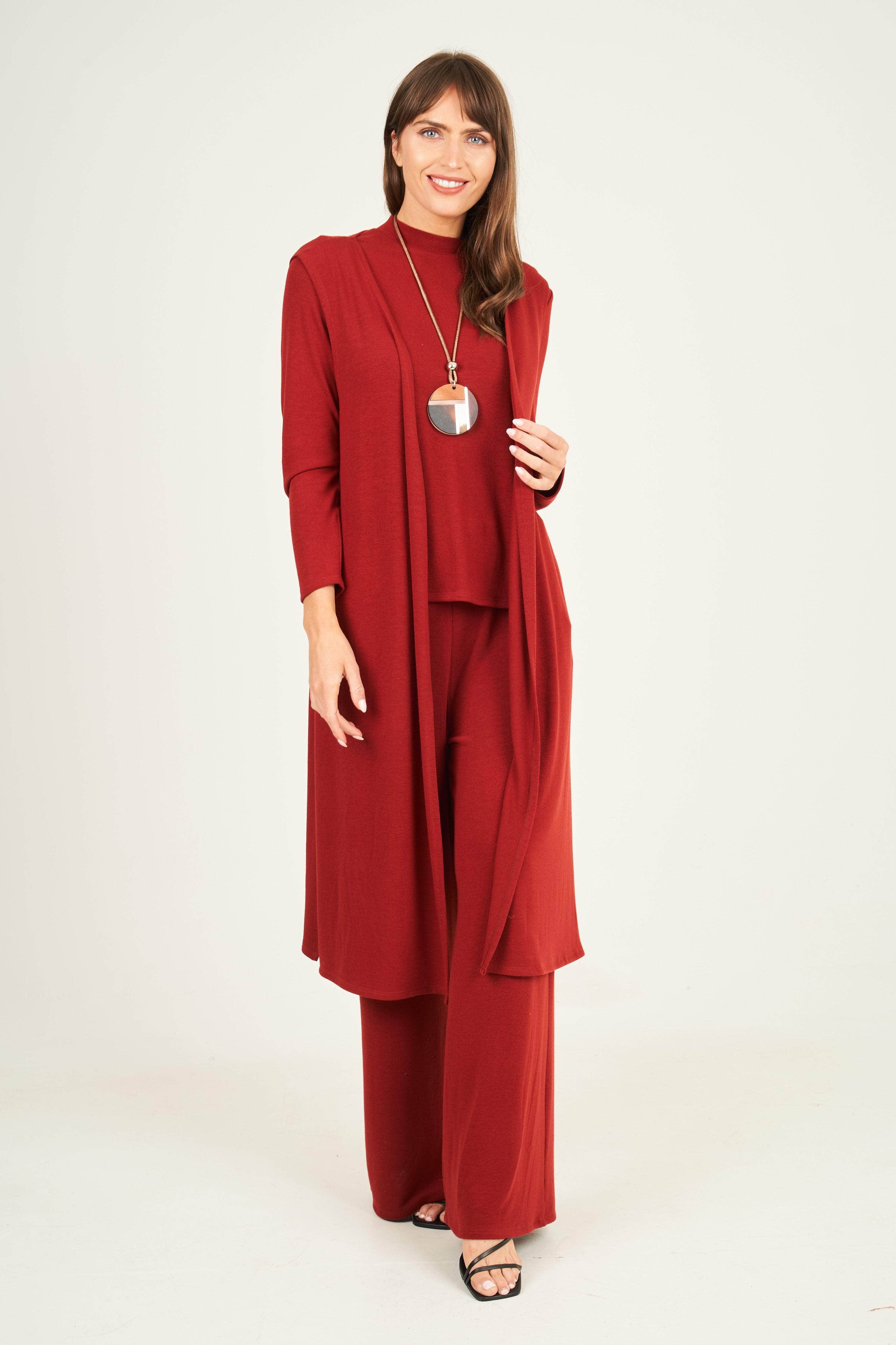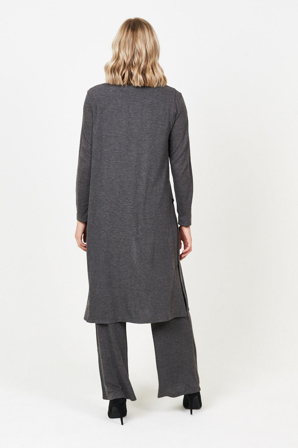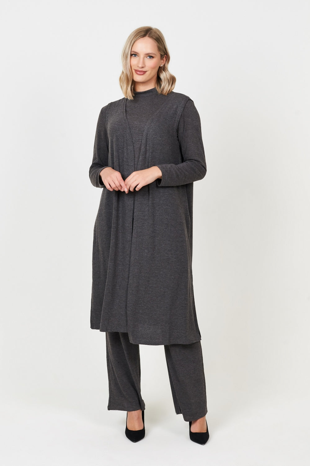 Take your look to next level this season with our stylish two-pieces set of maxi cardigan and top. In a knitted fabric and featuring long sleeves, floaty hem and a side slit this cardigan looks great when worn over a casual daytime outfit! It comes together with a long sleeve, mock turtle neck top as a set.